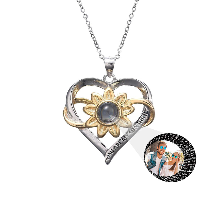 Customized photo of sunflower love Projection Necklace 100 Languages Pendant Jewelry