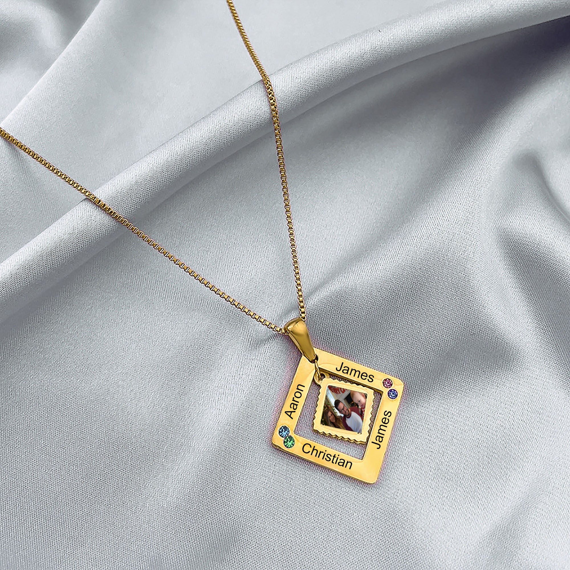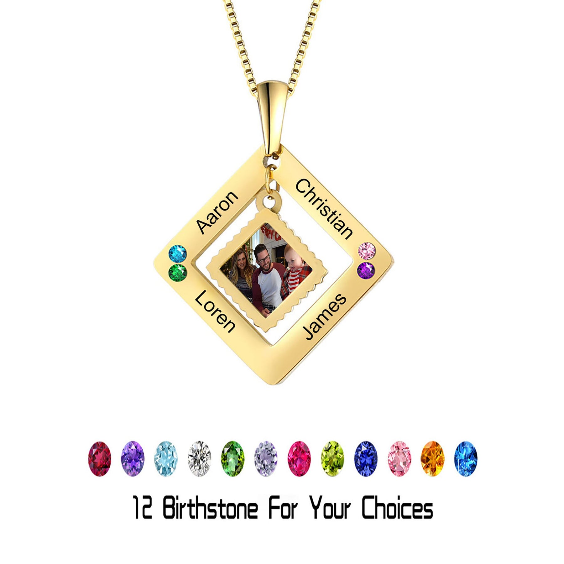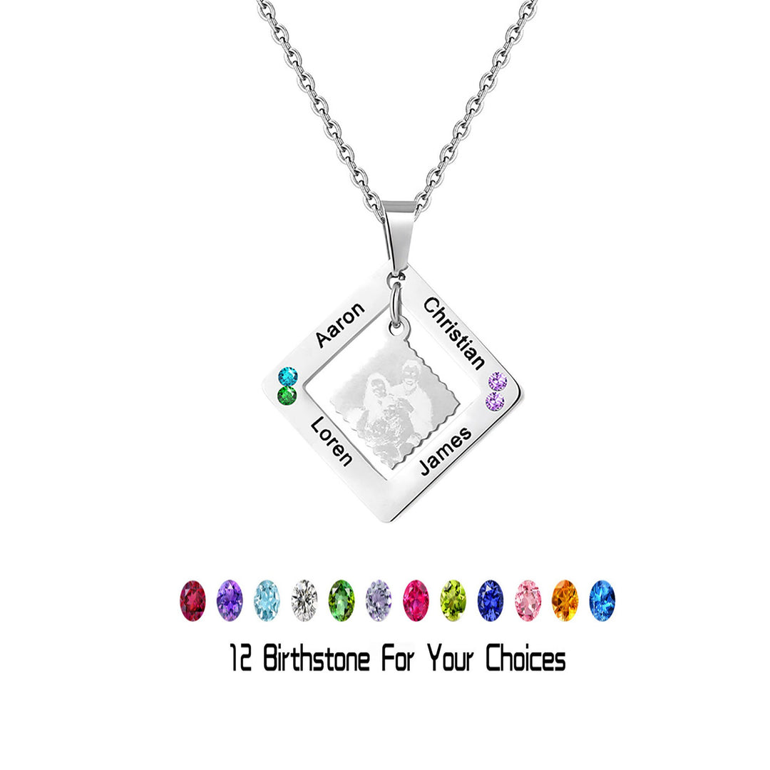customized photos with birthstone Colorful 12 Birthstone Pendant Necklaces