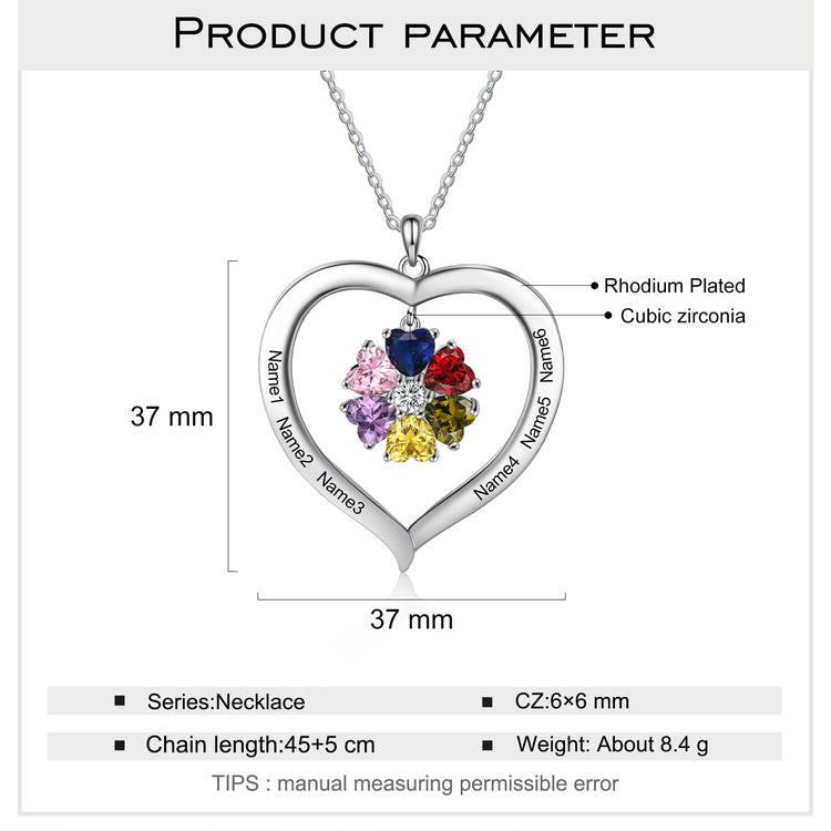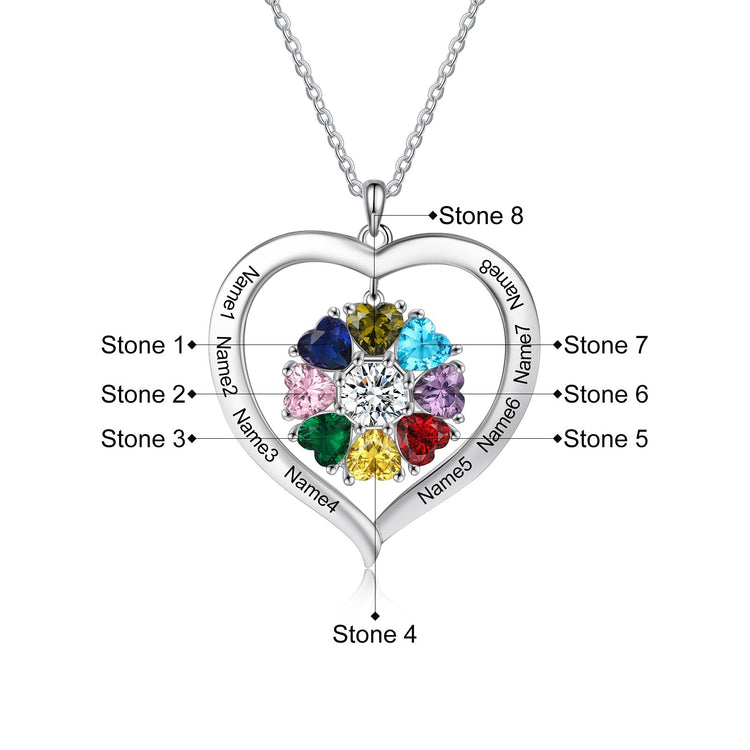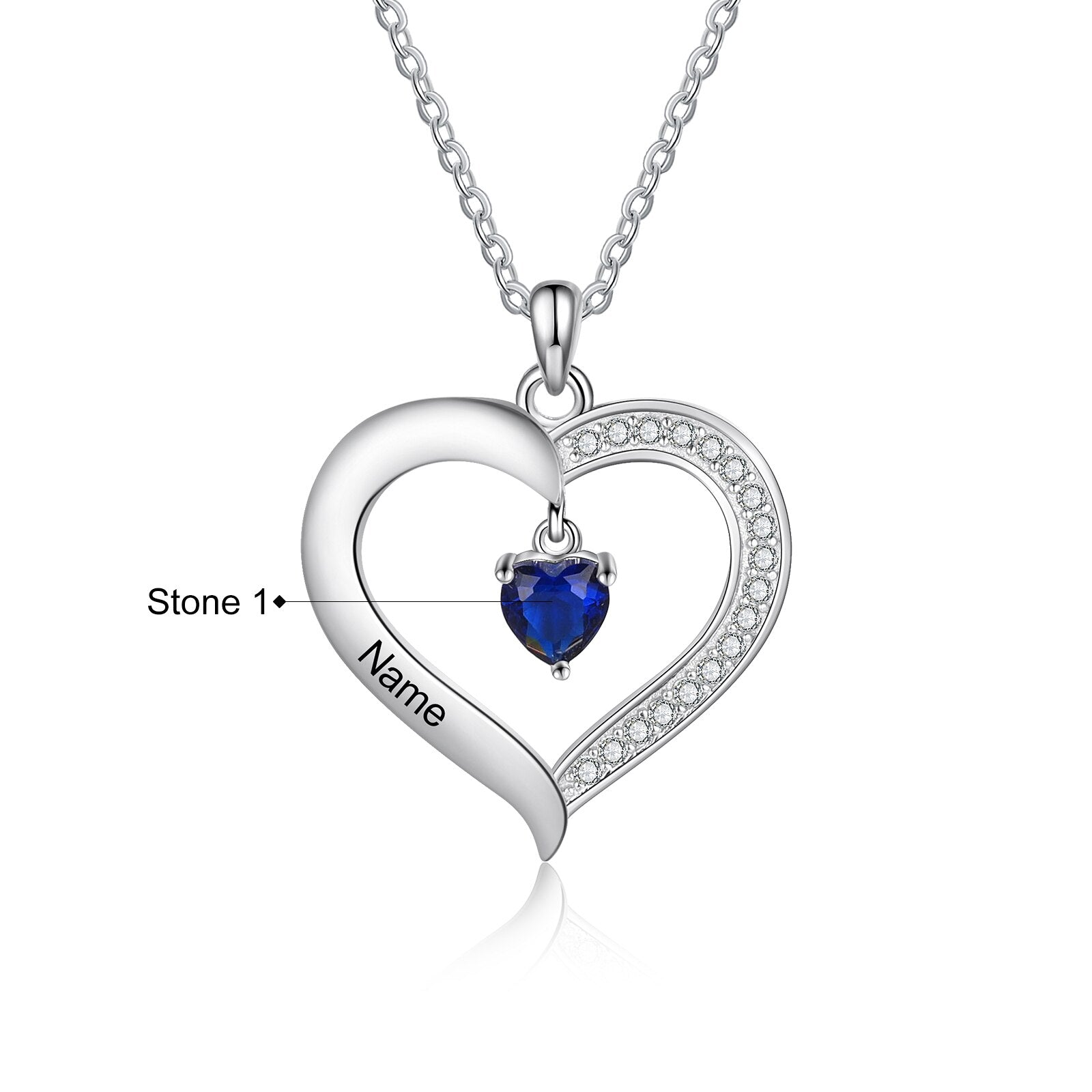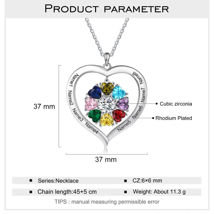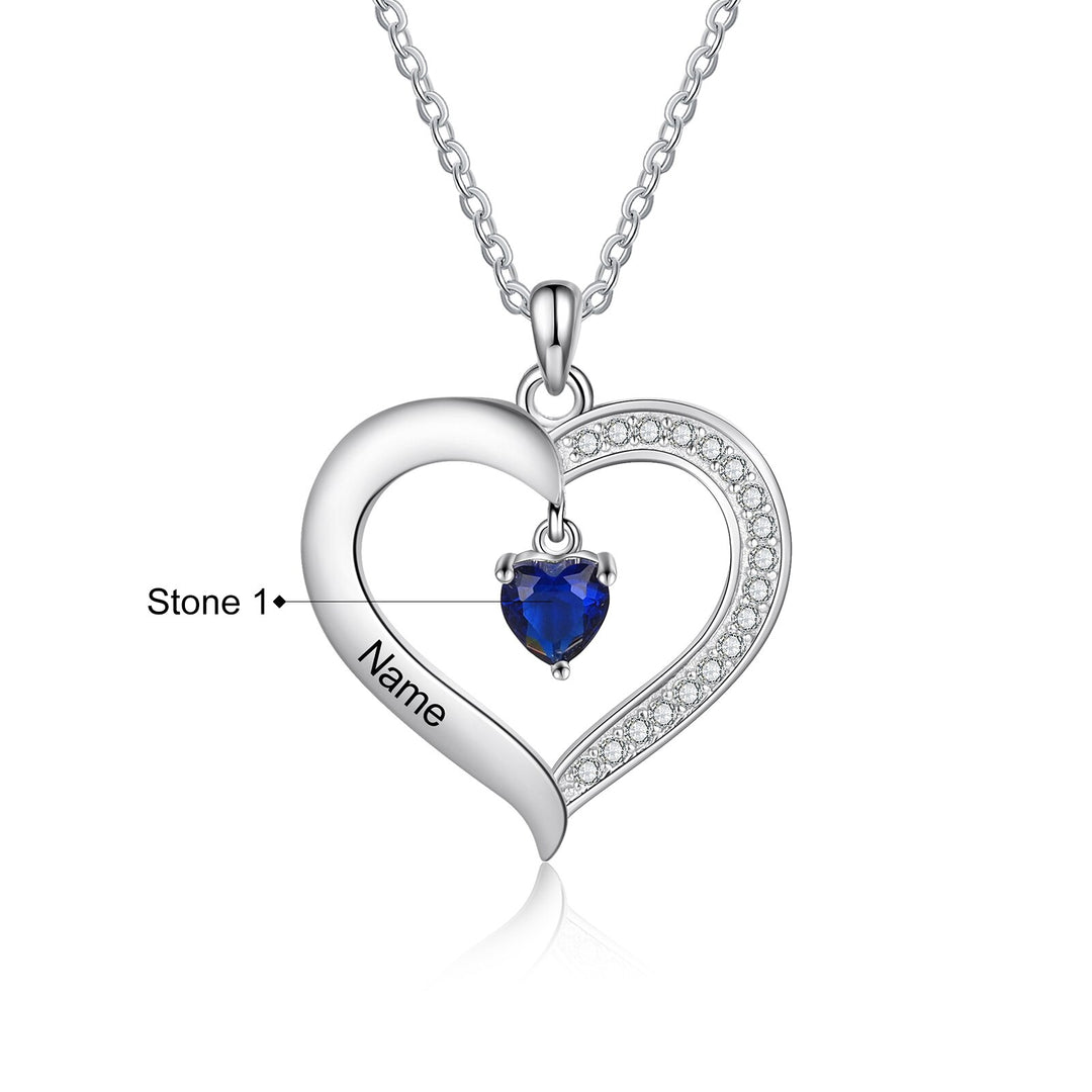 Personalized Heart Name Necklace with 1-8 Engraving Birthstone Pendant