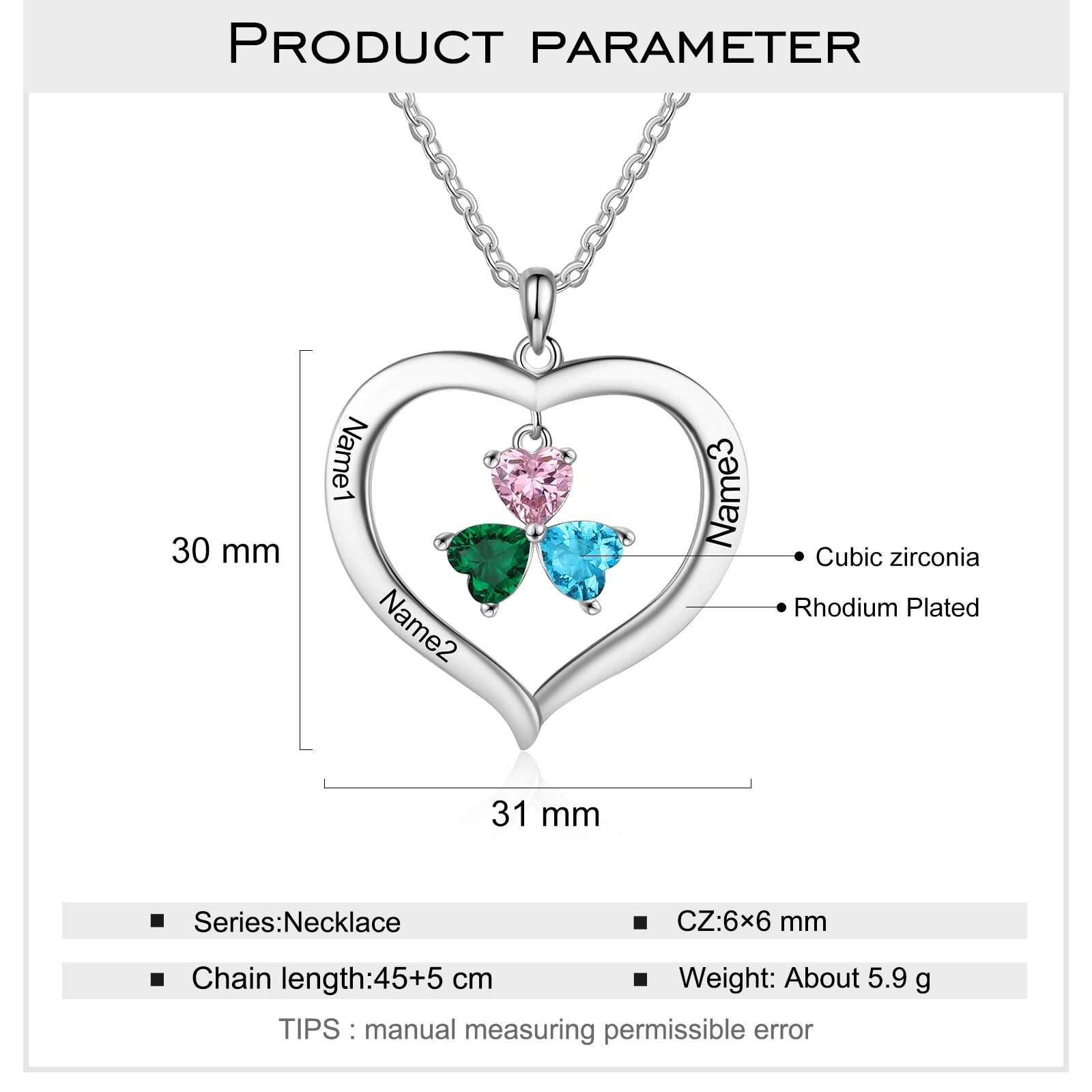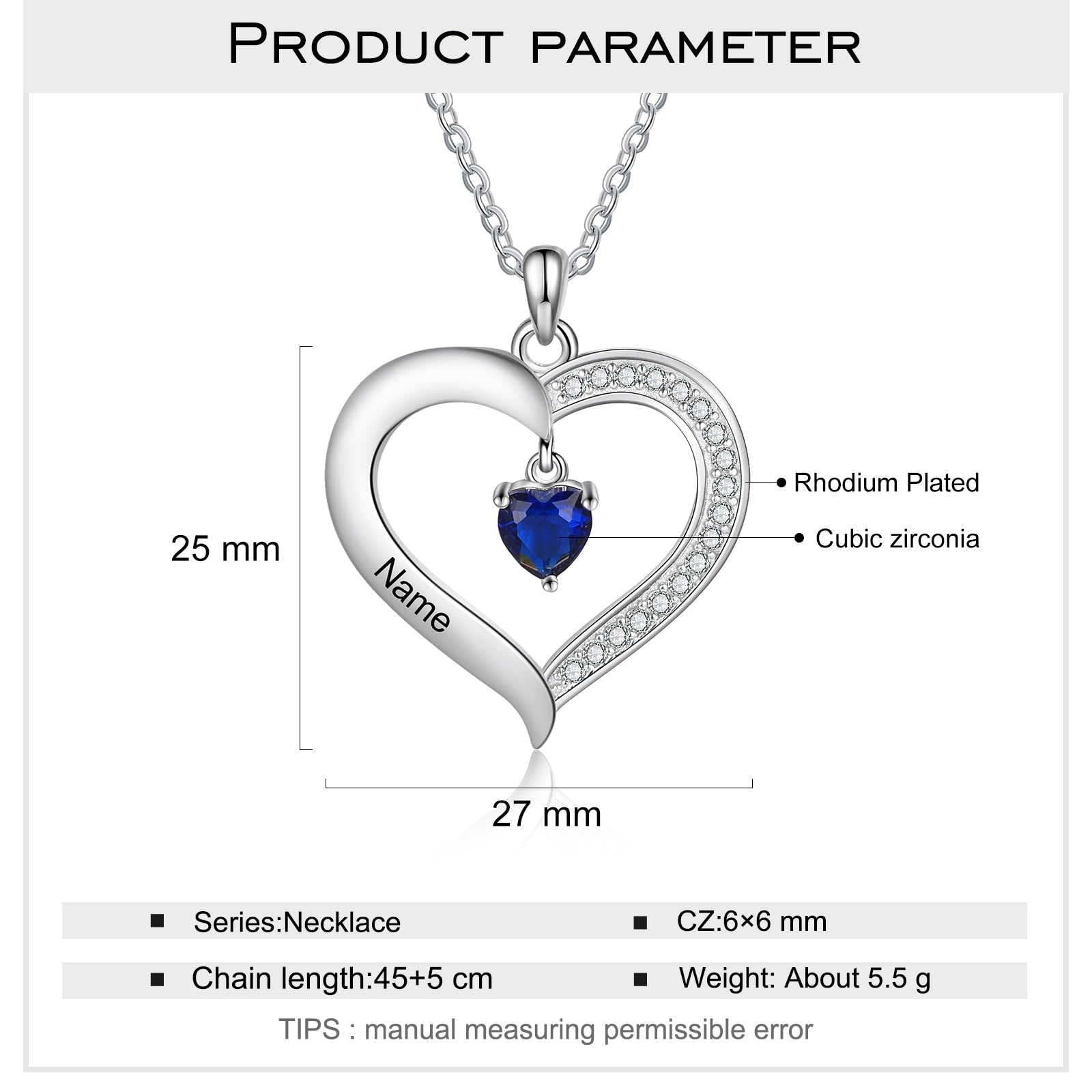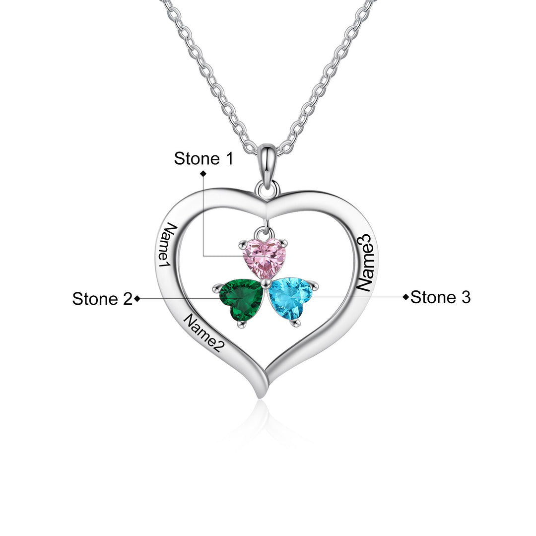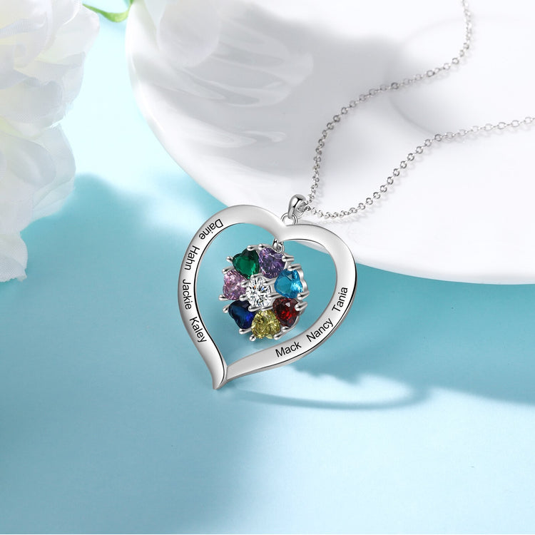 Personalized Heart Name Necklace with 1-8 Engraving Birthstone Pendant