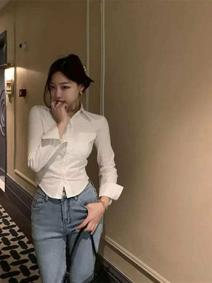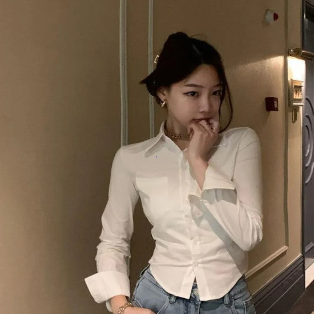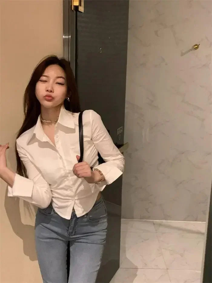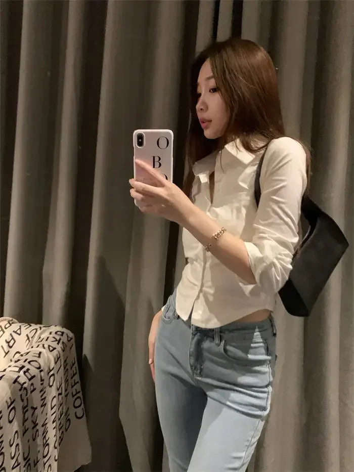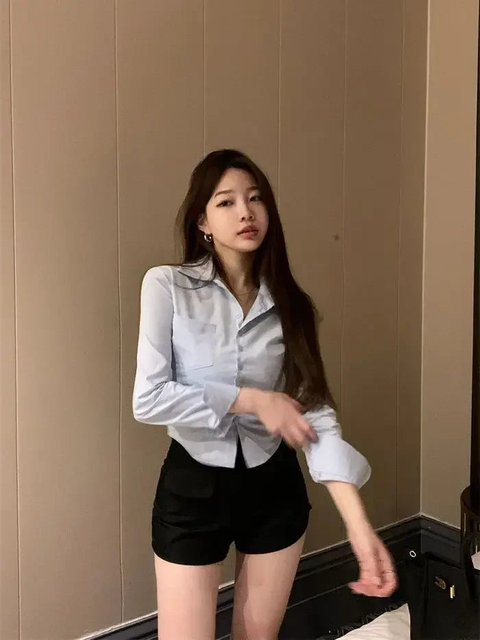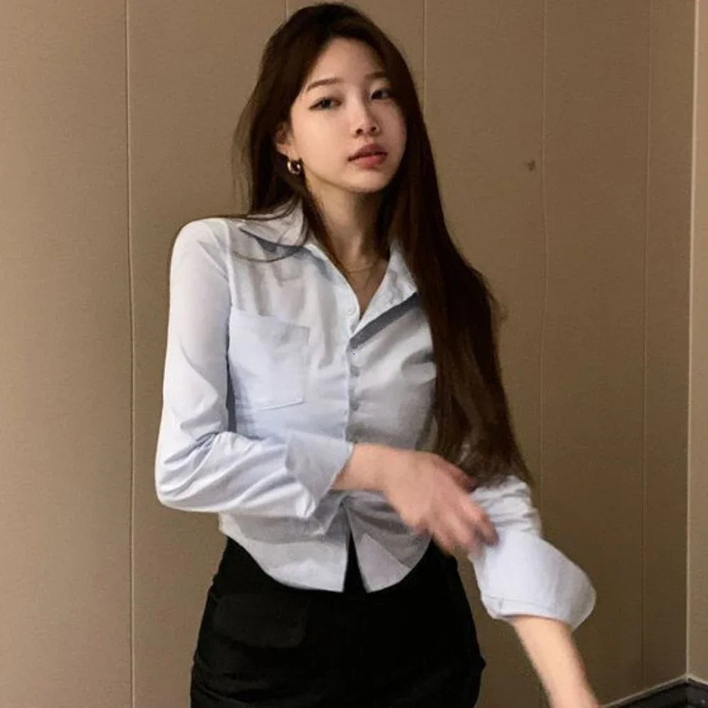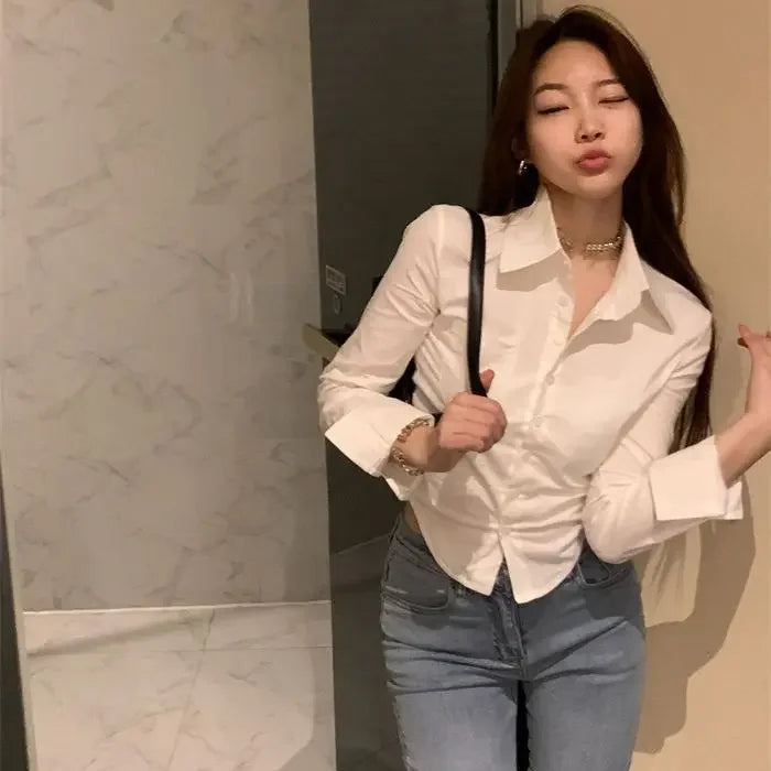 Shirts Women Folds Slim Fit Crop Tops Daily Design