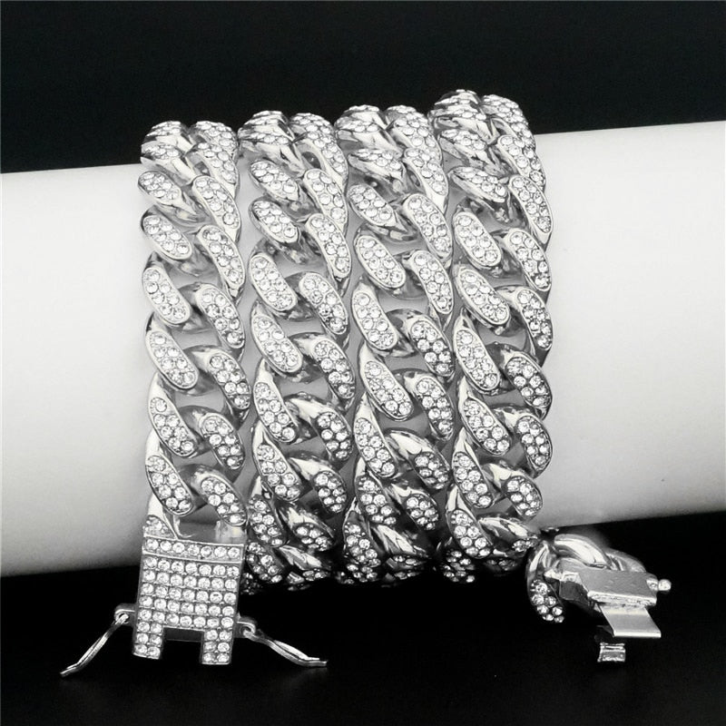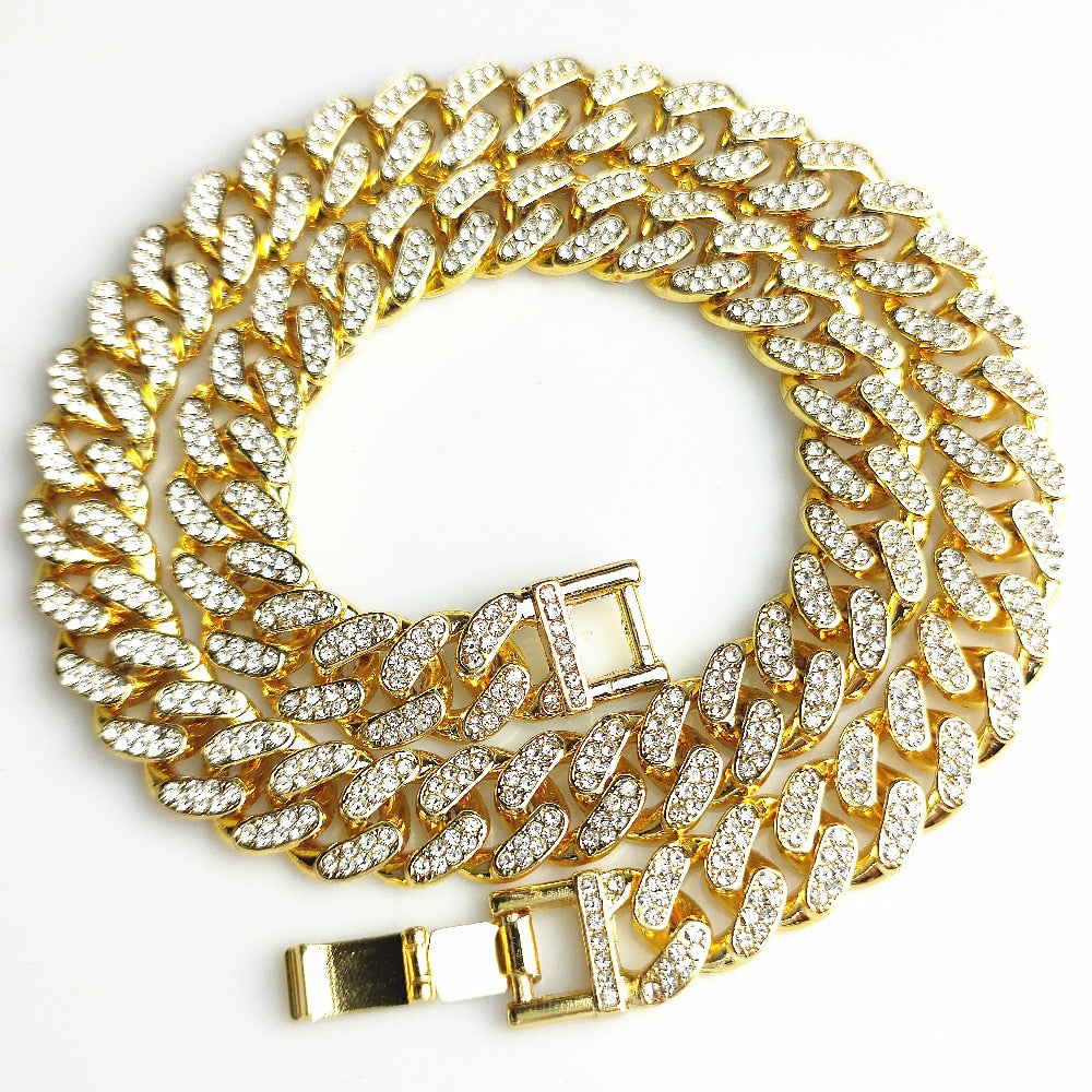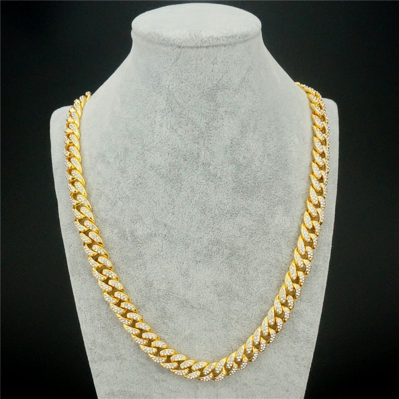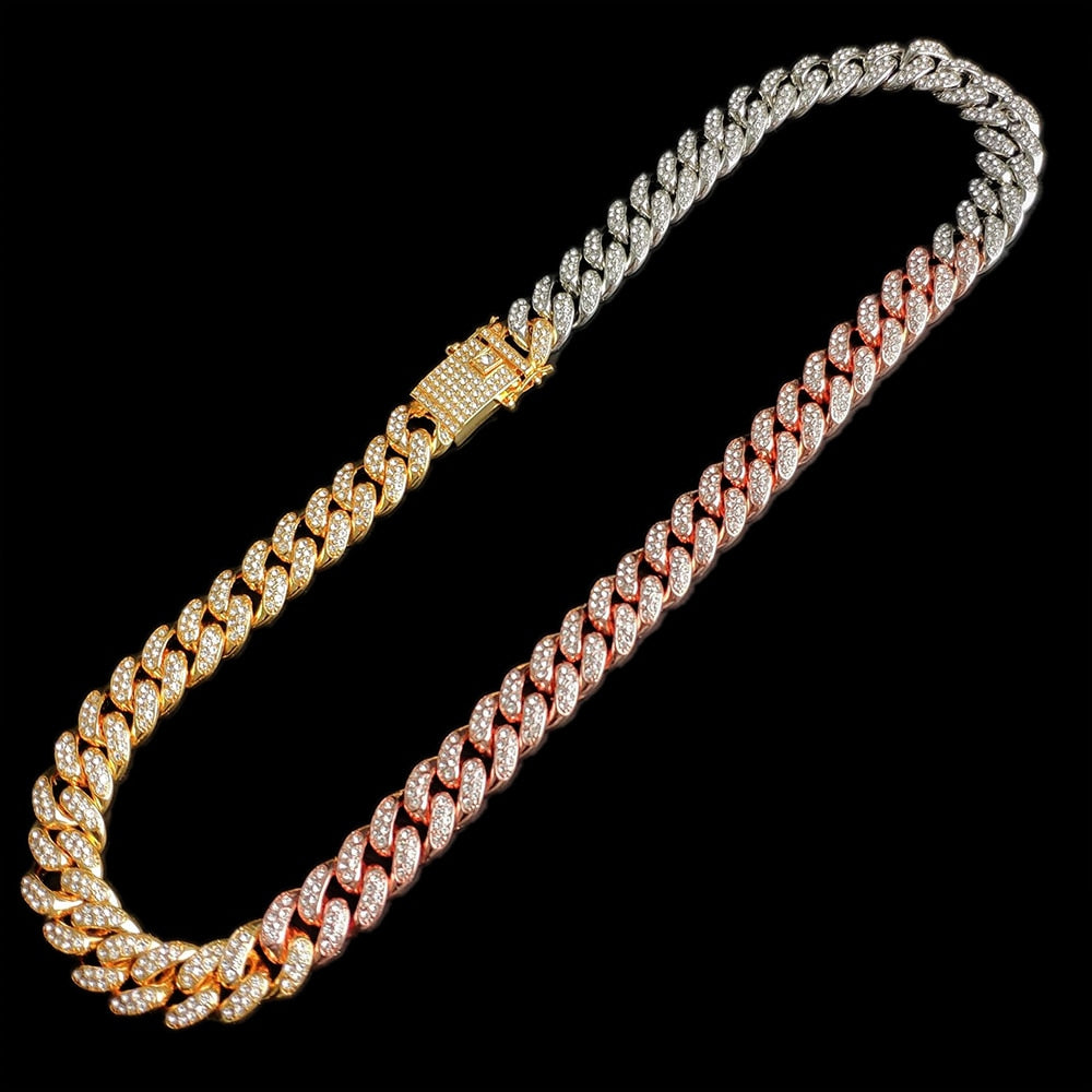 13MM AAA Rhinestone Iced Out Miami Cuban Link Chain Hip Hop Necklace