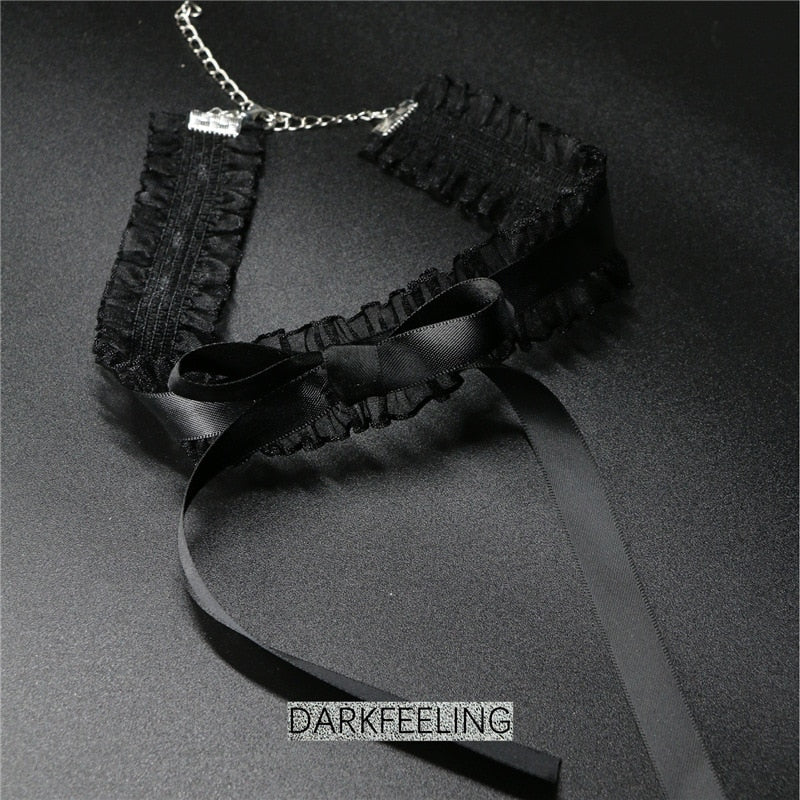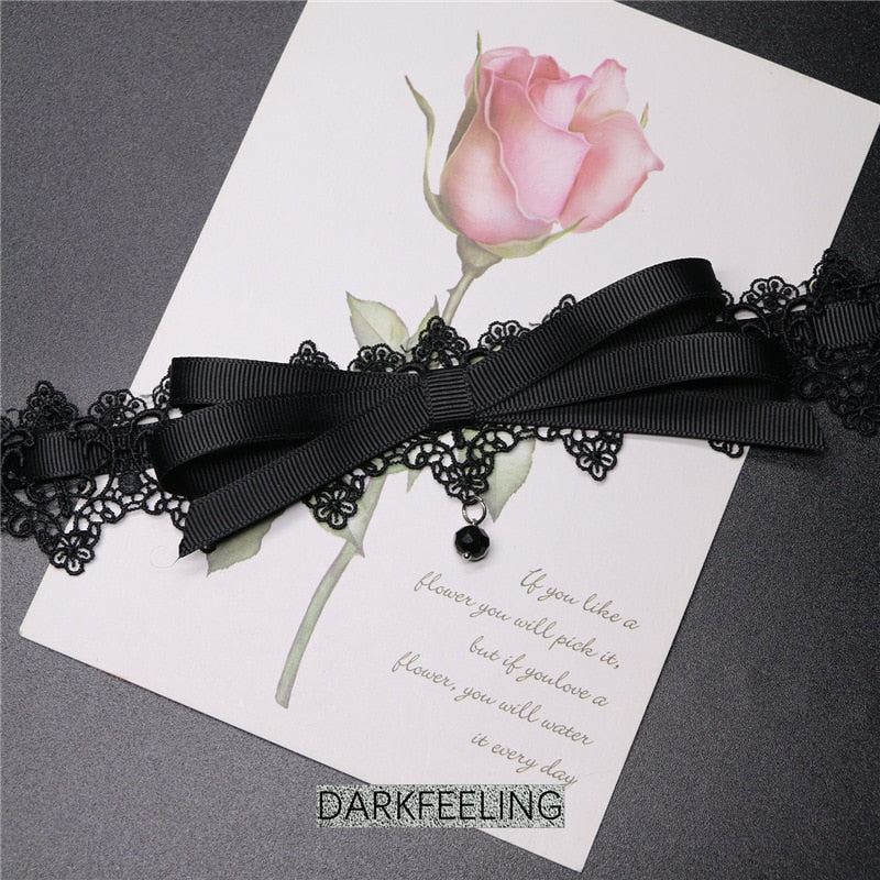 Bowknot Dark Girl Black Lace Choker Necklace Harajuku Punk Gothic Loli Cute Collar