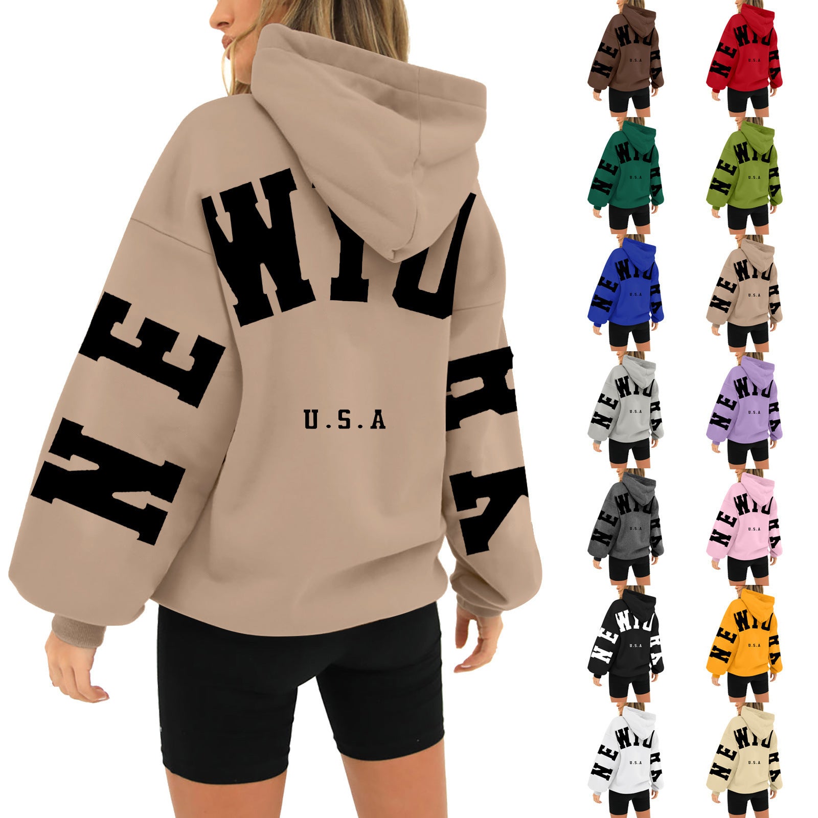wyo newyork letter print hoodie, loose fit, oversized hoodie