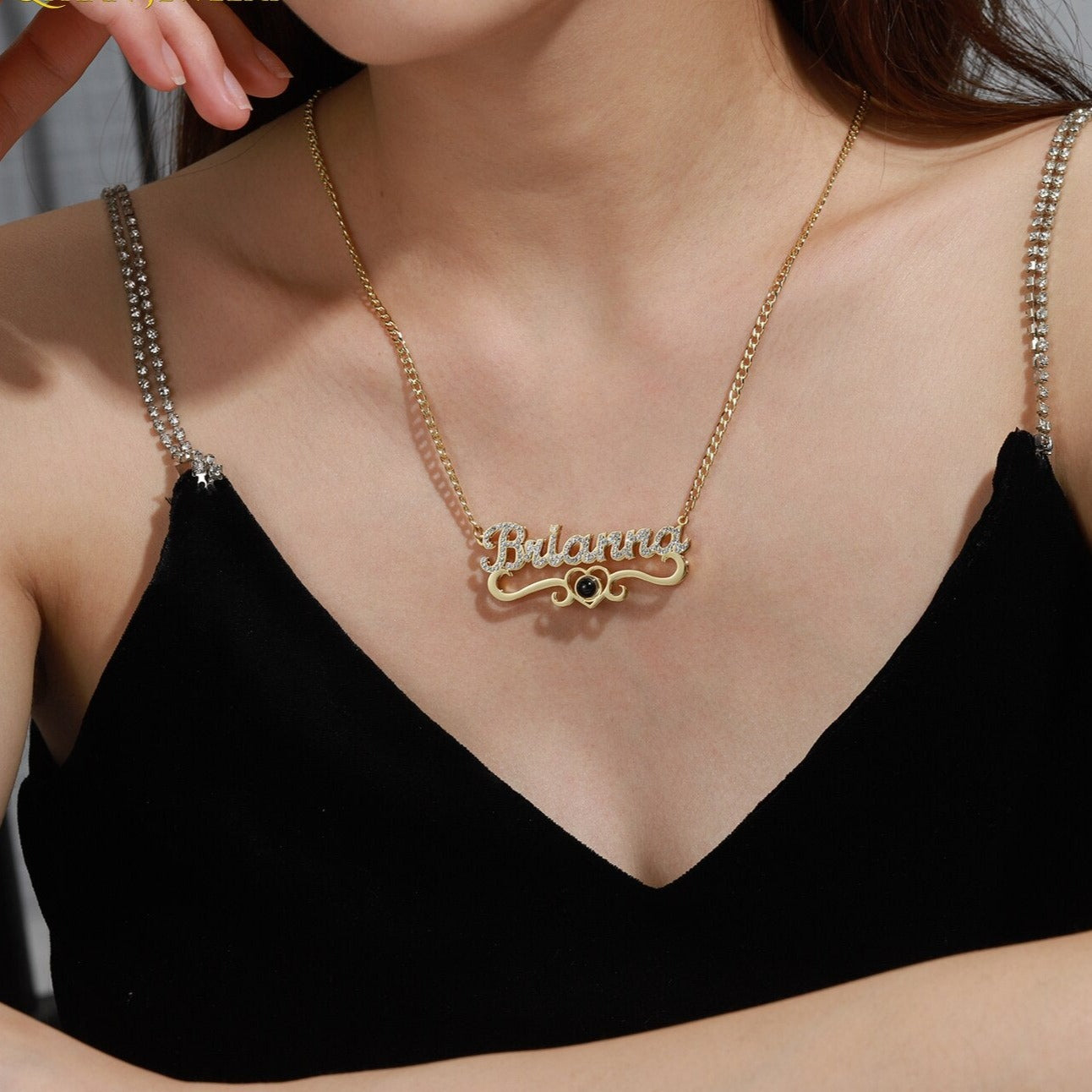 Personalized Double Plate 3D Name Necklace Classic Nameplate Pendant on our special font name jewelry "Customize Now"A perfect gift for women, mom, wife, girlfriend, cousin, sister, family, aunt, best friends, bridesmaid, loved ones or a special treat for yourself, and all occasions: Mother's Day, Valentines, Wedding, Anniversary, Birthday, Christmas