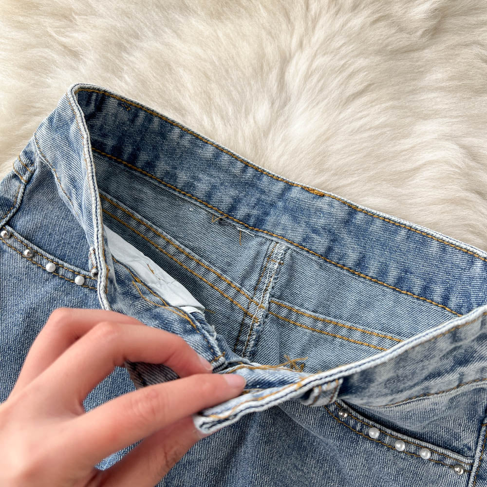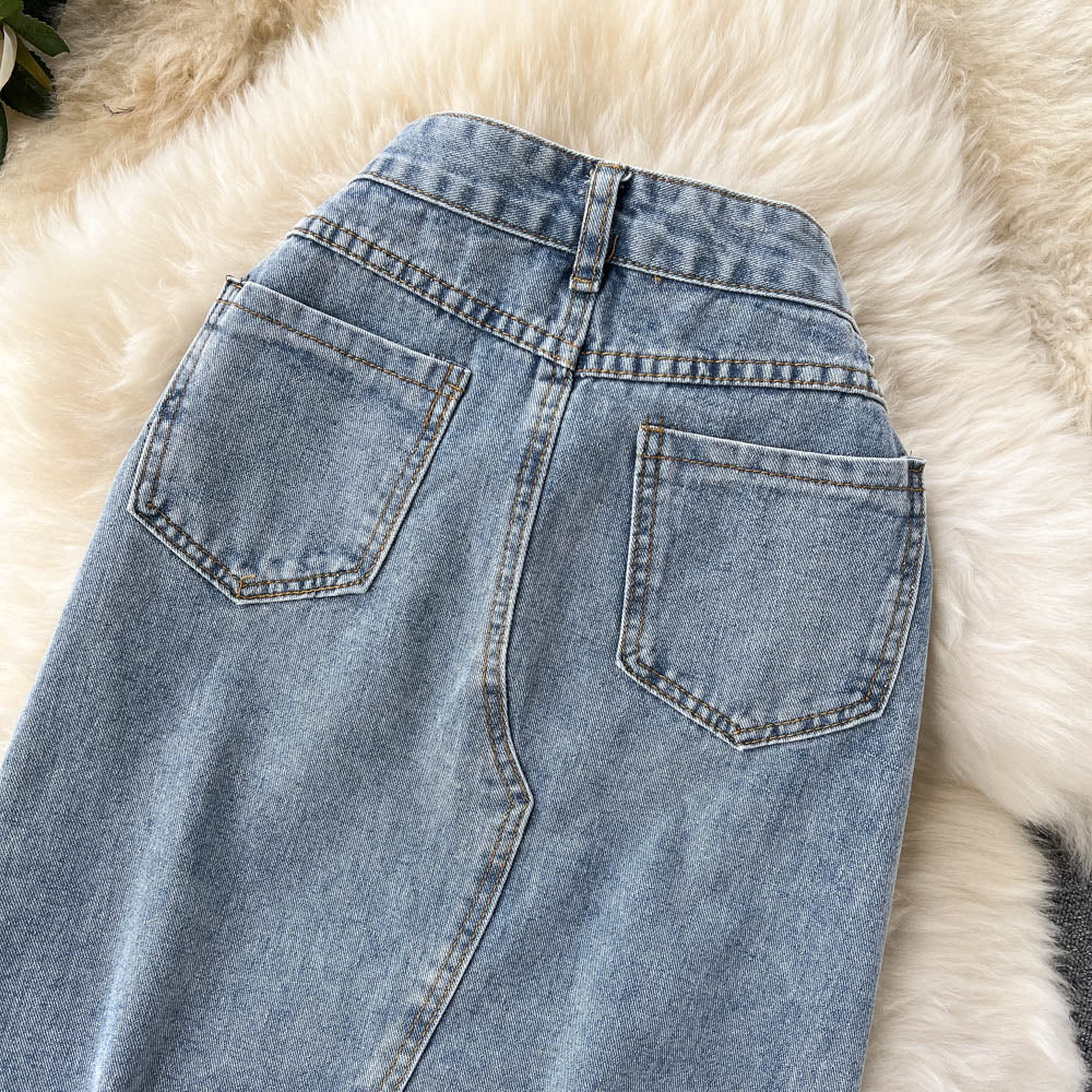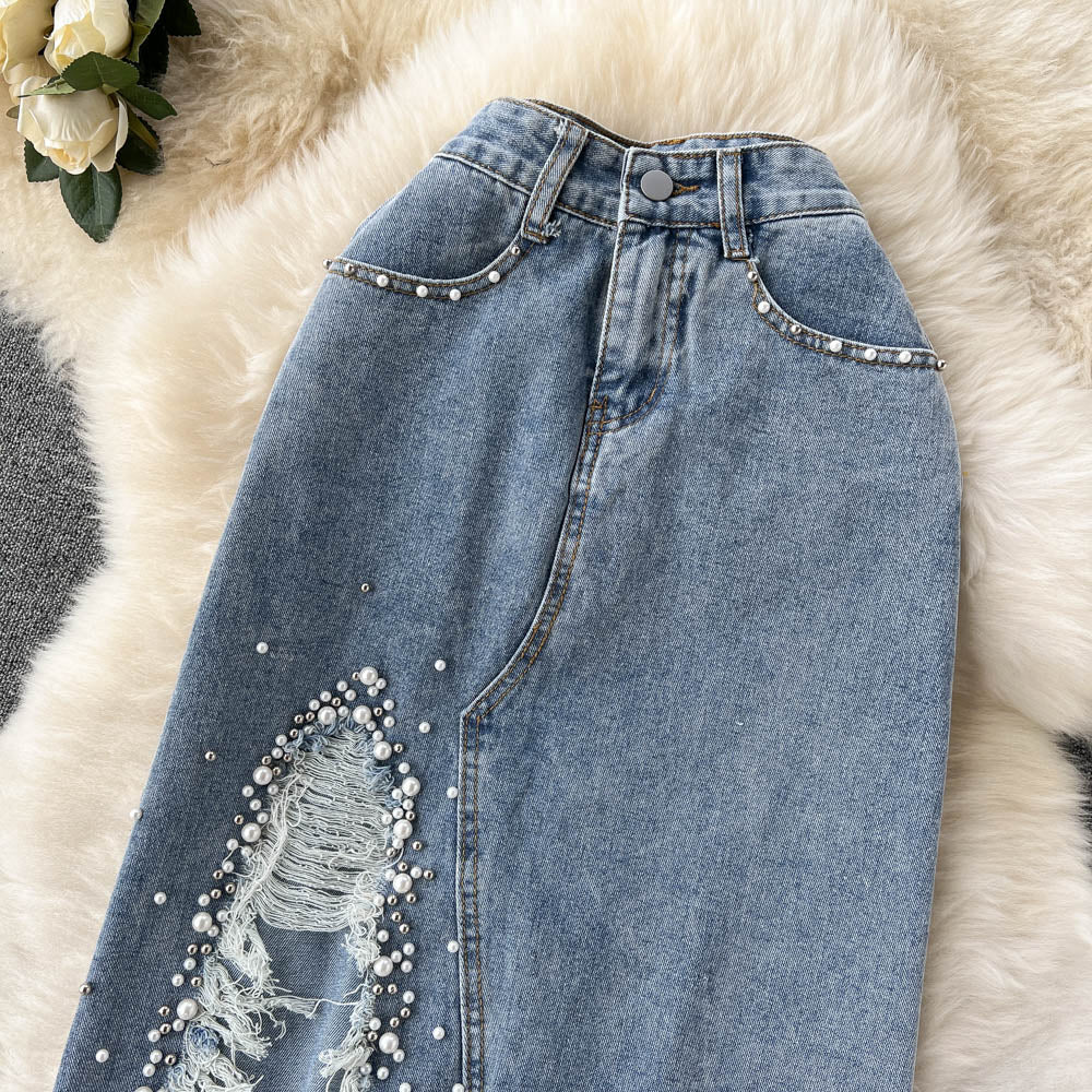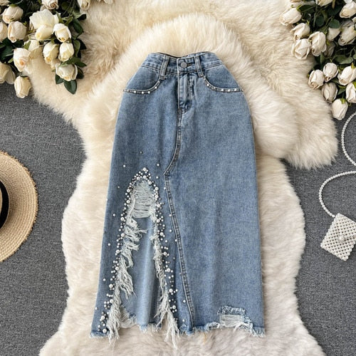 Elevate your style with our Beading Split Denim Skirts. The high waist and A-line cut create a flattering silhouette, while the intricate beading adds a touch of luxury. This skirt is perfect for any occasion, adding a unique and sophisticated twist to your wardrobe.