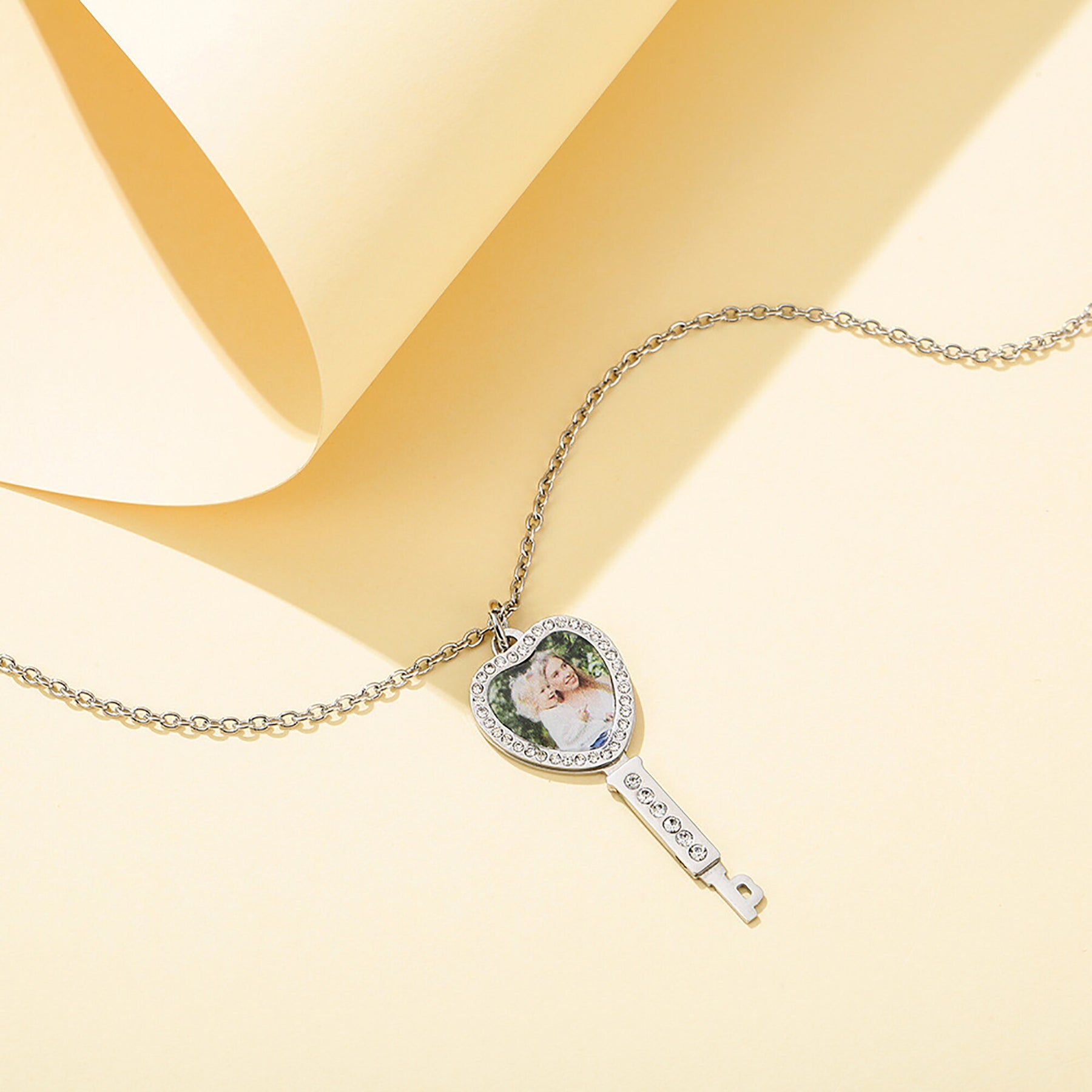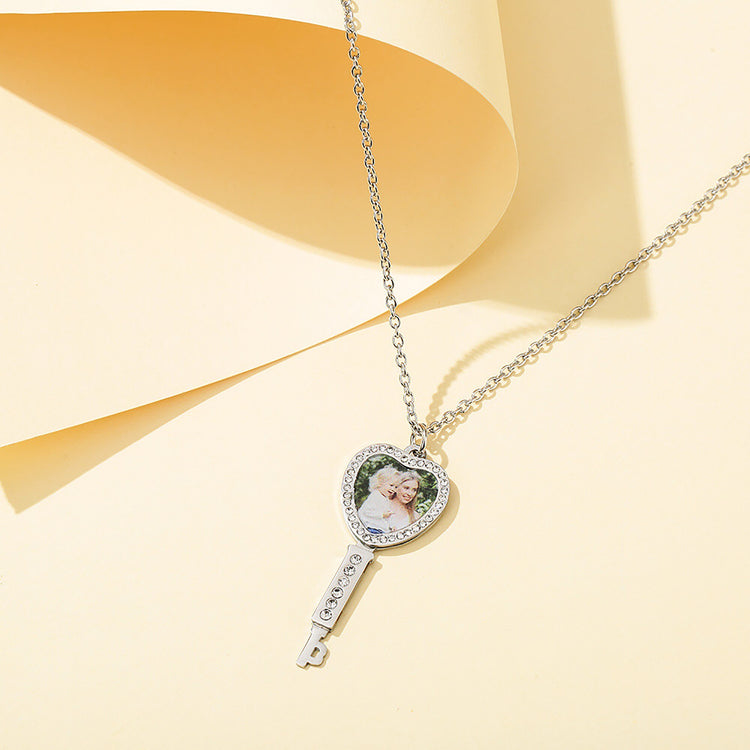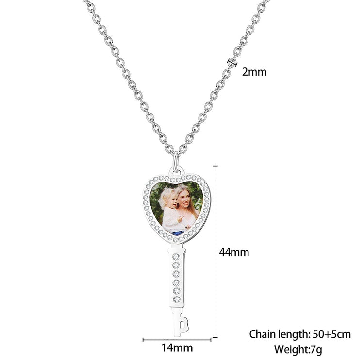 Customizable Photo Key Necklace Hip Hop Silver Color Pendant Necklace