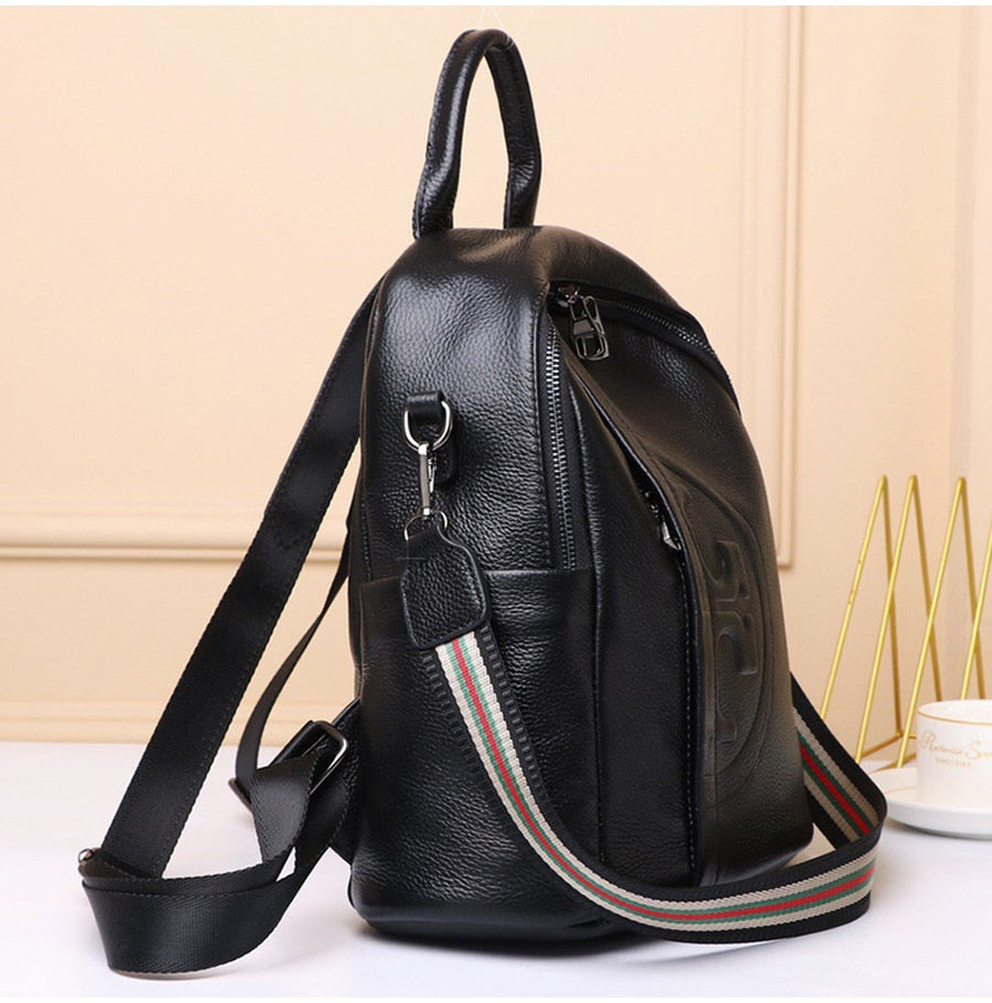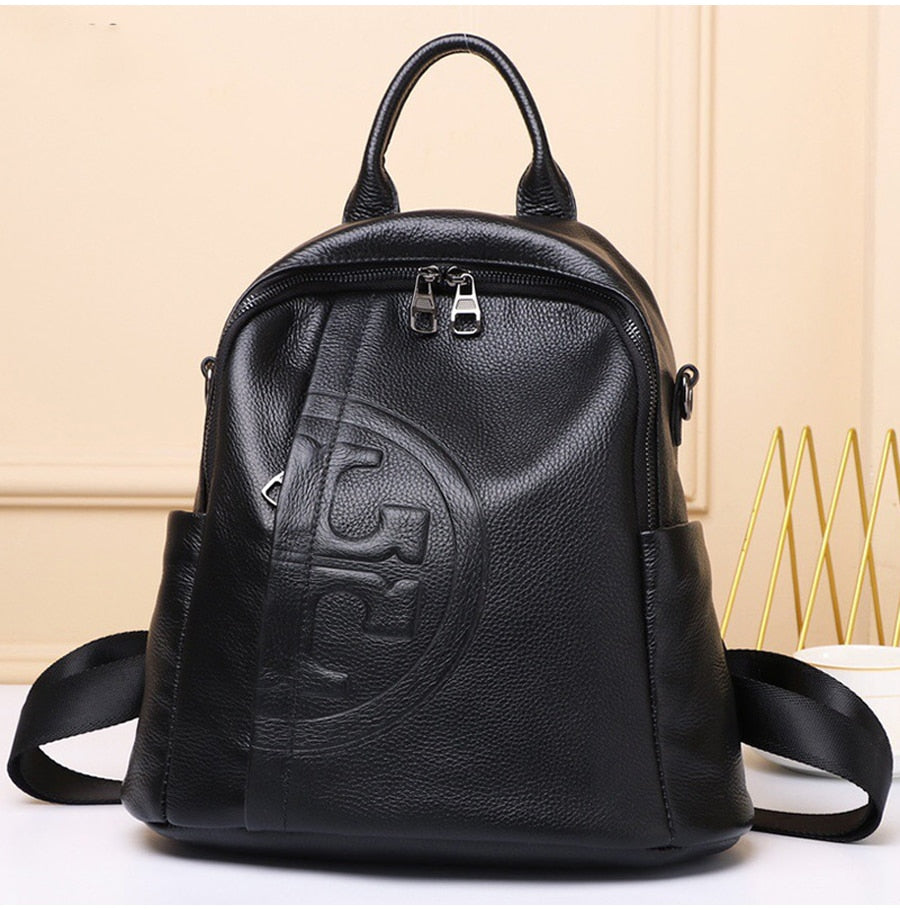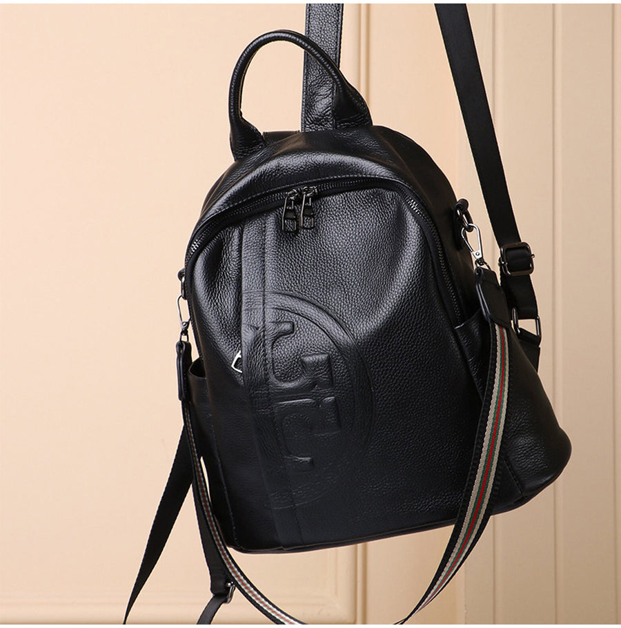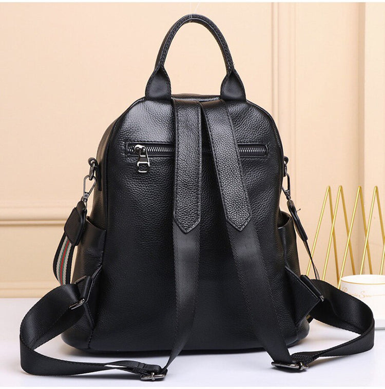 Genuine Real Cowhide Leather Backpack High Quality Women's Bag Durable Dirty Student School Bag
