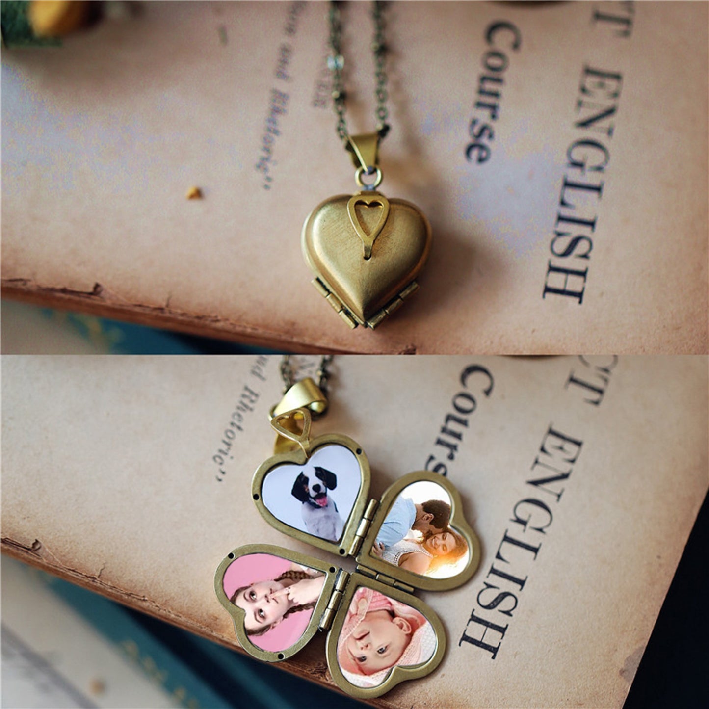 Personalized Four Leaf 4 Leaves Clover Pendant Necklace Customized Photo Box Girls Lover Fashion Jewelry
