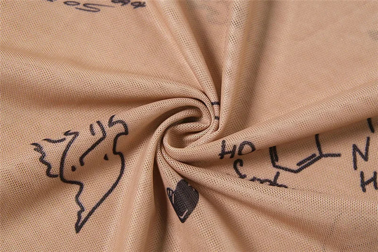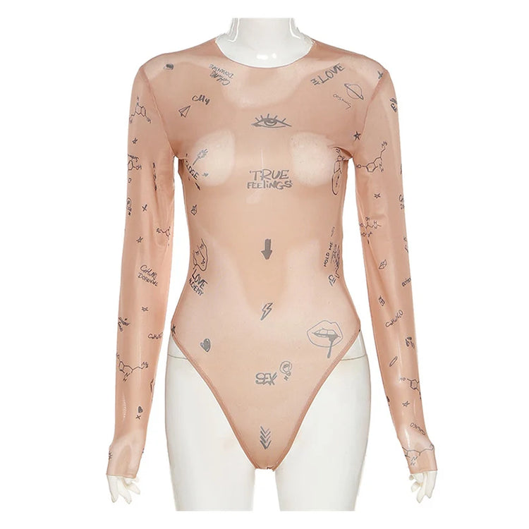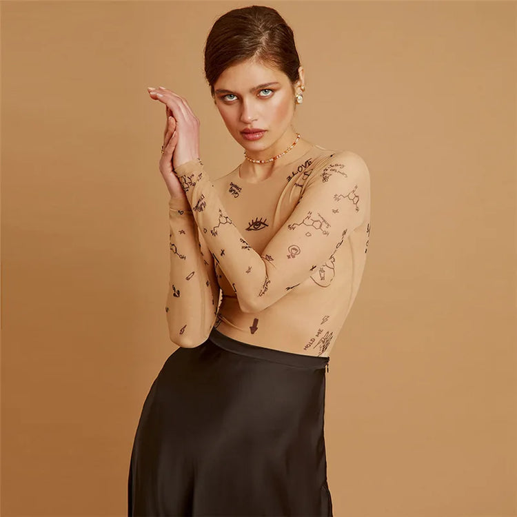 Print tight-fitting one-piece Top Women Long-Sleeved Bodysuits O-Neck