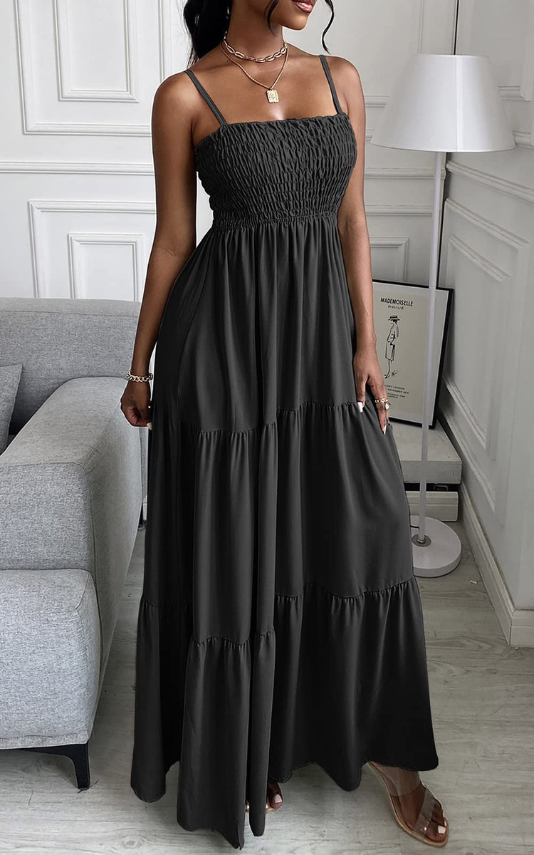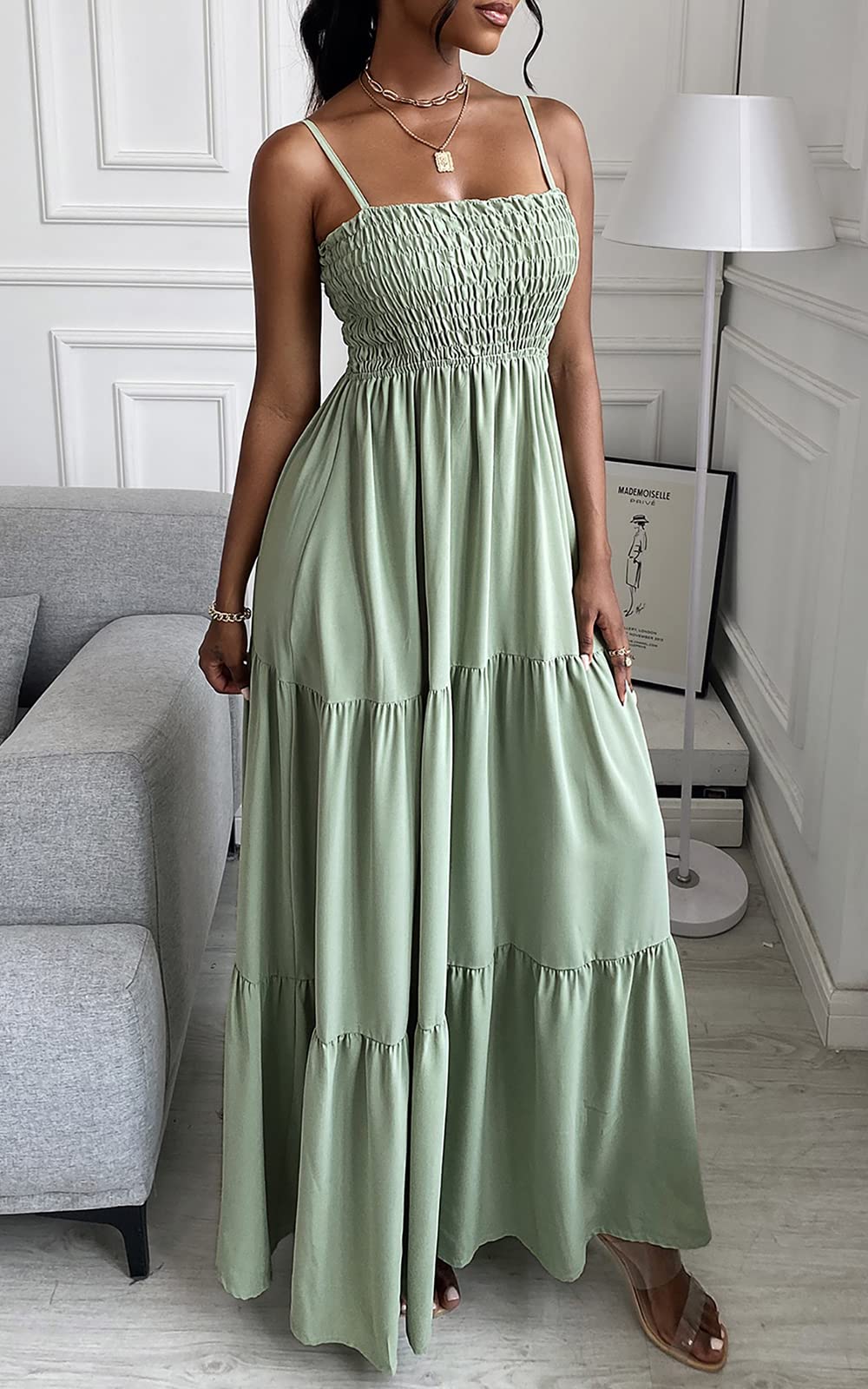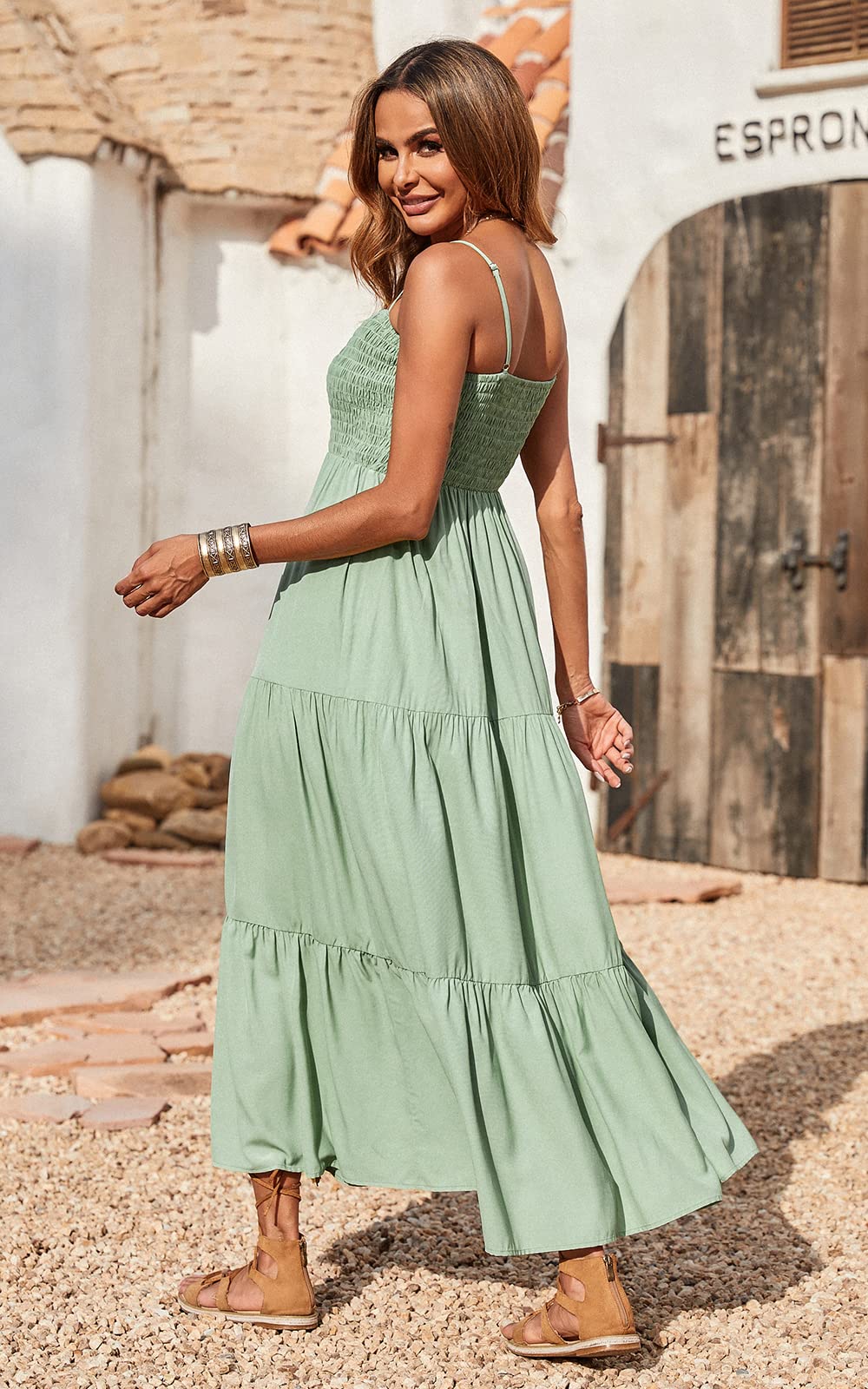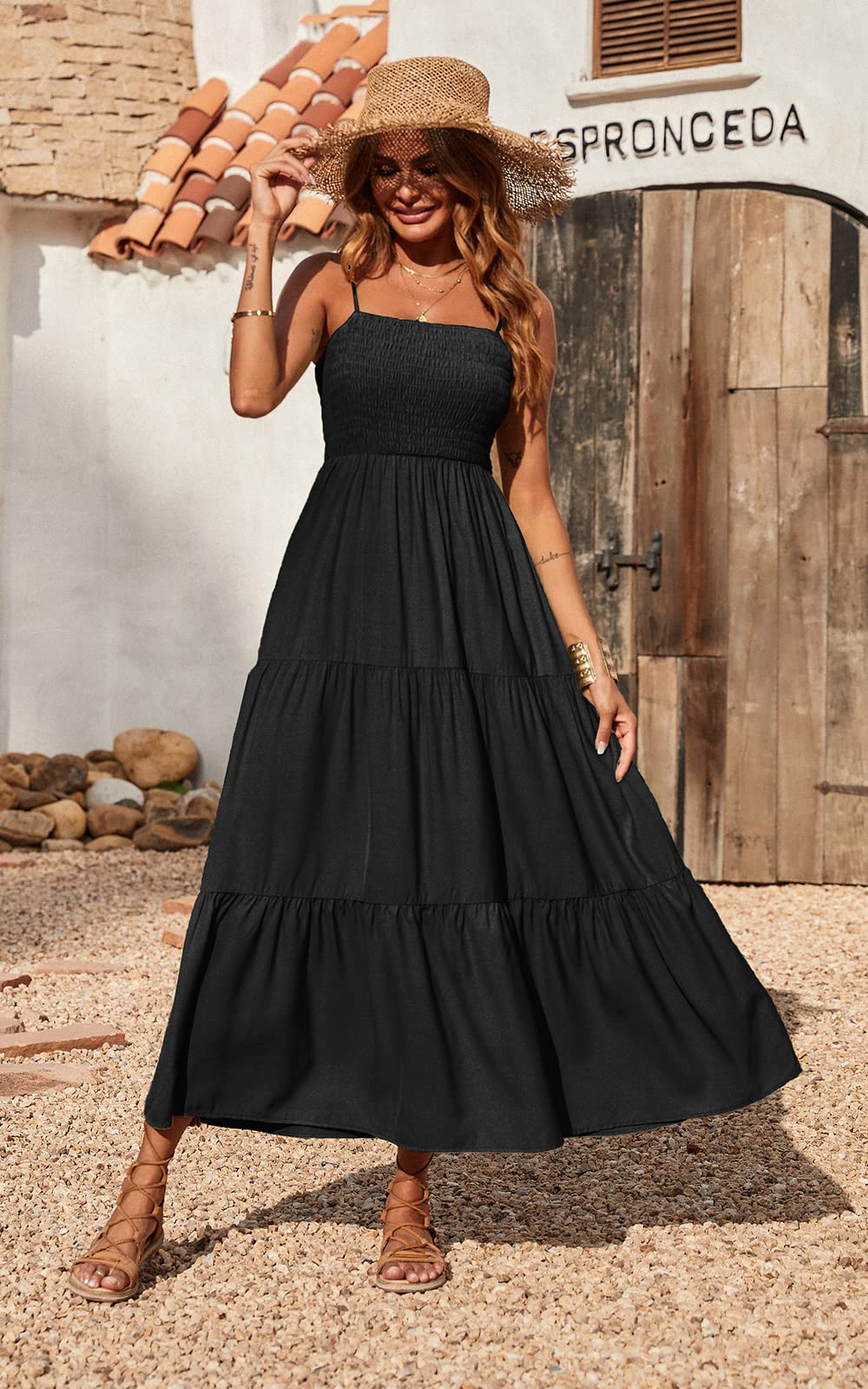 Spaghetti Strap Maxi Dress Women Summer Sleeveless Smocked Boho Long Beach Dress Sundresses