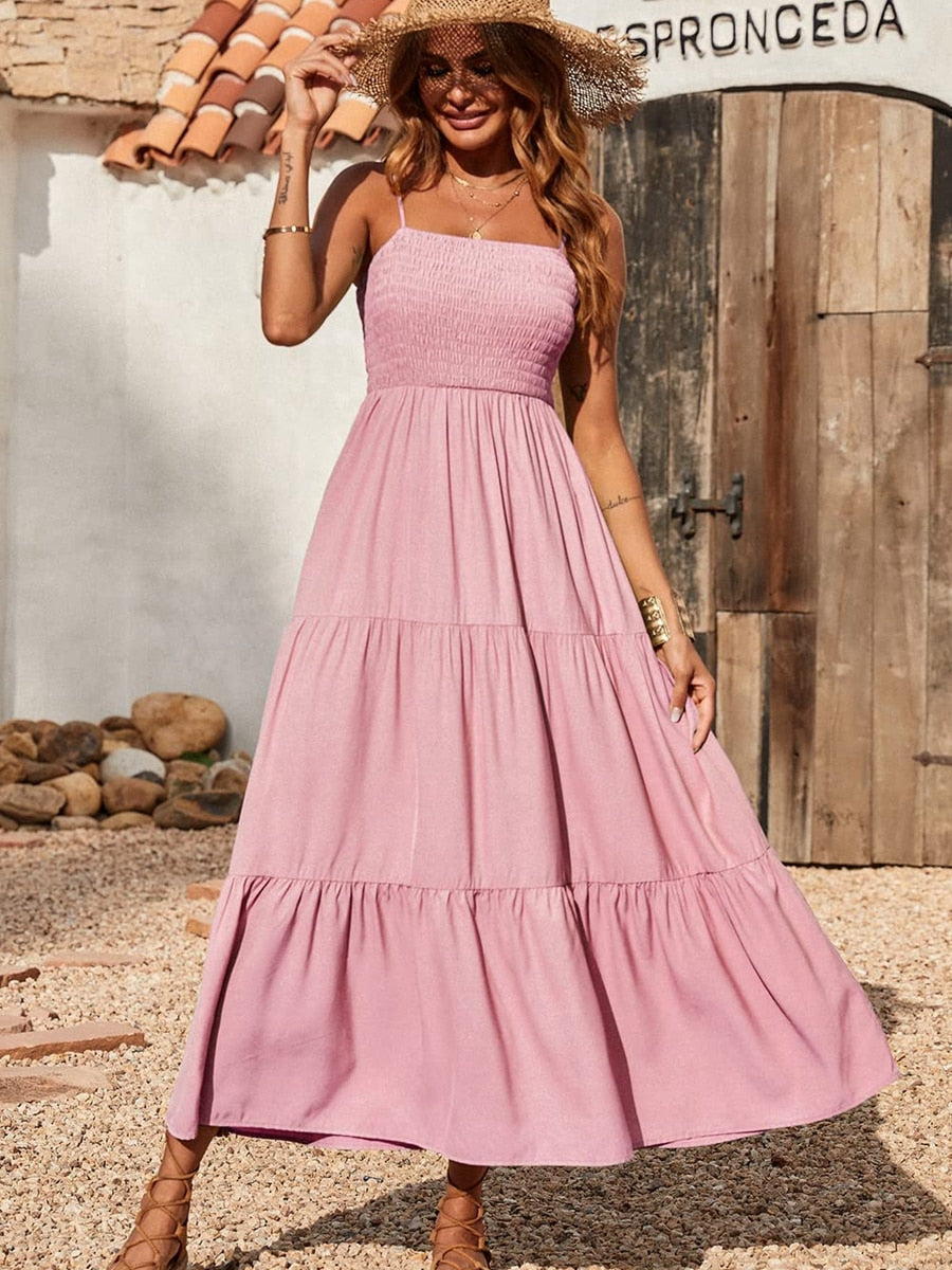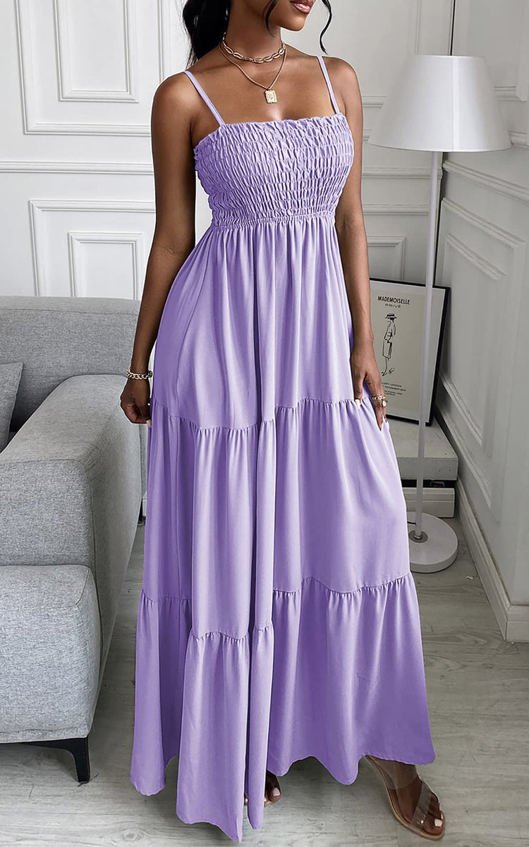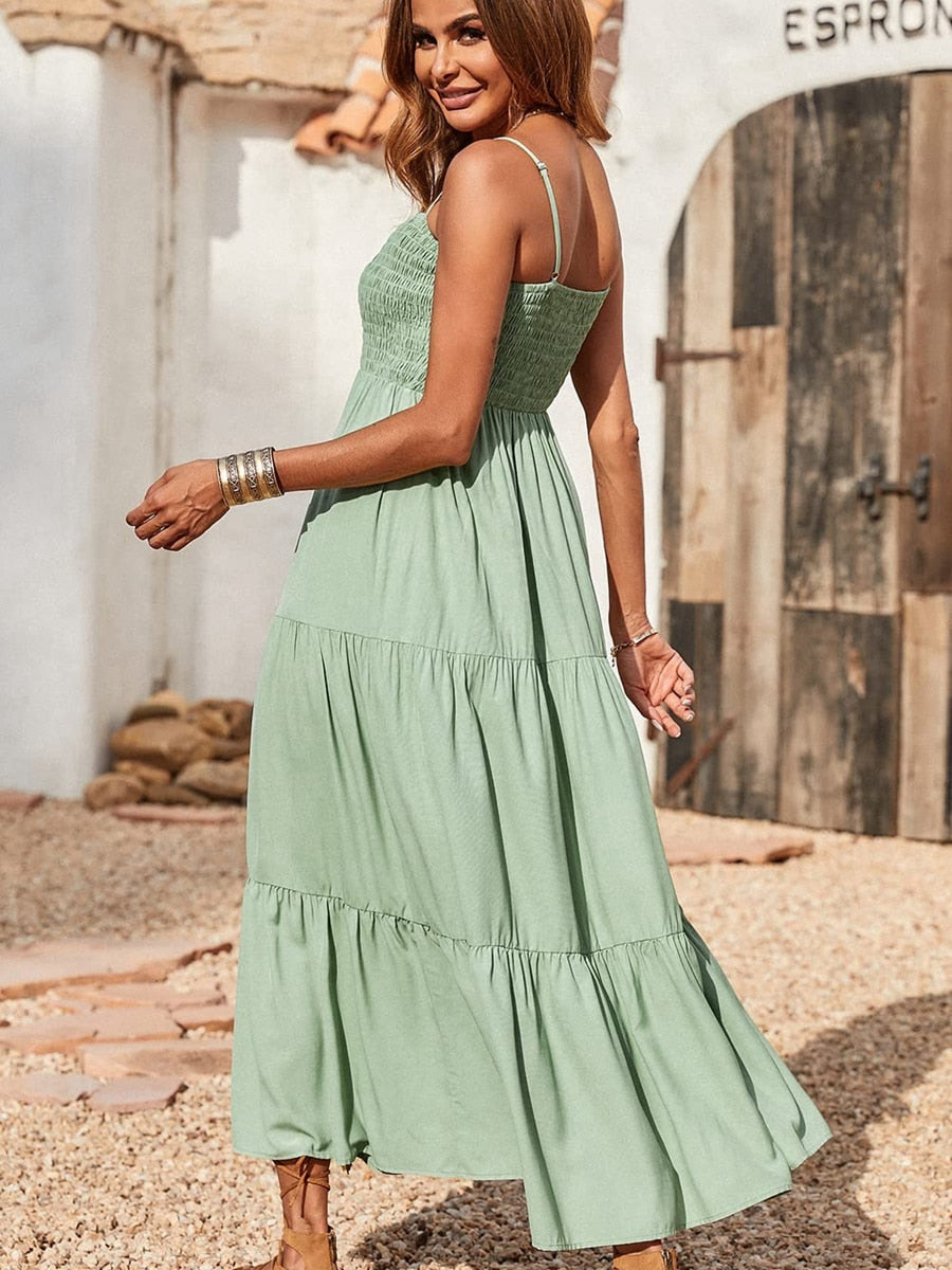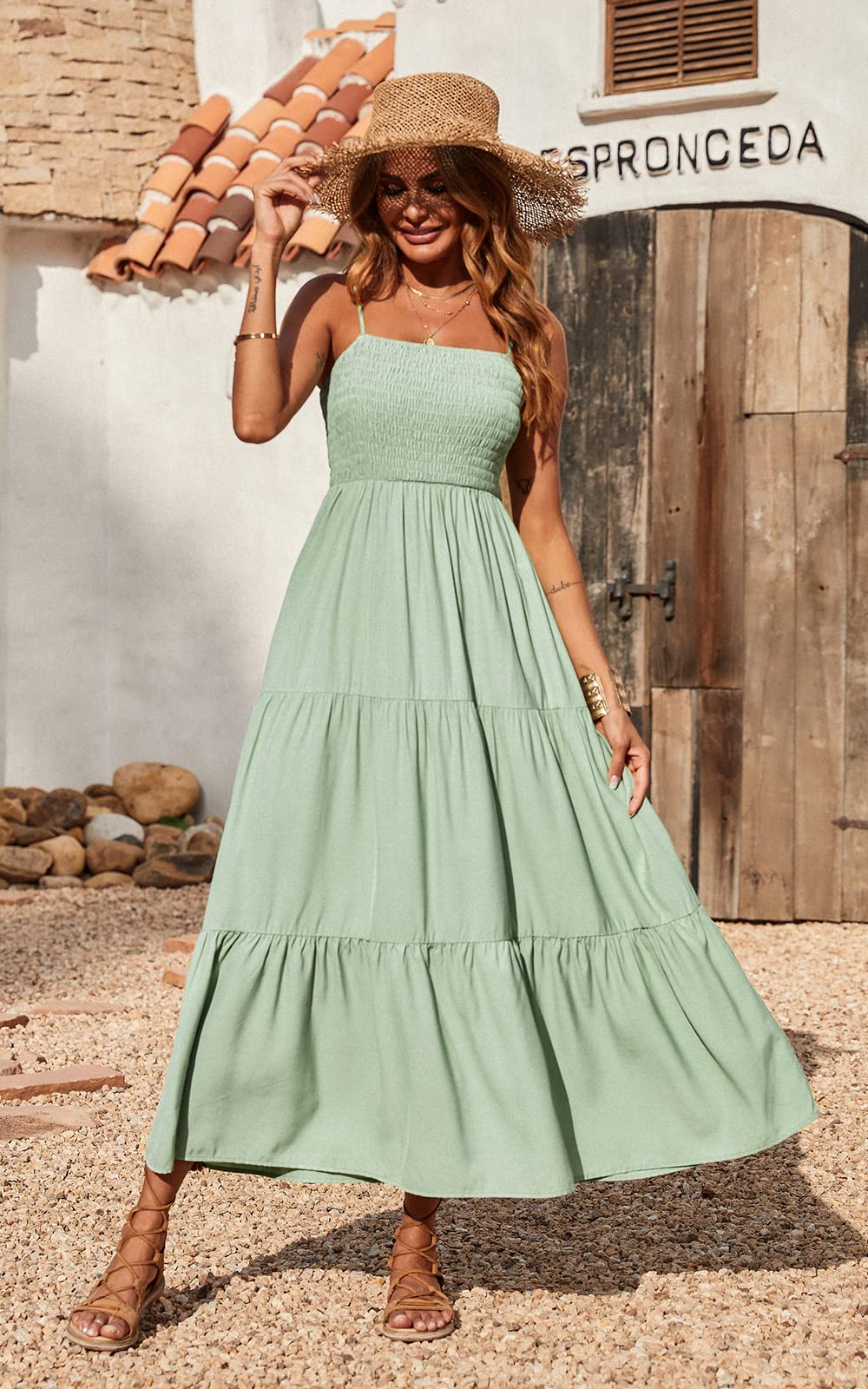 Spaghetti Strap Maxi Dress Women Summer Sleeveless Smocked Boho Long Beach Dress Sundresses