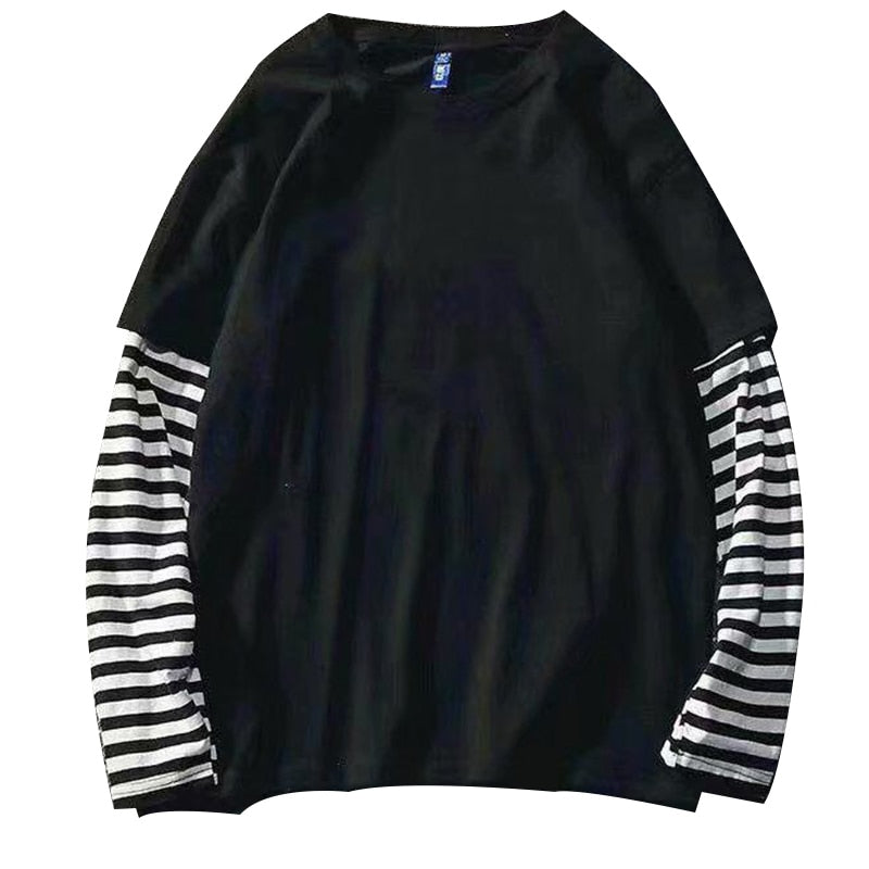 Spring-autumn new all-match Slim pullover striped stitching T-shirt long-sleeved bottoming shirt