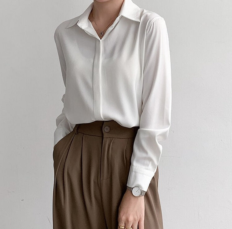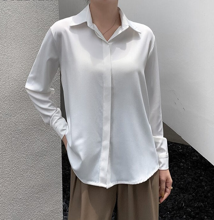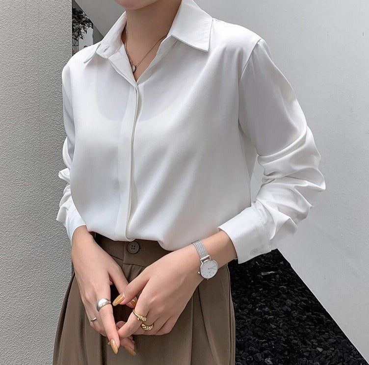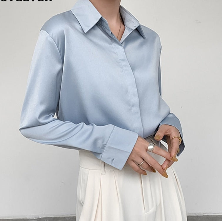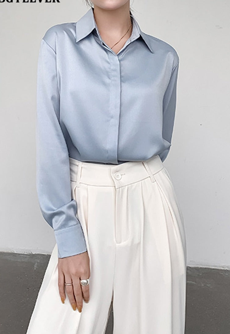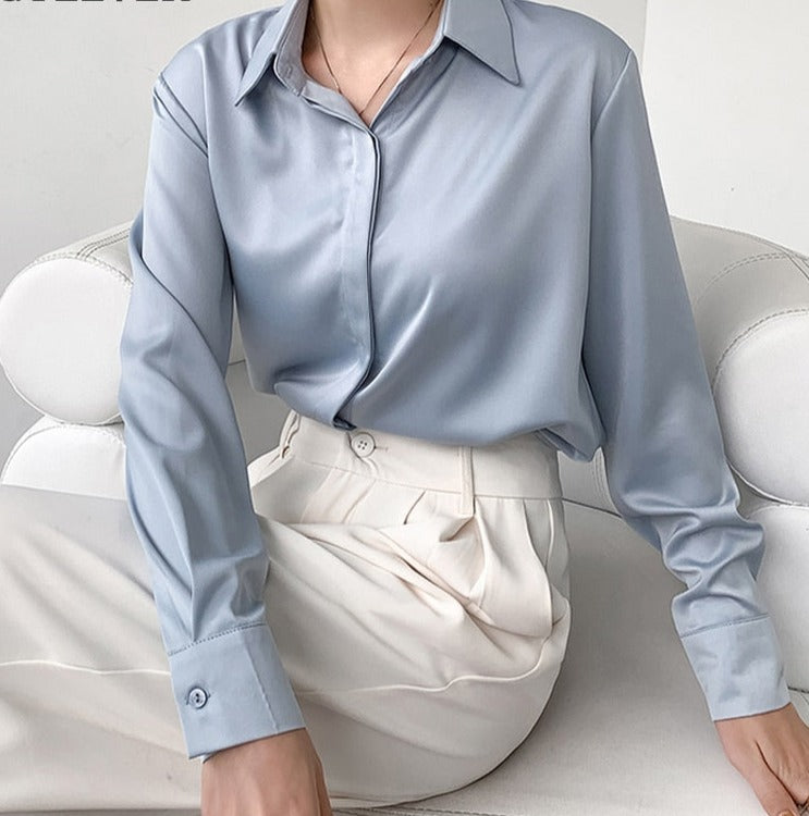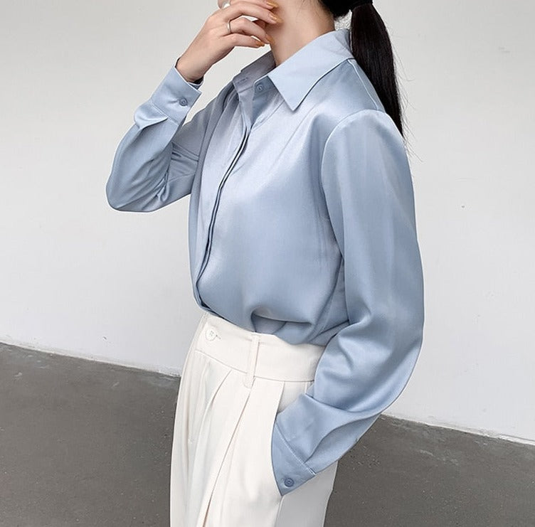 Spring Loose Women Satin Blouses Long Sleeve Single-breasted Female Shirts Top