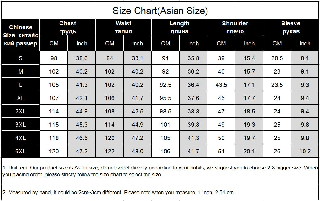 Size Bust Sleeve Length Length