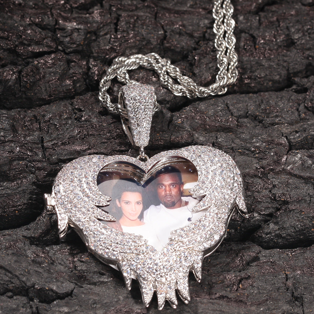 Zircon Heart Pendant DIY Flip Top Inlaid Zircon Photo Hip Hop Pendant