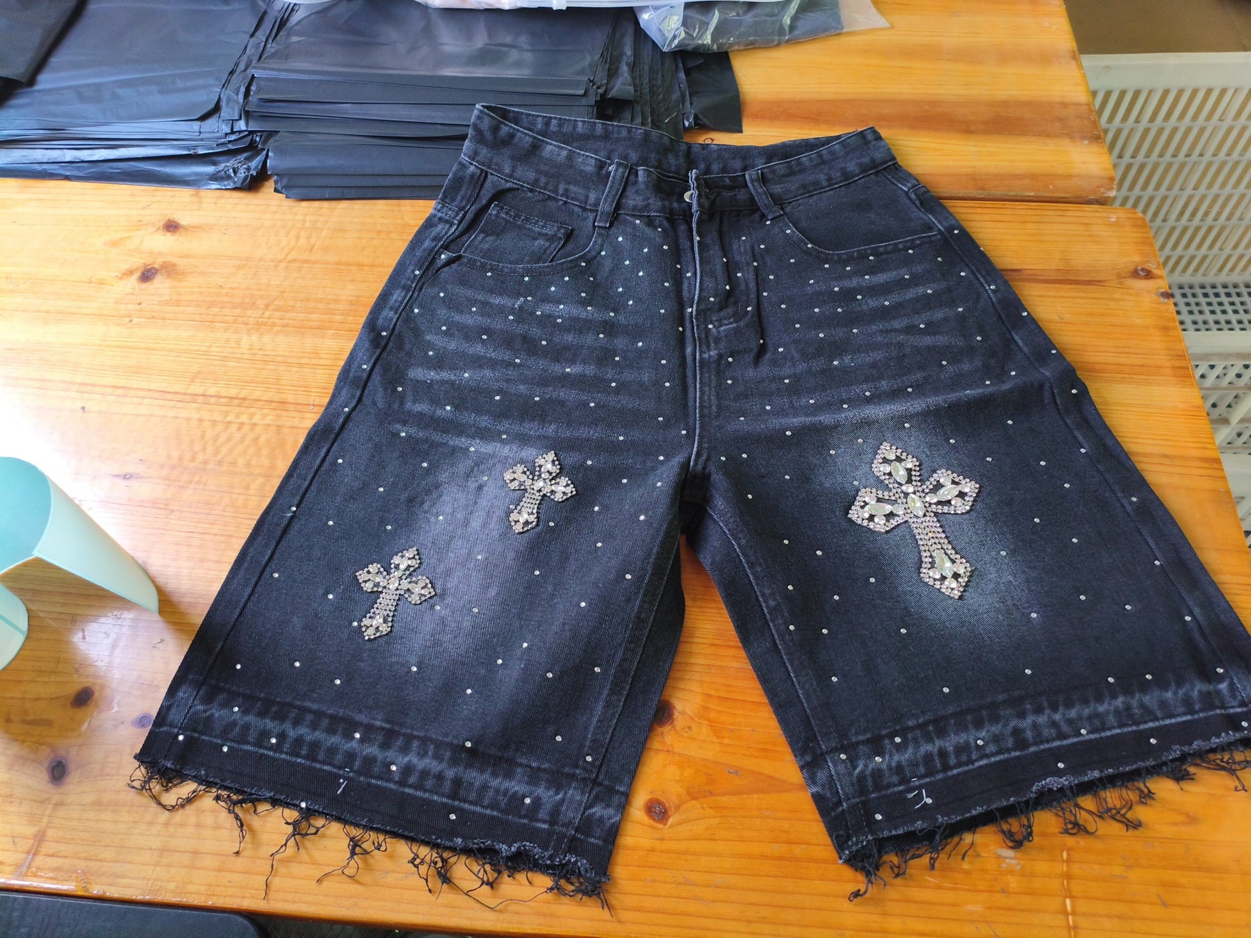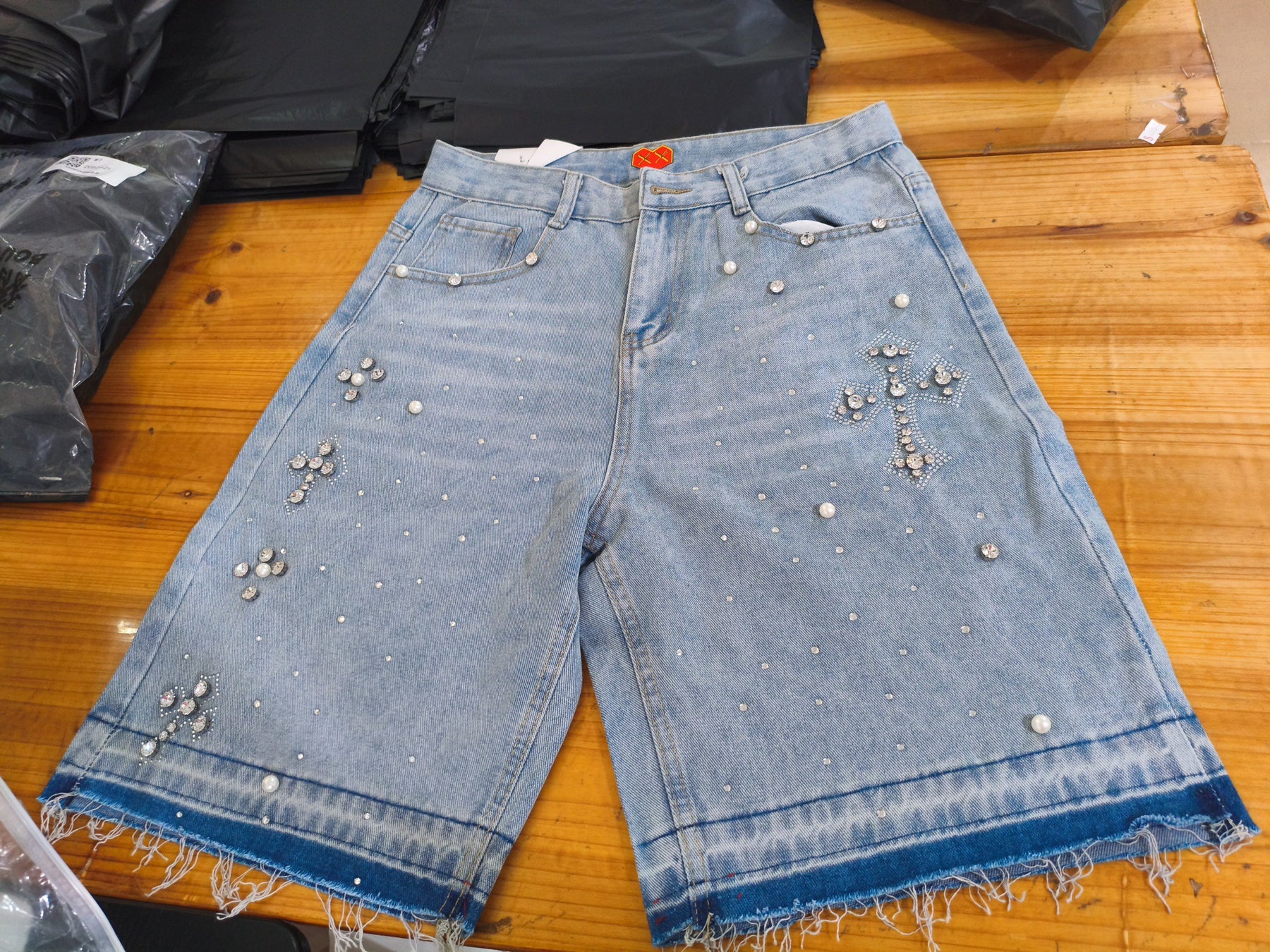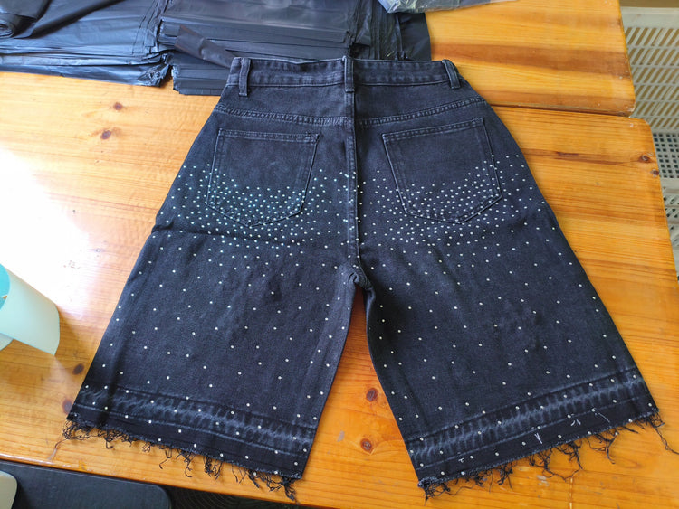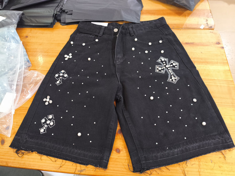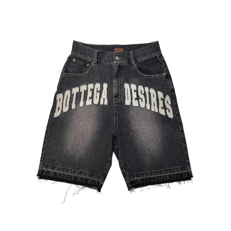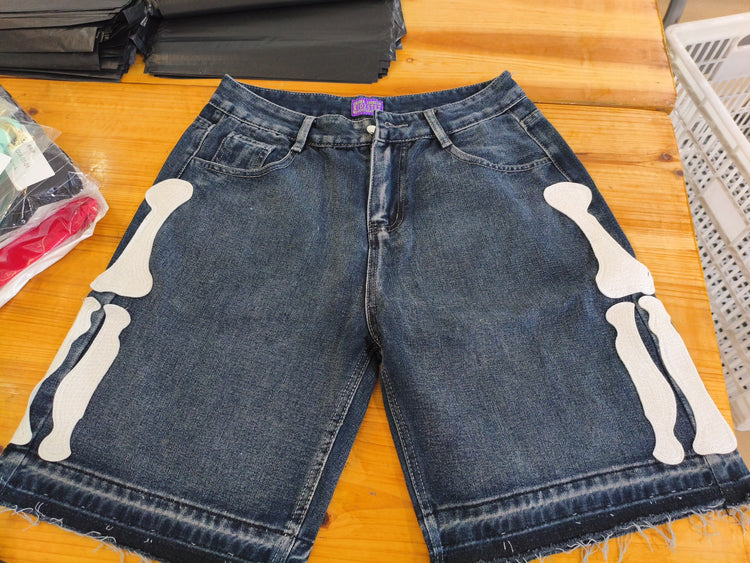 Y2K Embroidered Bone Casual Pants Loose Denim Shorts