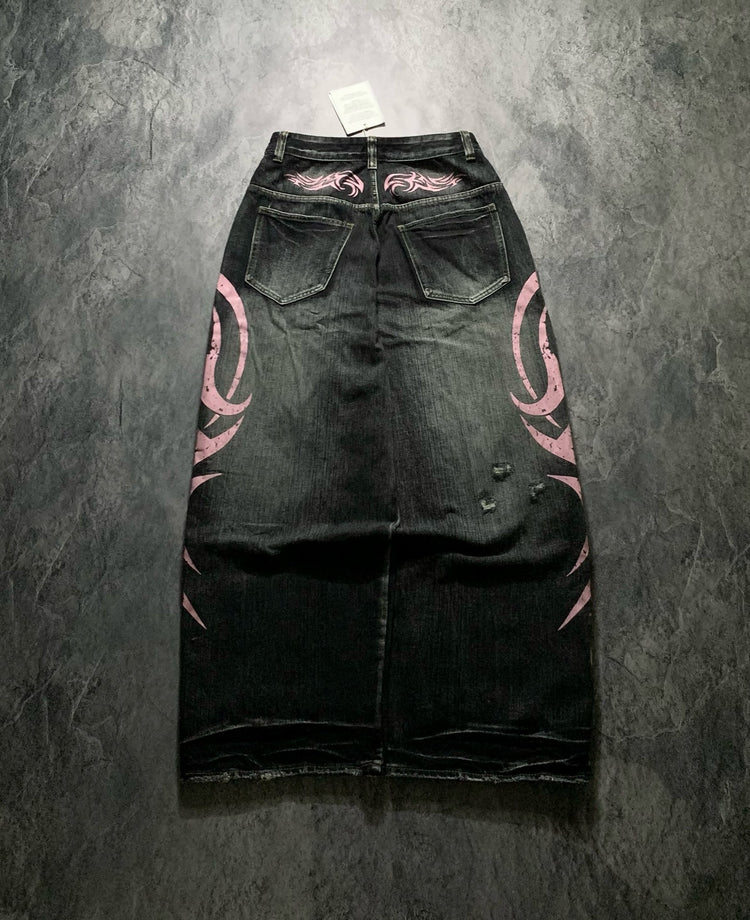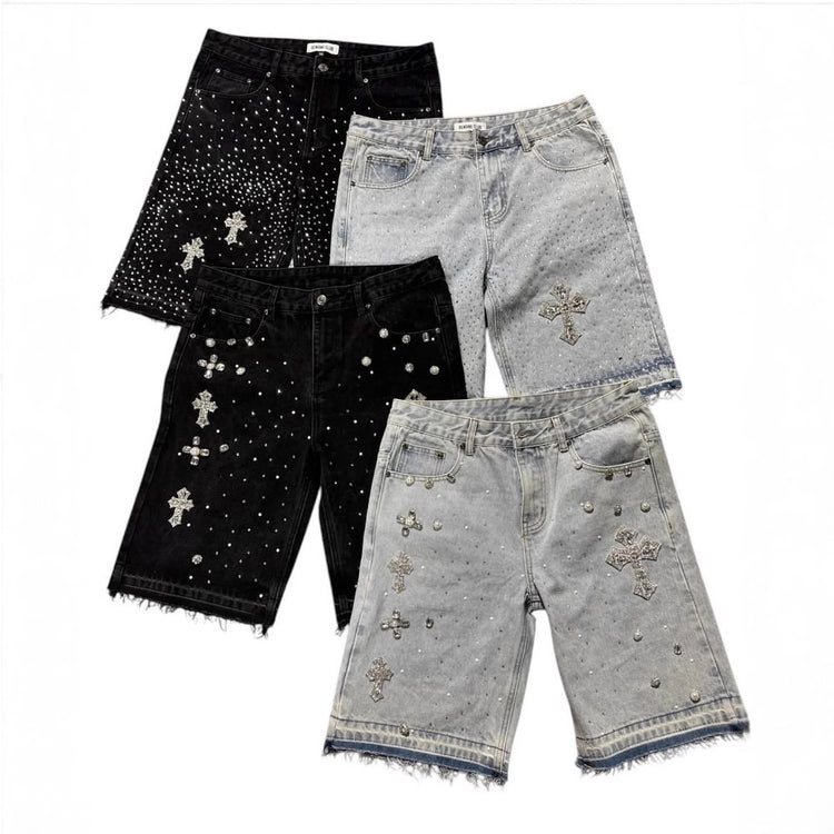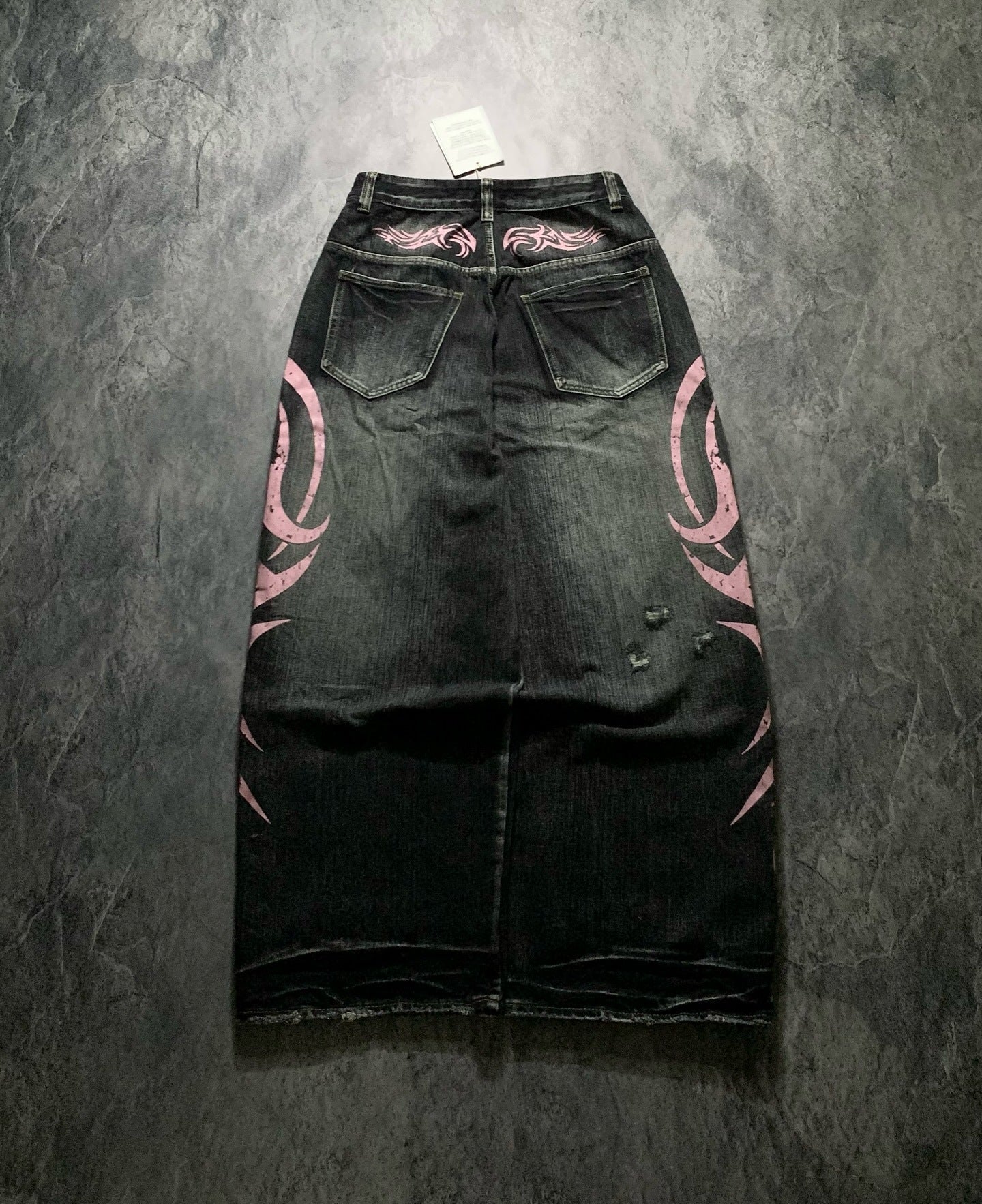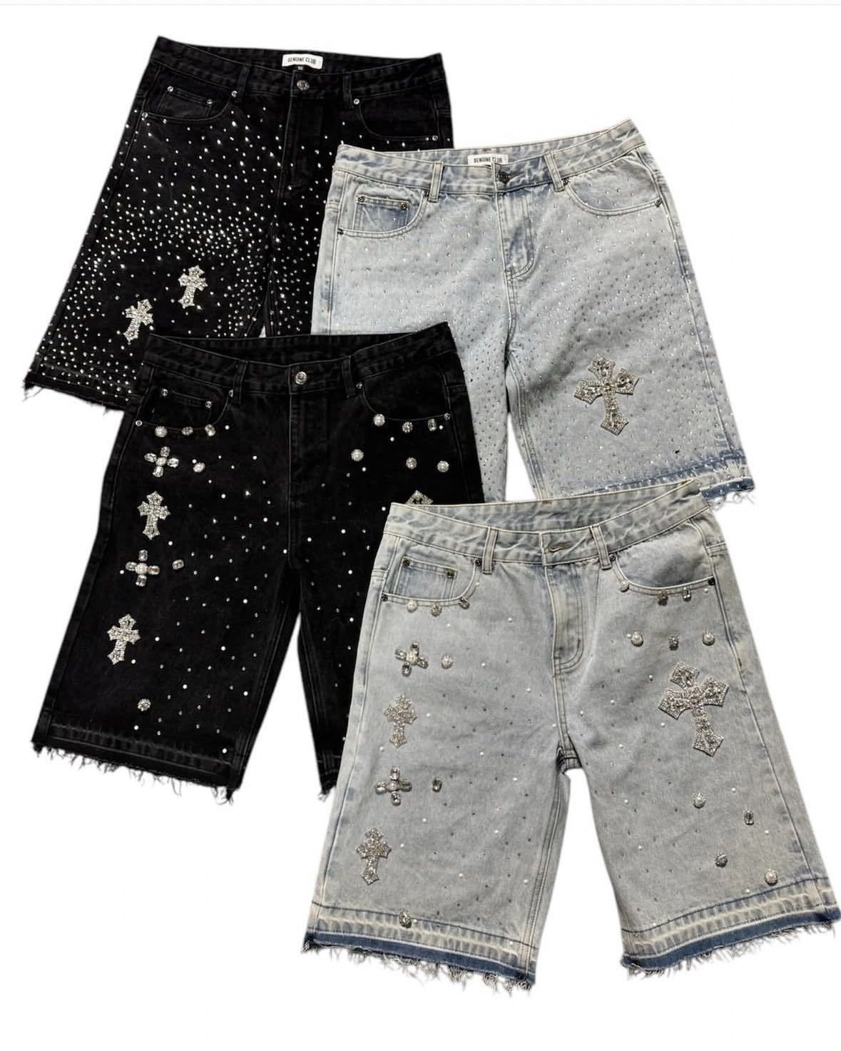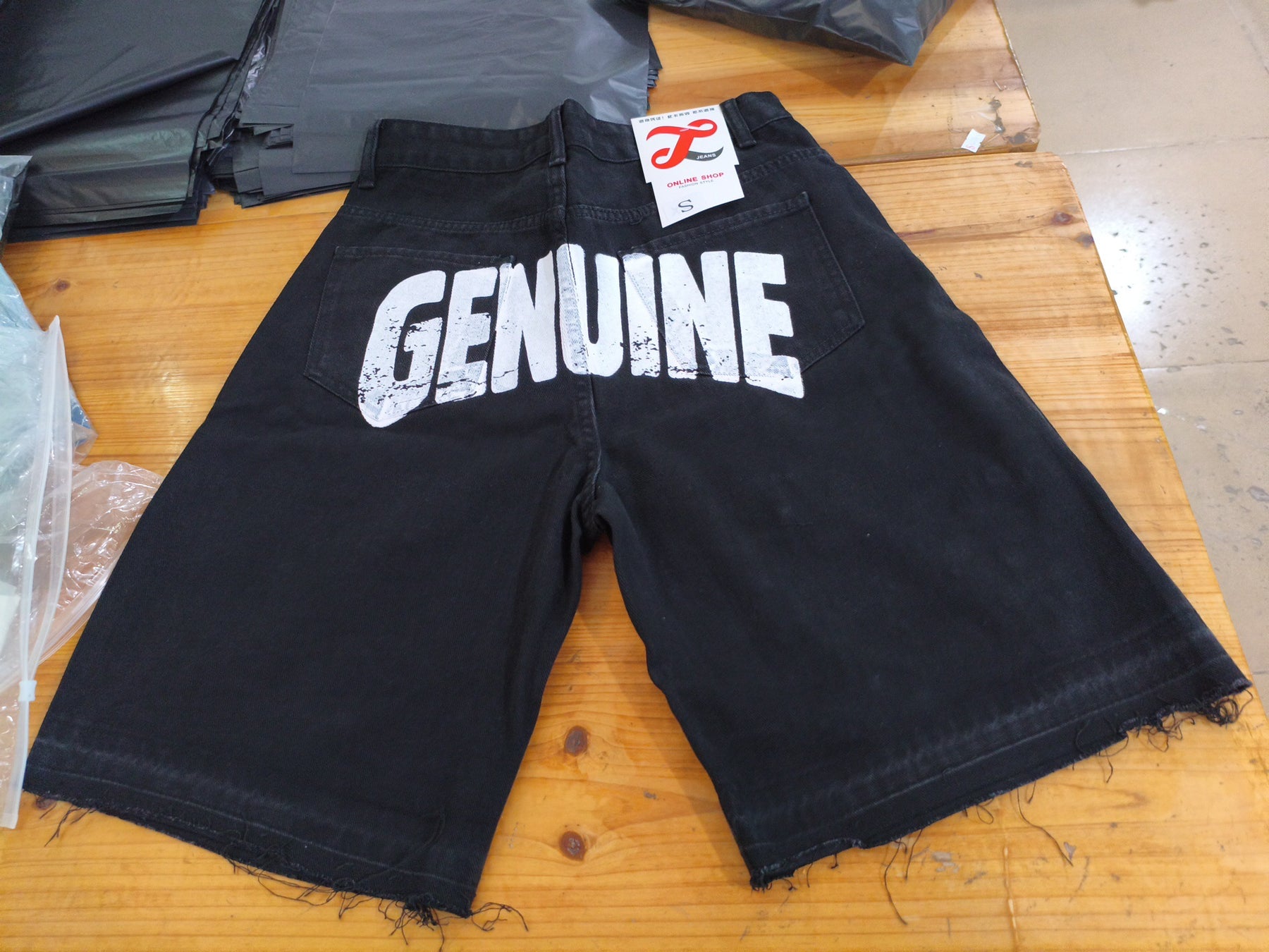 Y2K Embroidered Bone Casual Pants Loose Denim Shorts