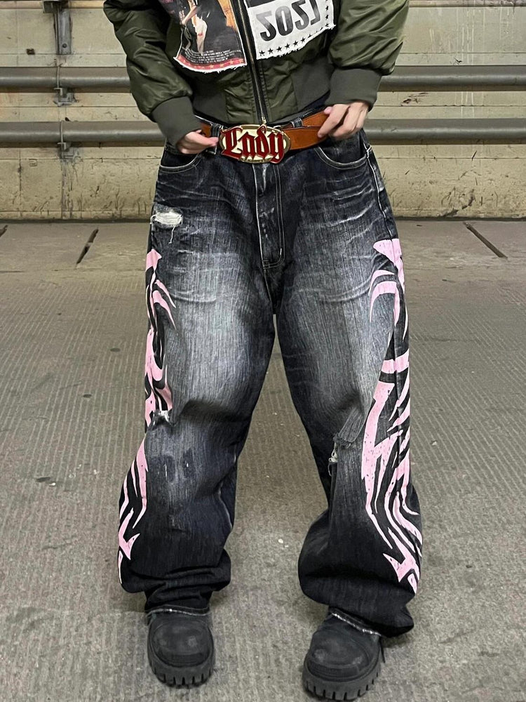 Striped jeans, Y2K casual wide-leg straight-leg jeans