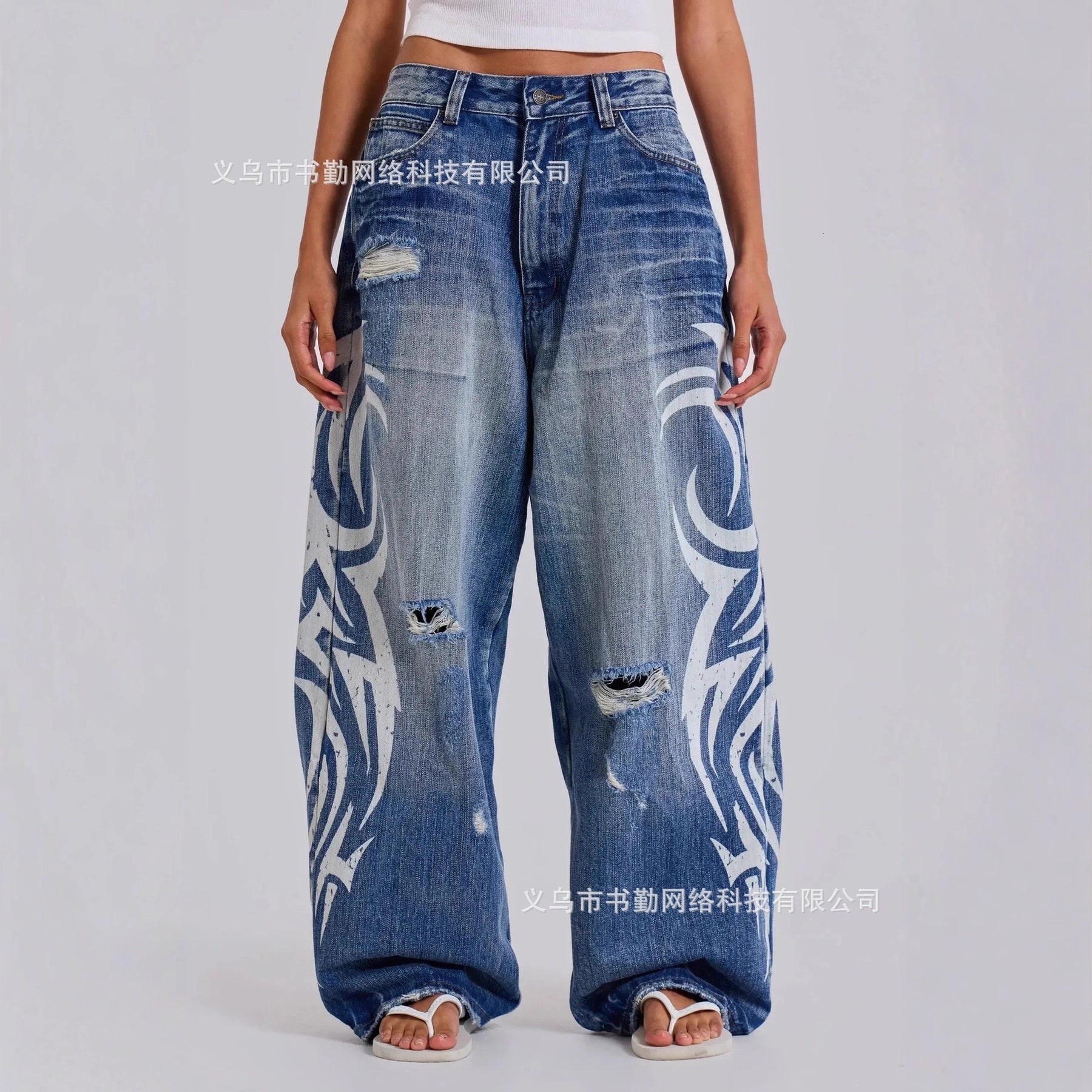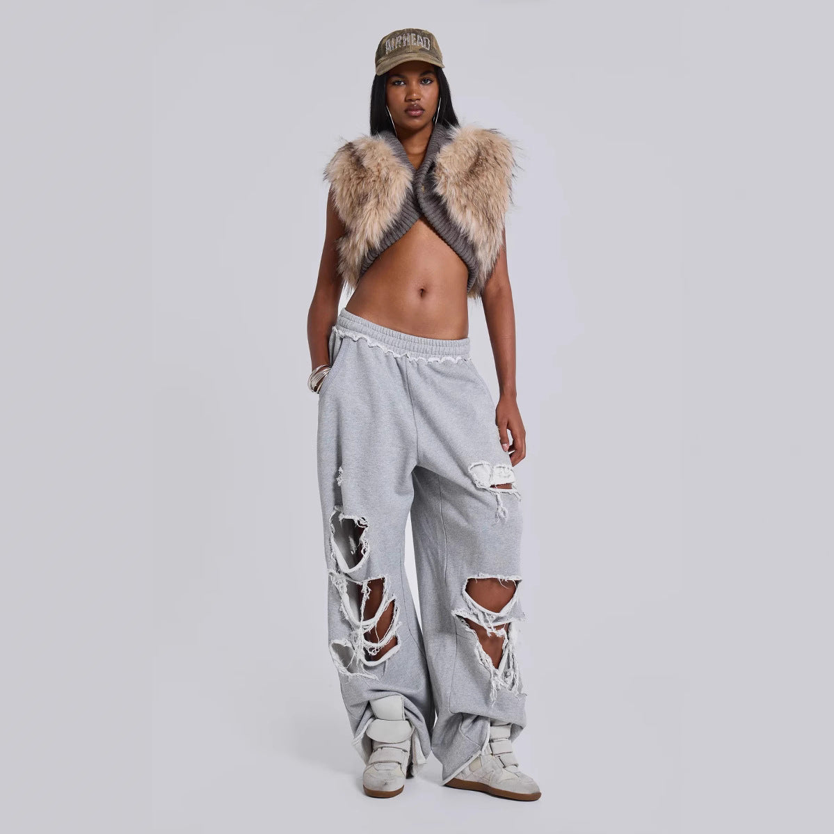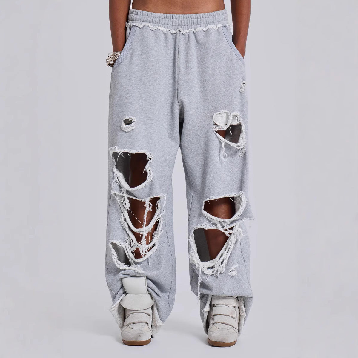 High-street trendy ripped hip-hop wide-leg sweatpants