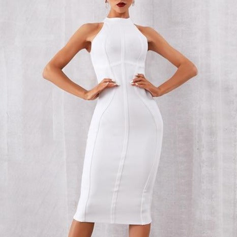 2022 New Summer White Women Bodycon Bandage Dress Elegant Tank Sexy Sleeveless Dresses