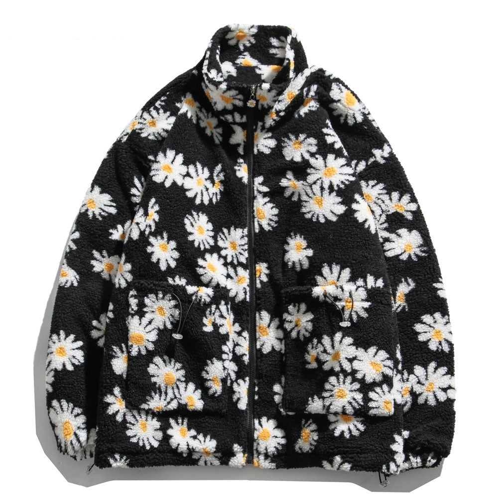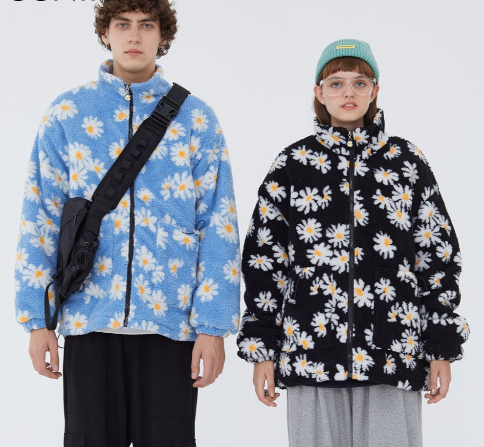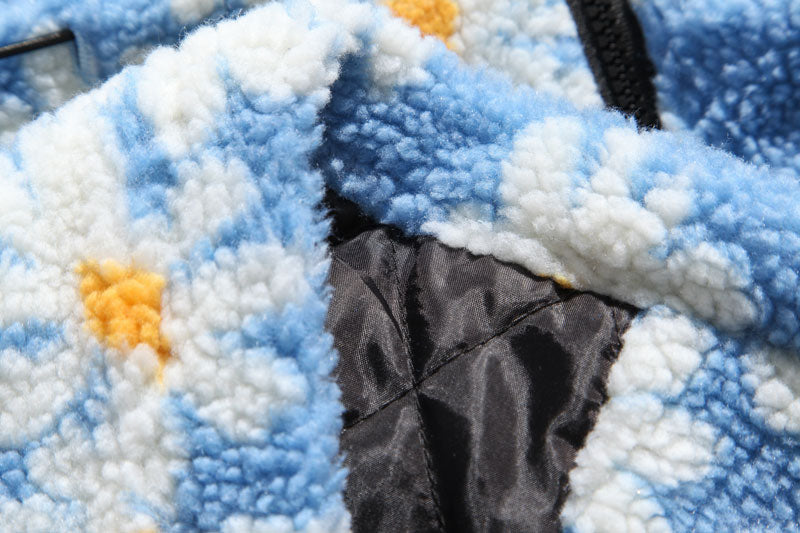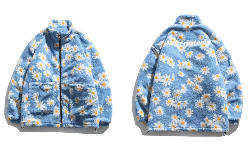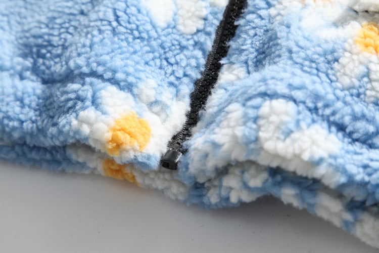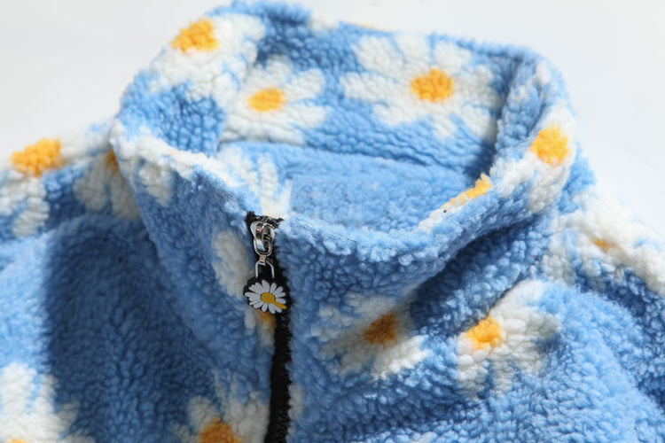 Cotton Padded Thick Parkas Jackets Daisy Print Fleece Warm Full Zip Coats