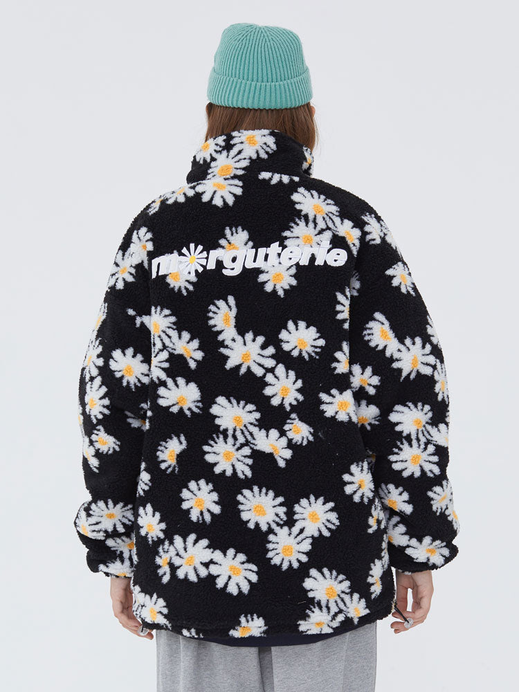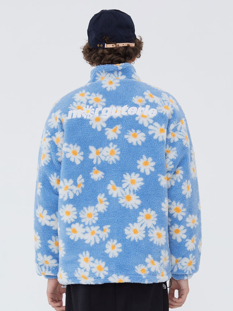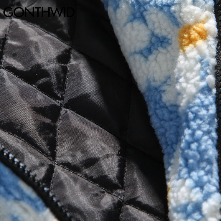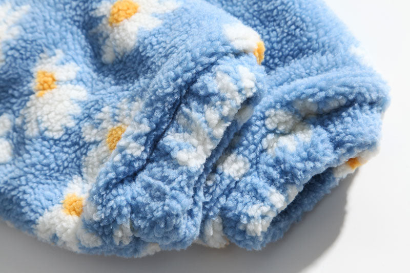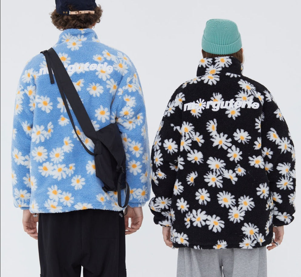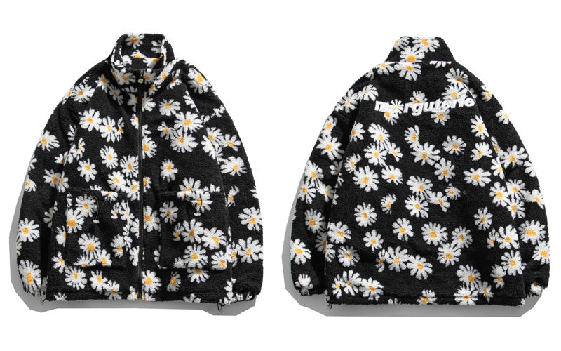 Cotton Padded Thick Parkas Jackets Daisy Print Fleece Warm Full Zip Coats