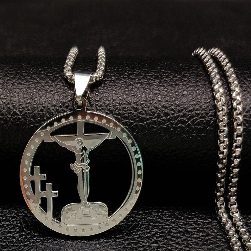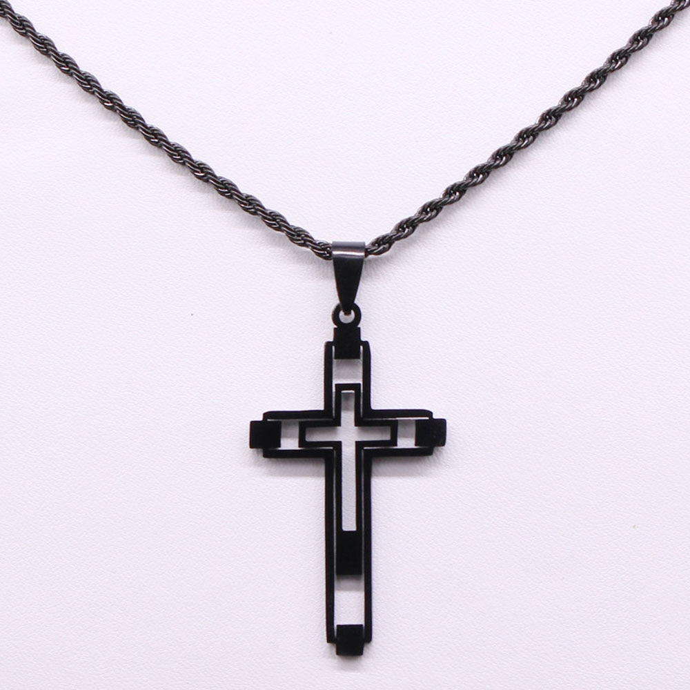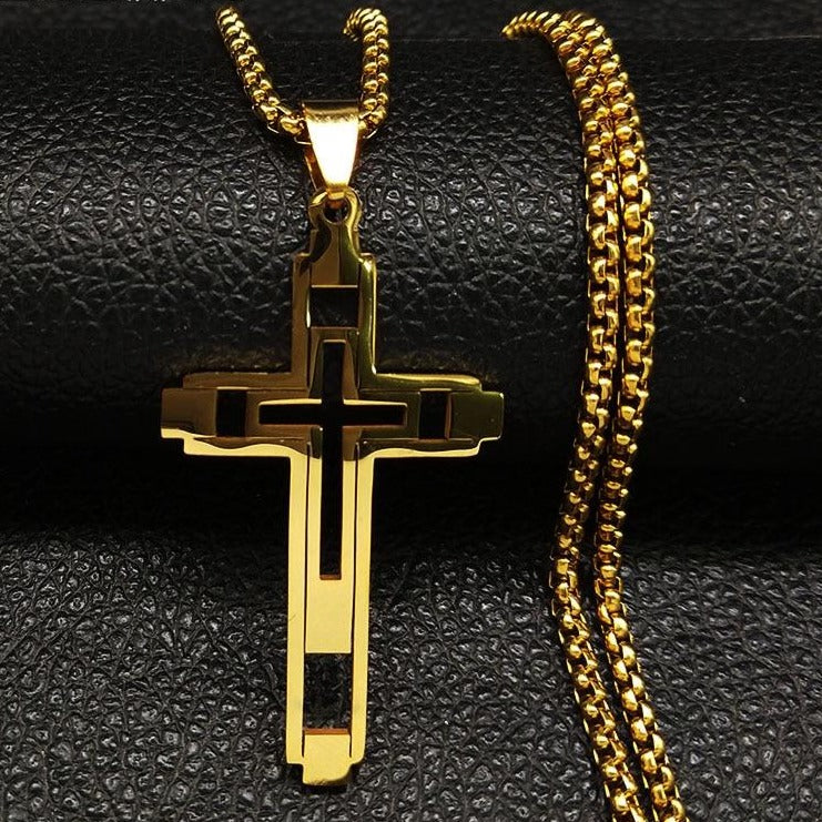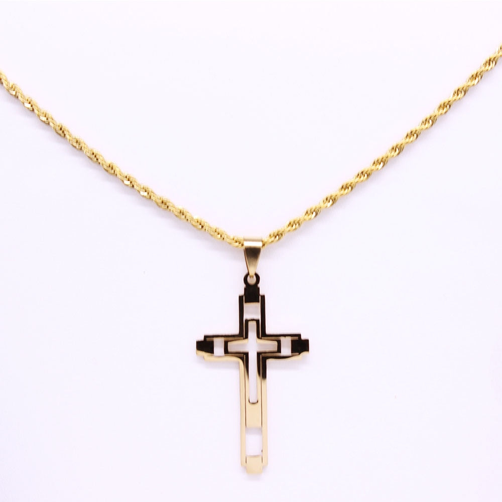 Cross Stainless Fashion Steel Choker Necklace for Men Gold and Silver Color Statement Necklace