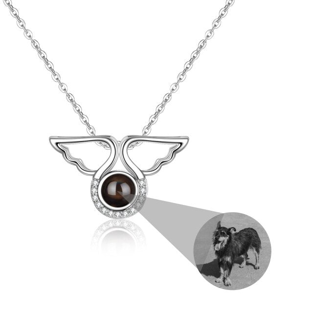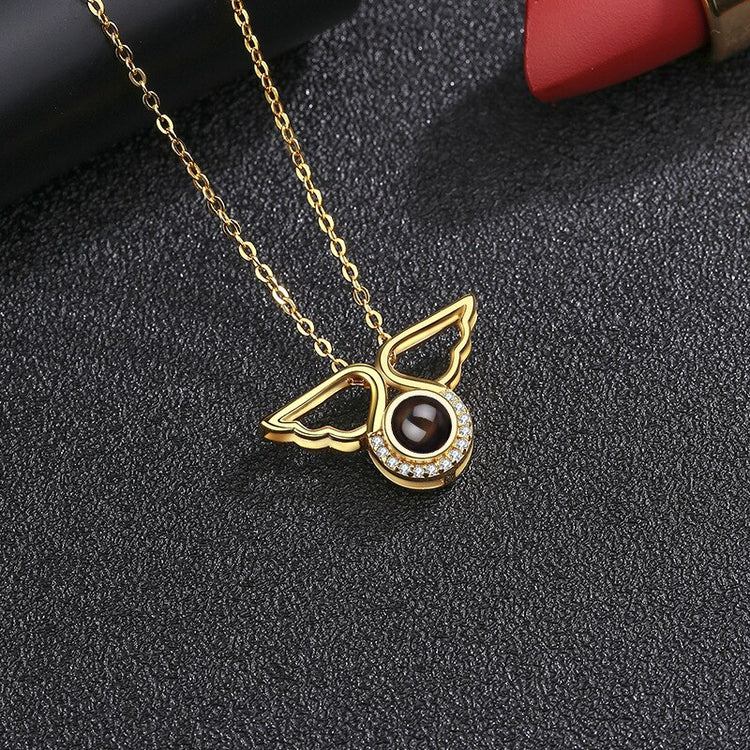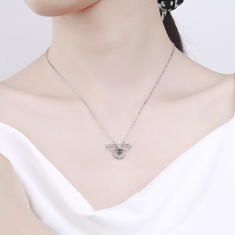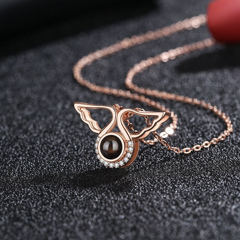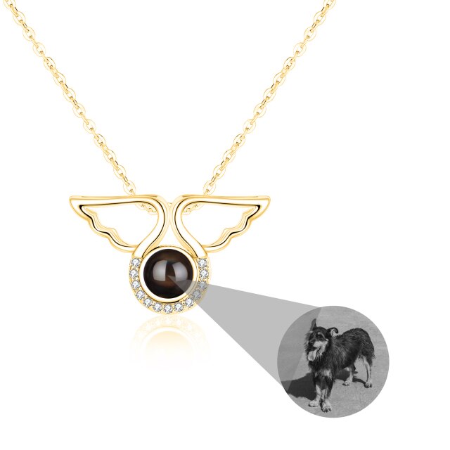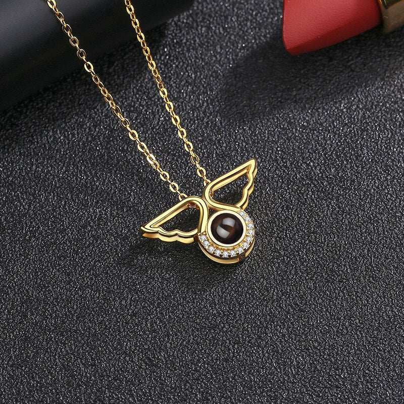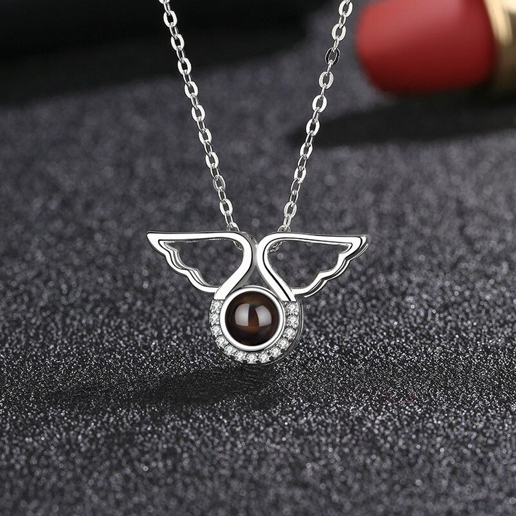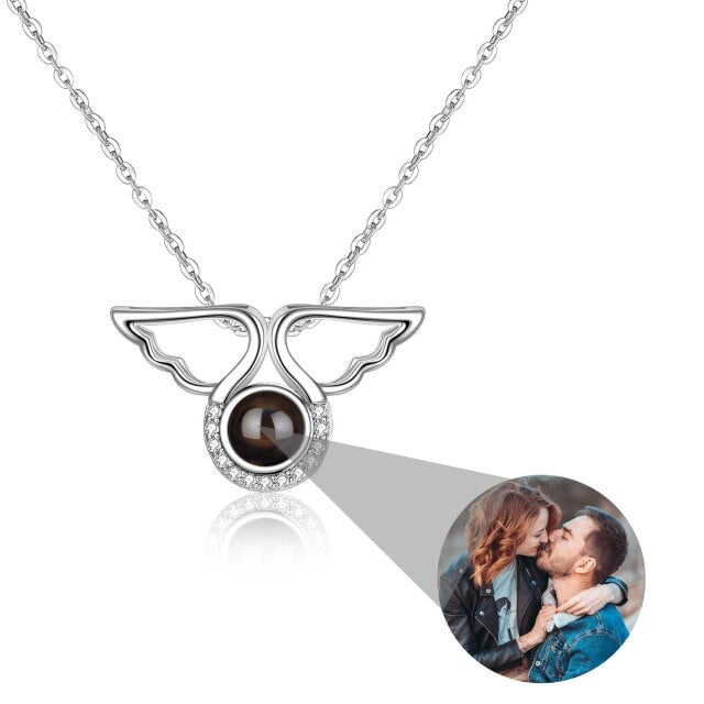 Custom Angel Wing Round Projection Necklace Personalized Photo Projection Name Necklaces