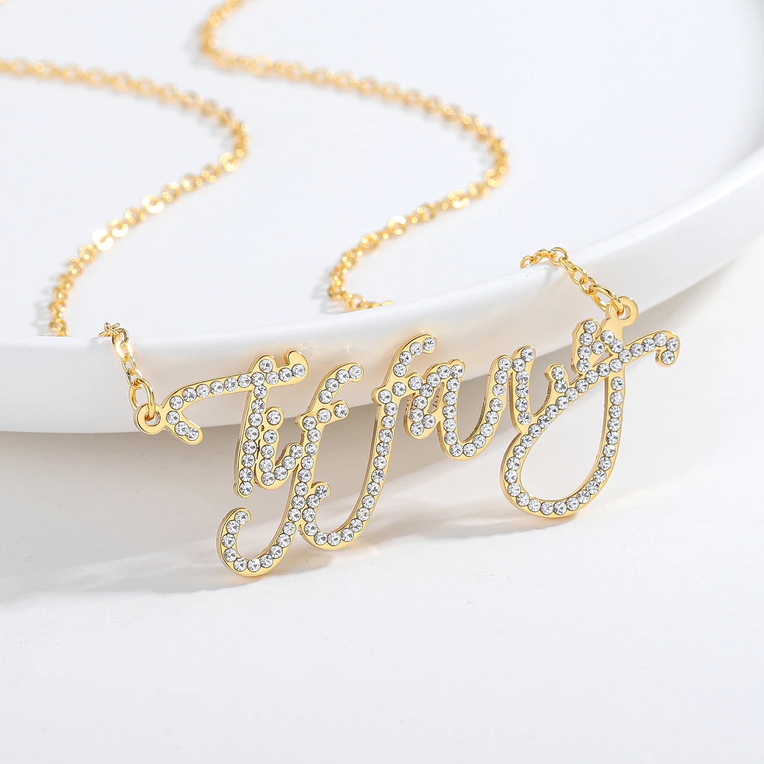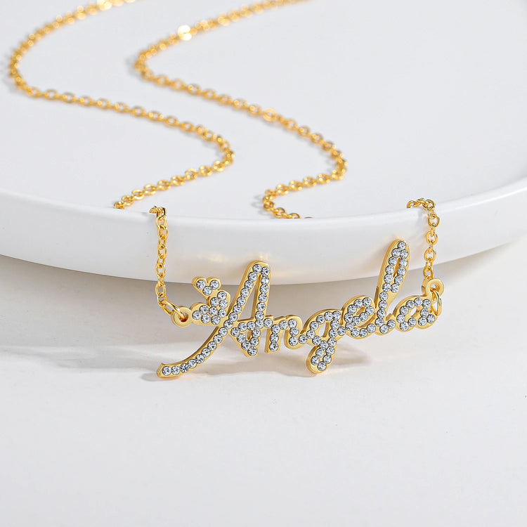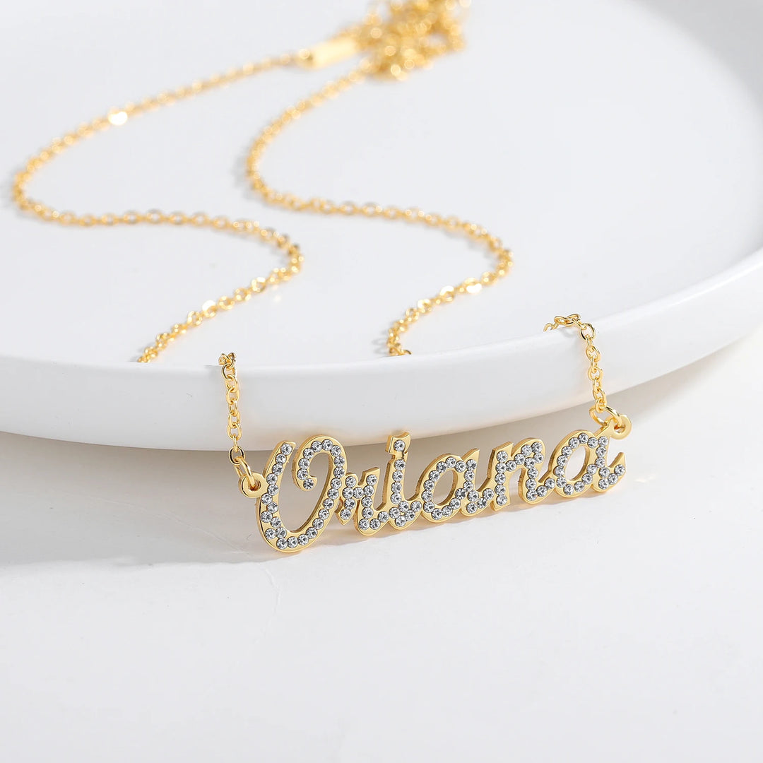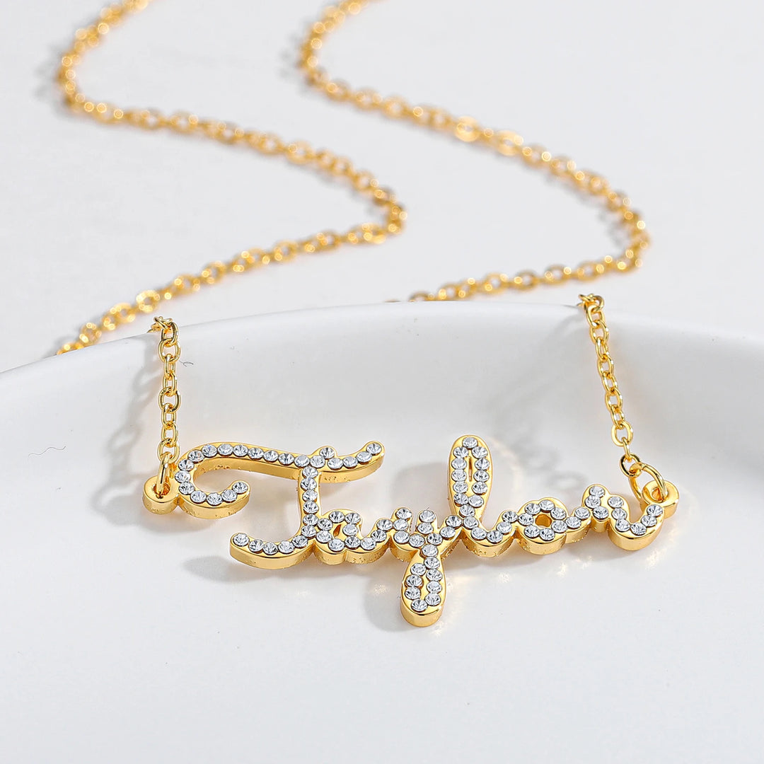 Custom Crystal Name Necklace For Women Iced Out Letter Diamond Nameplate