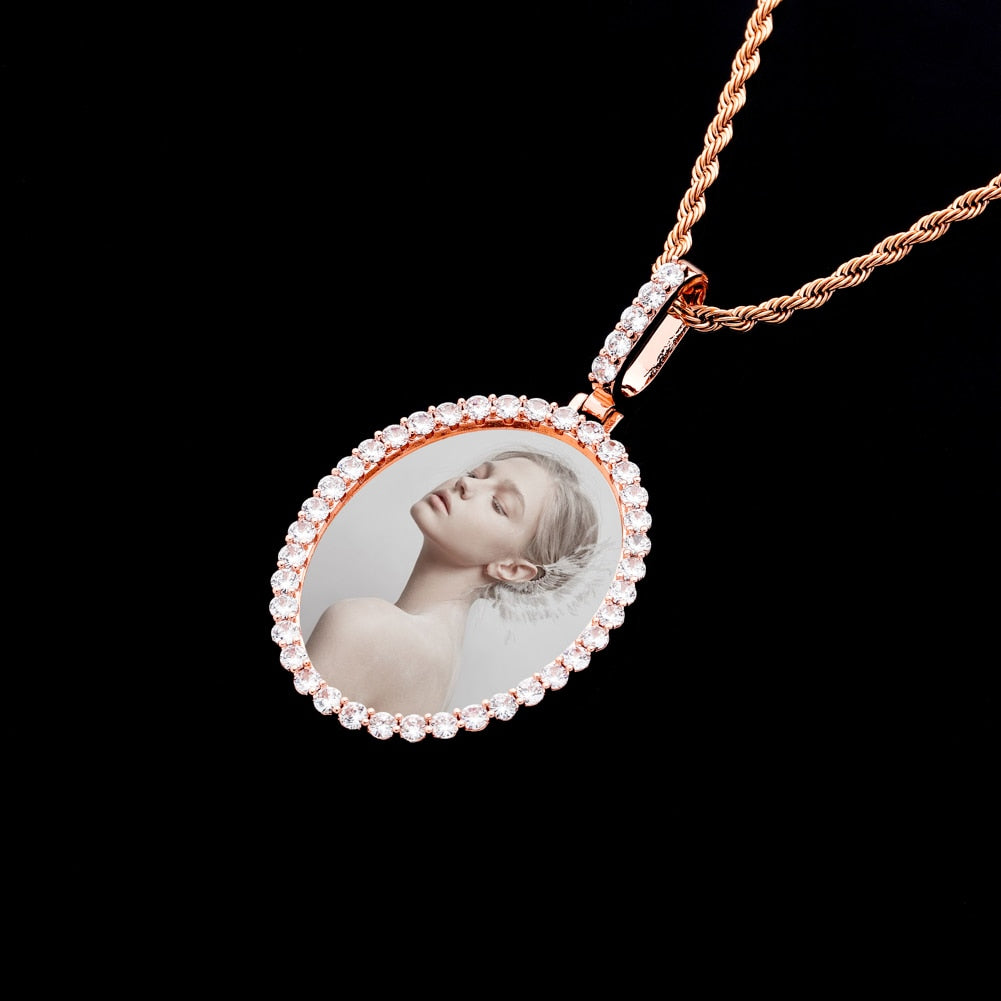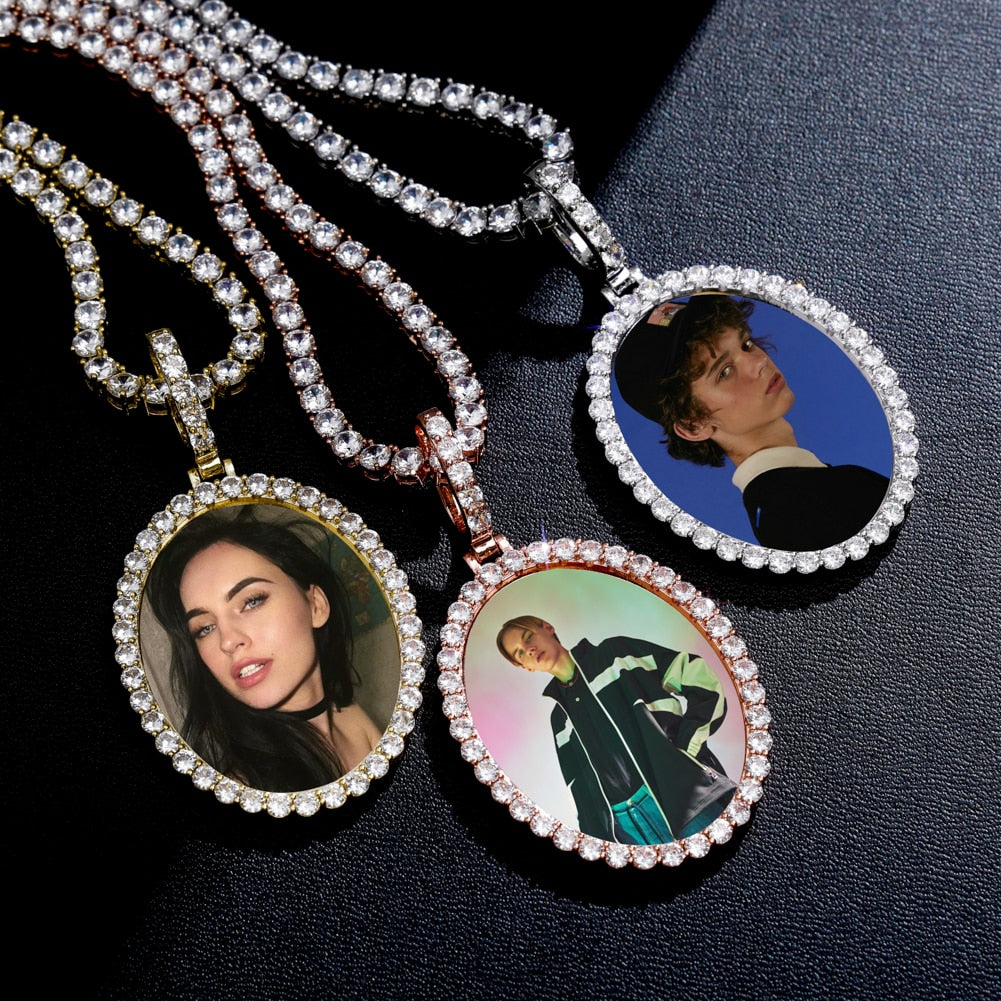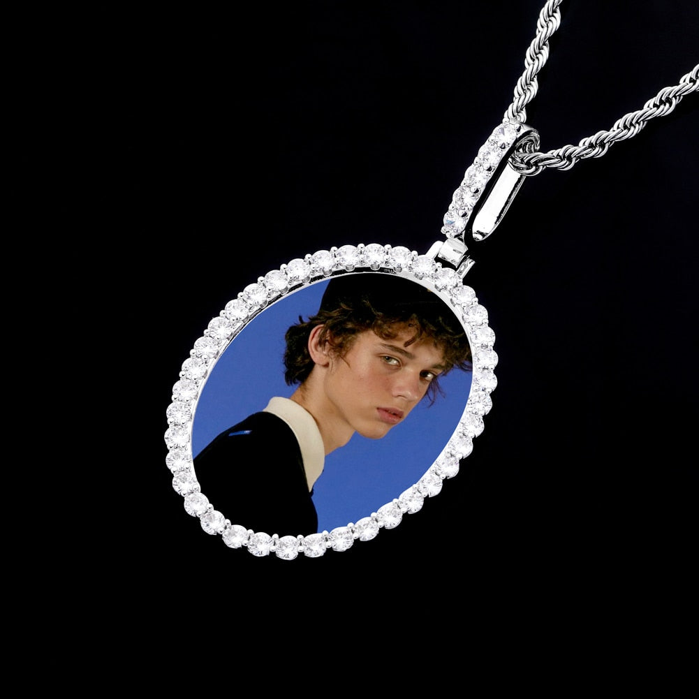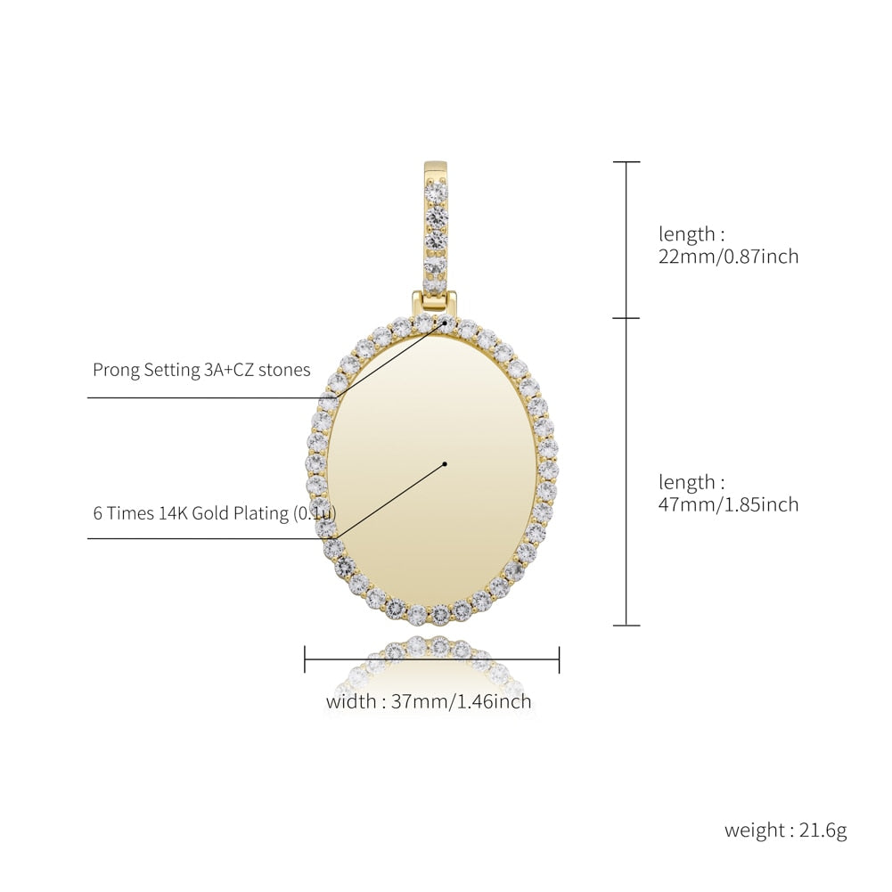 Custom Photo Pendant Oval Medal Pendant Ice Zircon Pendant Necklace Fashion Hip Hop Jewelry