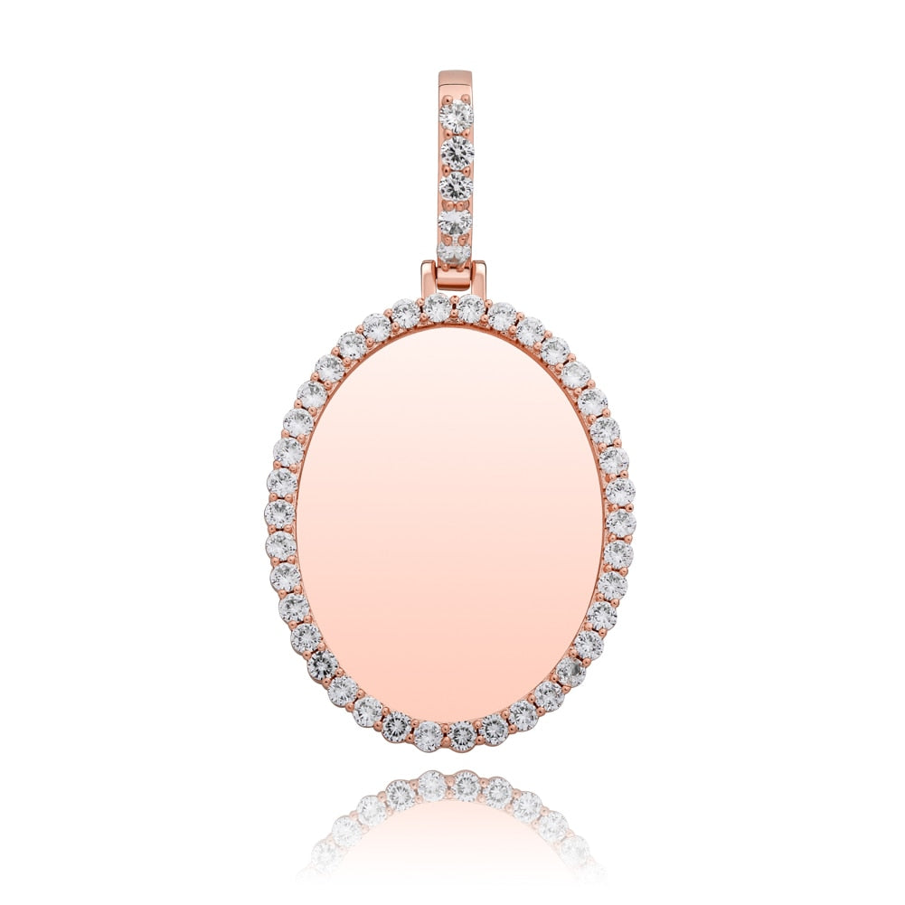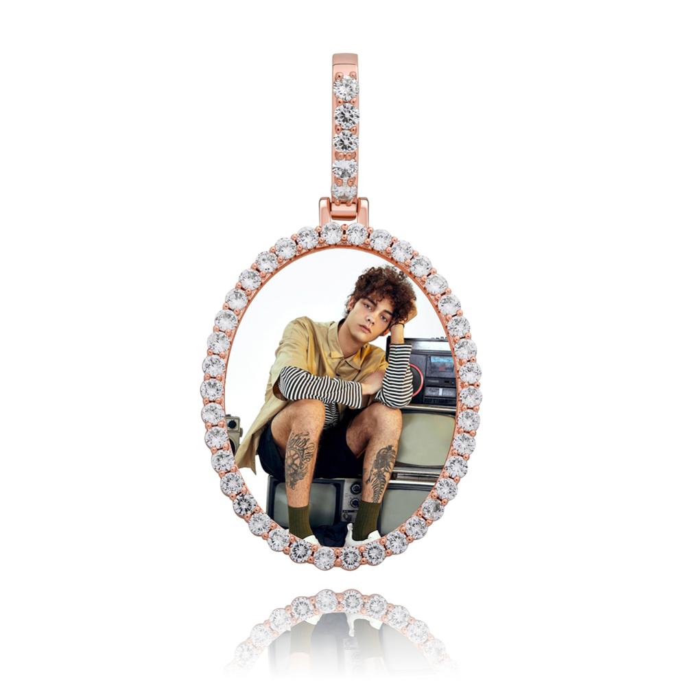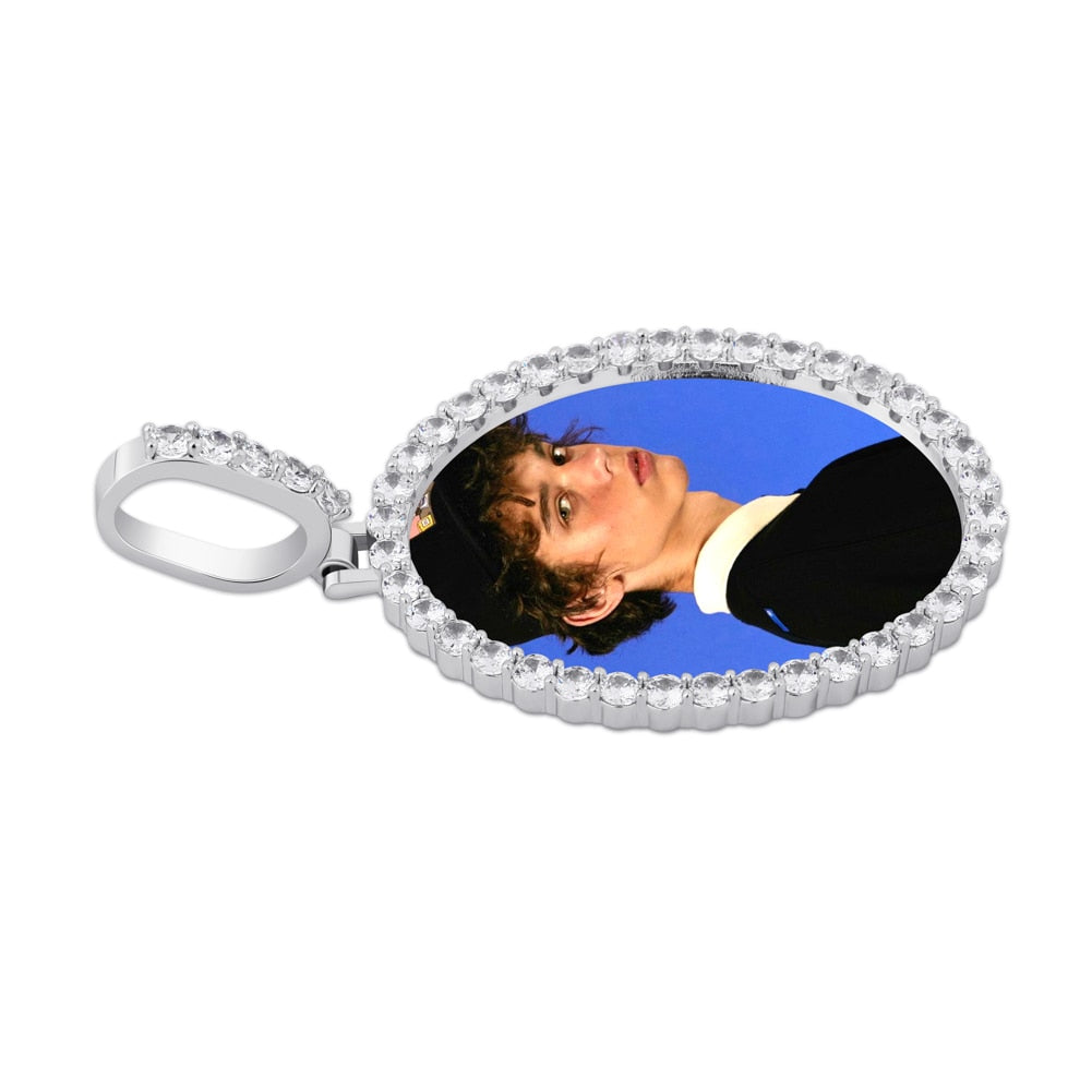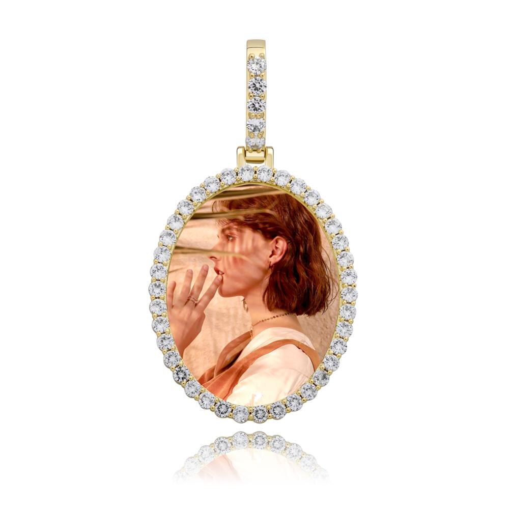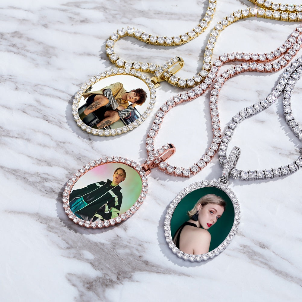 Custom Photo Pendant Oval Medal Pendant Ice Zircon Pendant Necklace Fashion Hip Hop Jewelry