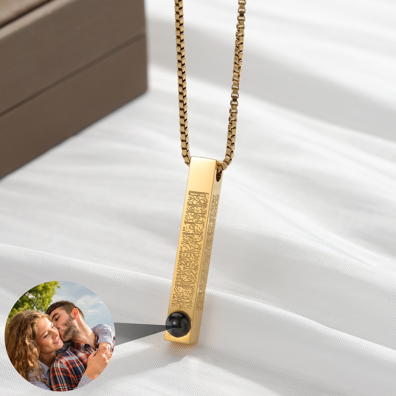 Custom Projection Photo Necklace For Women Fashion 3D Bar Necklaces Arabic Quran Amulet