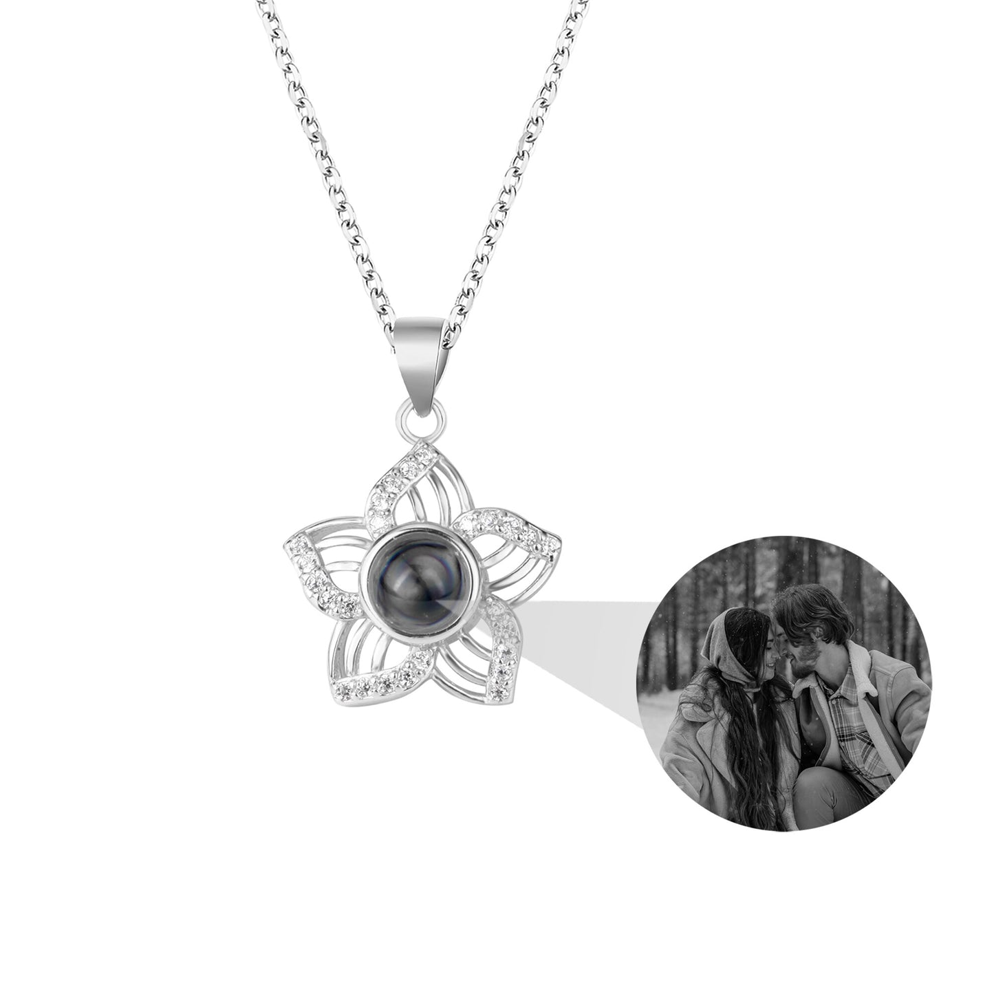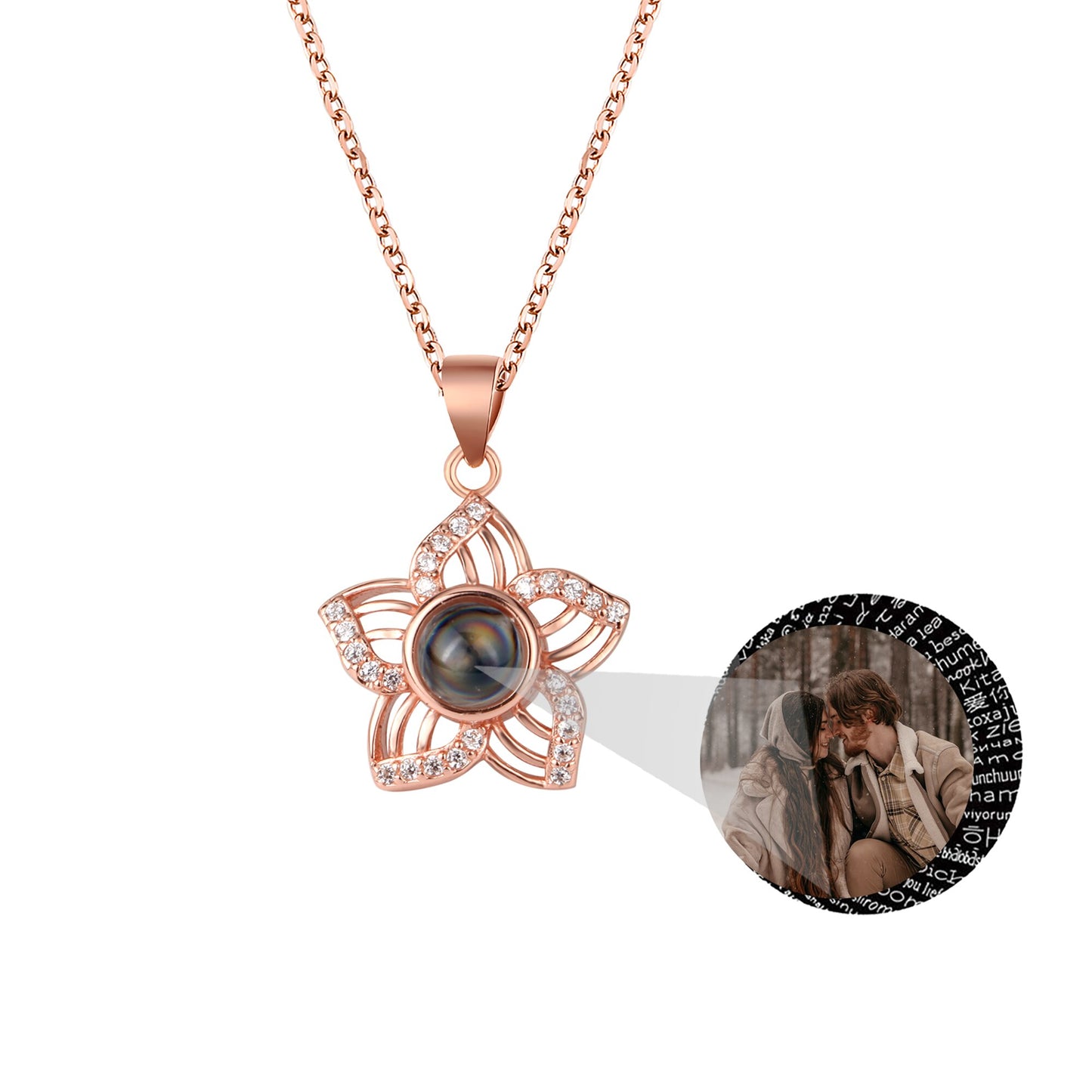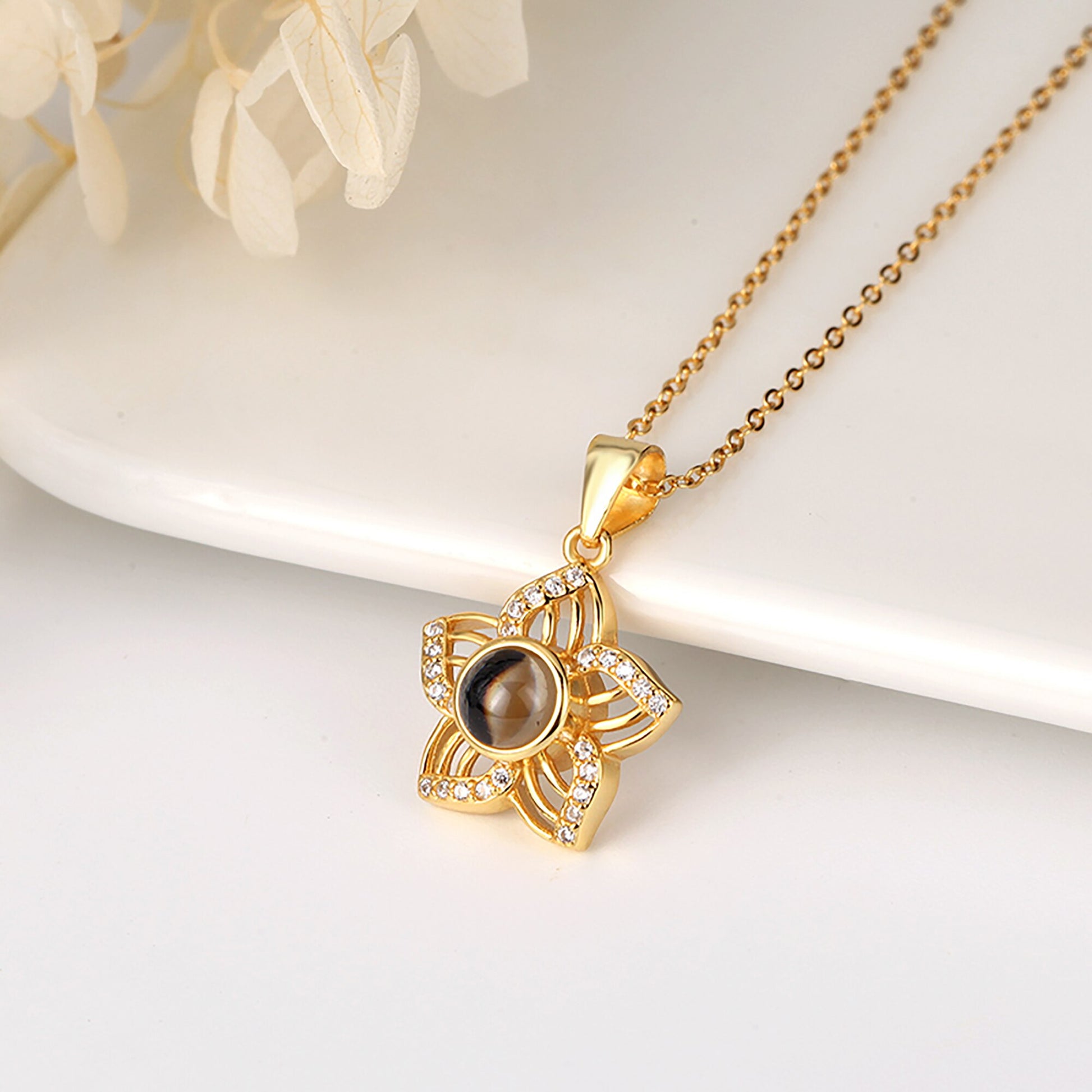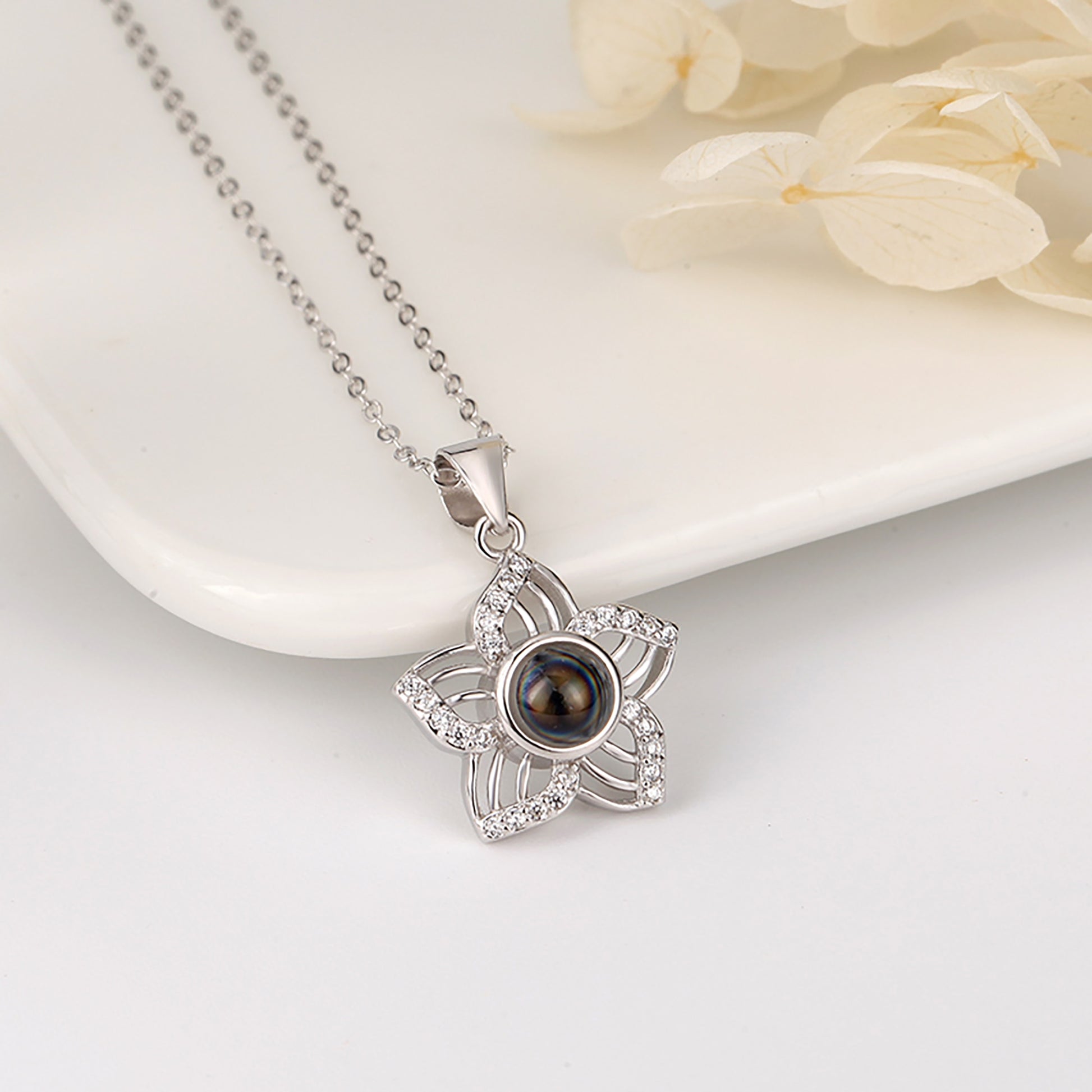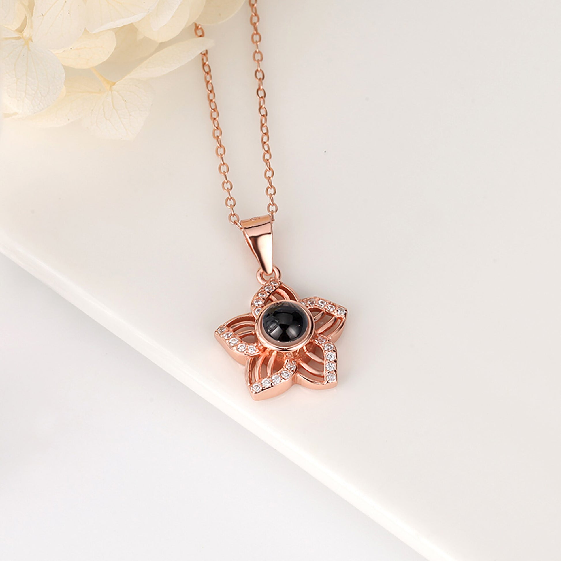 Customized Crystal Flower Photo Projection Pendant Necklace Personalized
