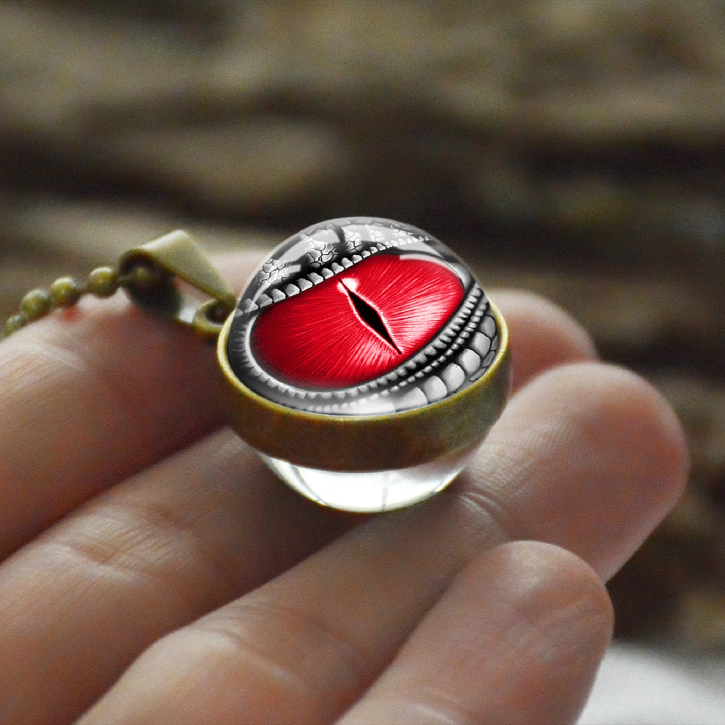 Dragon Eyes Double Side Dome Glass Ball Pendant Bronze Zinc Alloy Necklace Handmade Necklaces