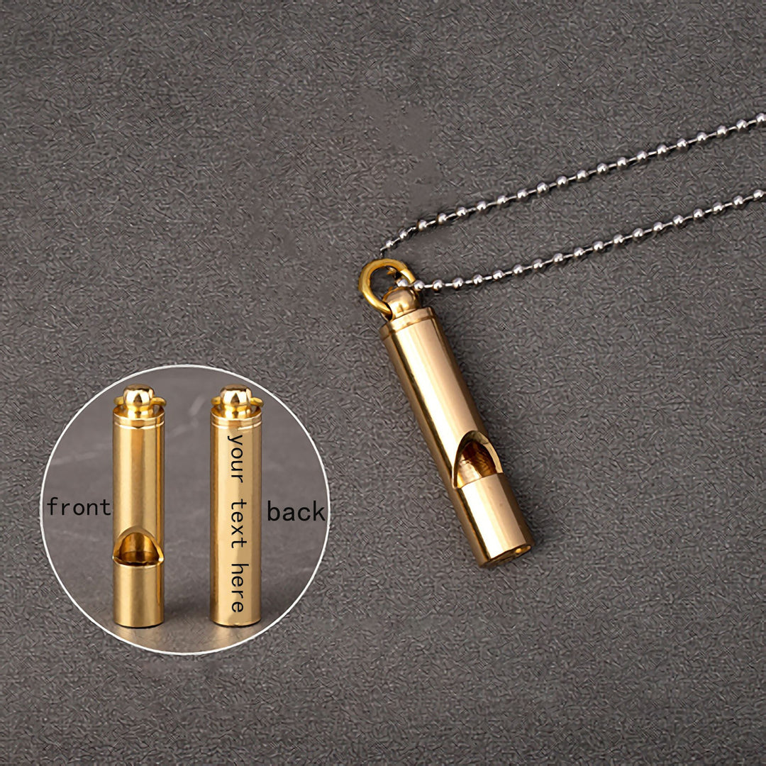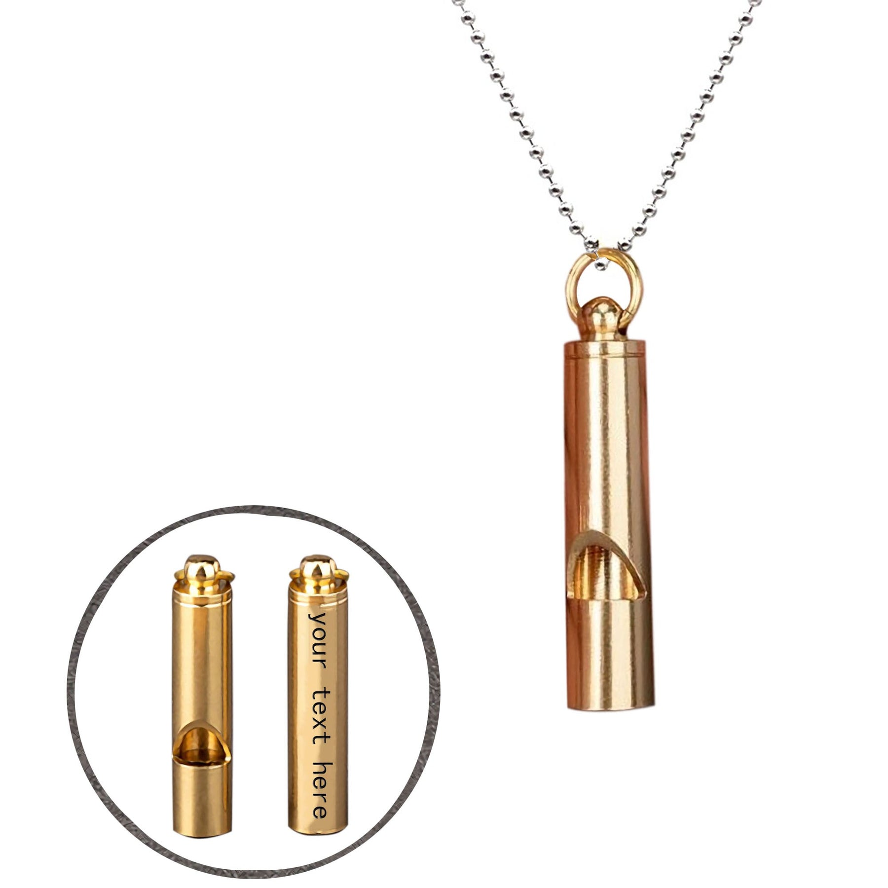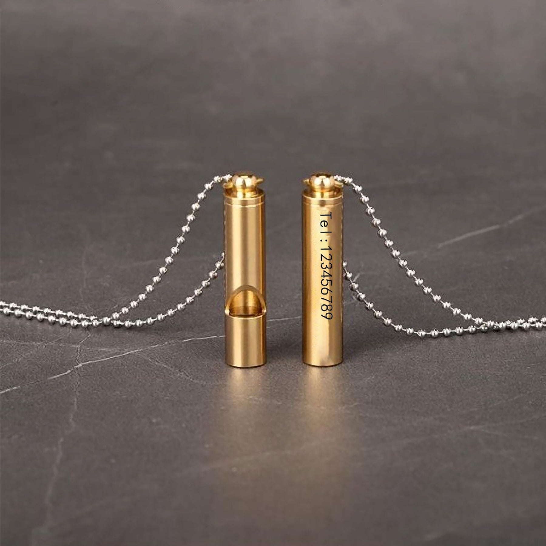 Engraved Text Brass Whistle Necklaces Custom Phone Number Children Anti-lost Necklace