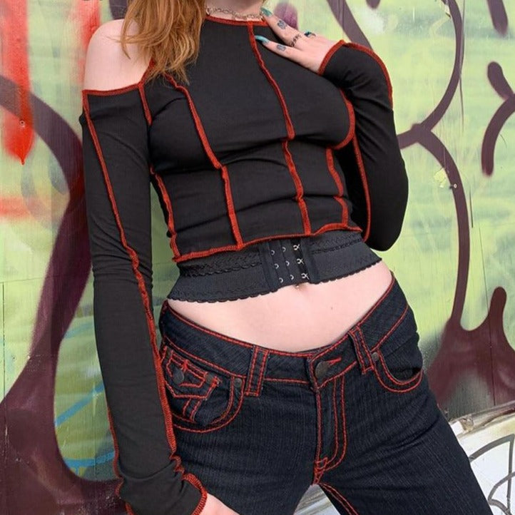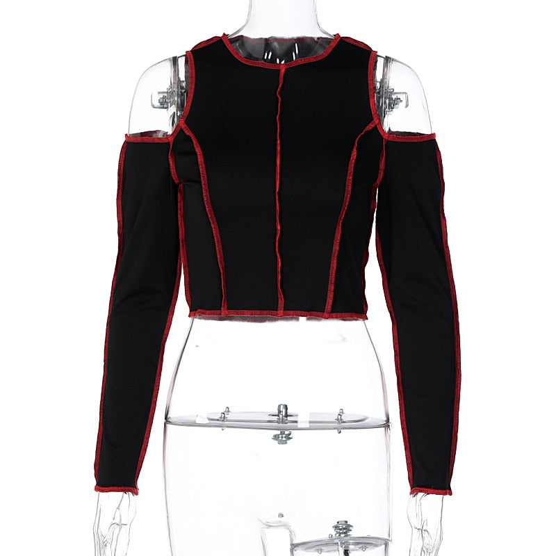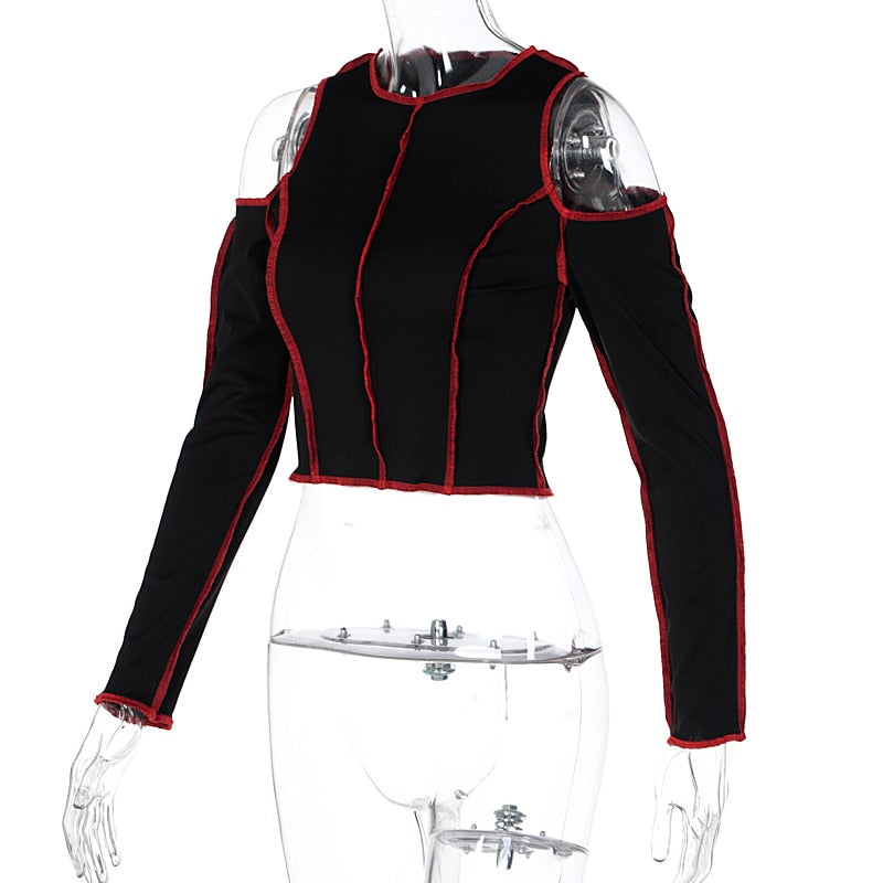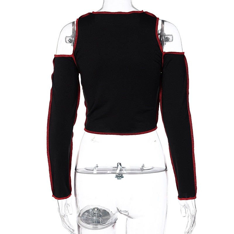 Goth Hollow Out Fashion Tshirt Women Long Sleeve Crop Top T Shirt Punk Streetwear Gothic Tee