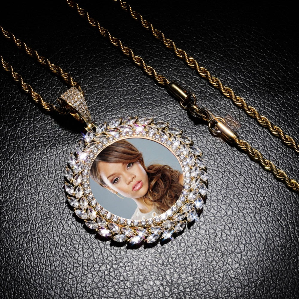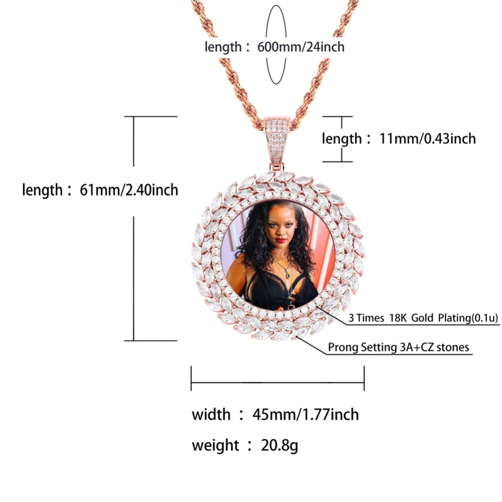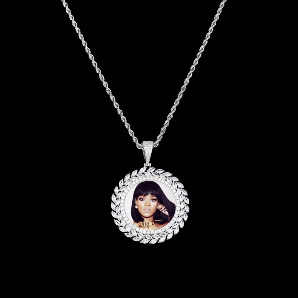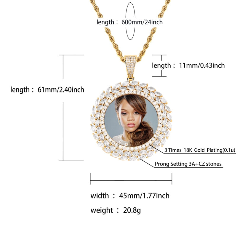 Grain Custom Photo Round Medallion Pendant Necklace Hip hop Jewelry