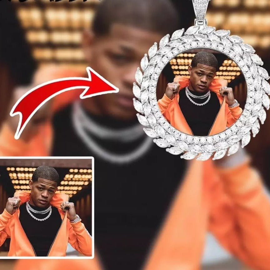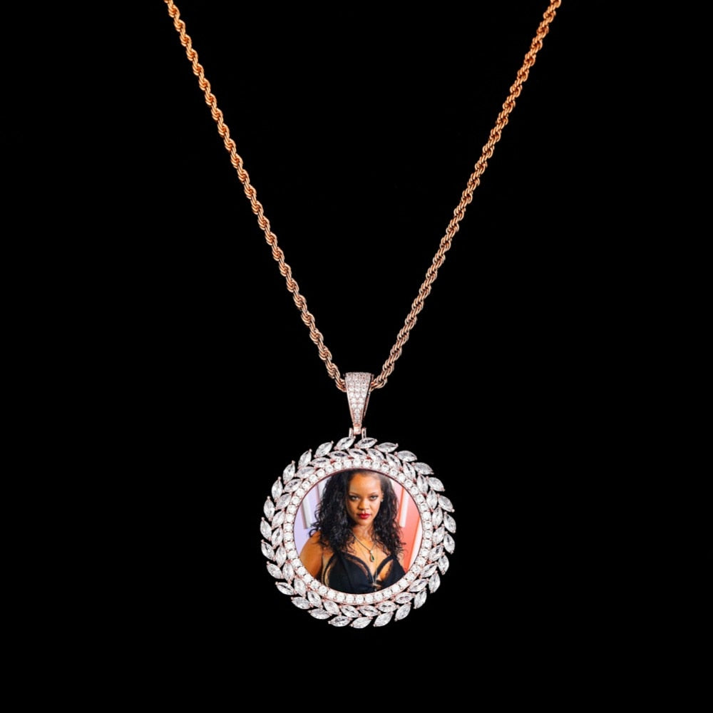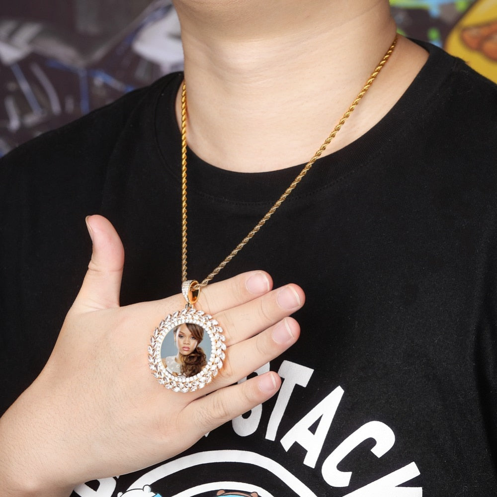 Grain Custom Photo Round Medallion Pendant Necklace Hip hop Jewelry