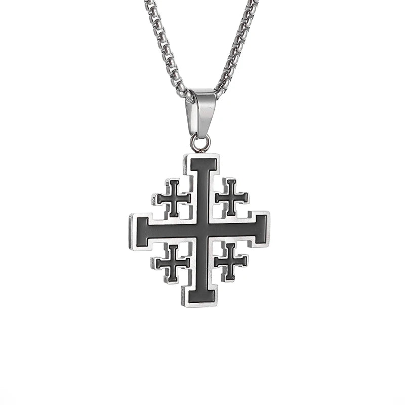 Jerusalem Stainless Steel Cross Necklace Templar Pendant for Men Vintage Christian Statement Jewelry