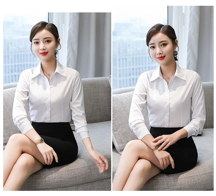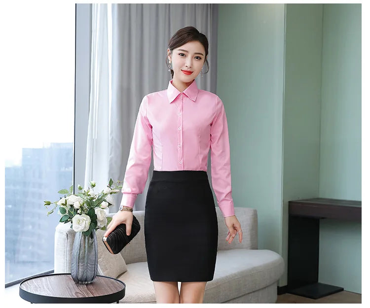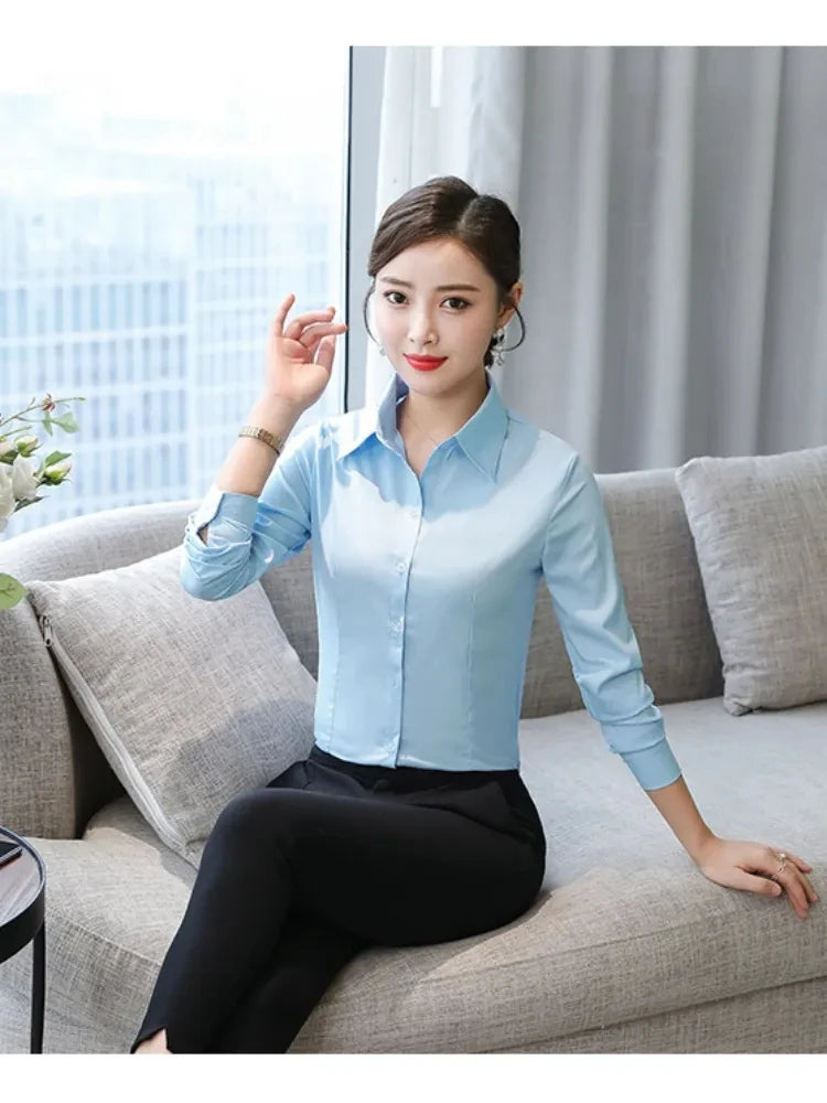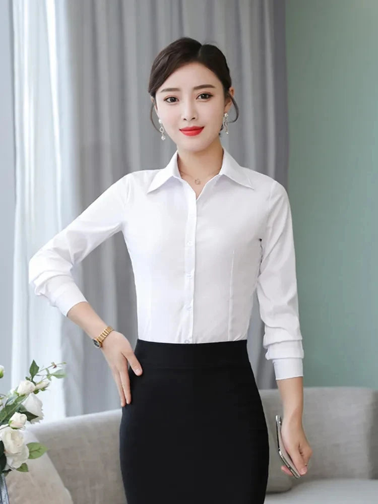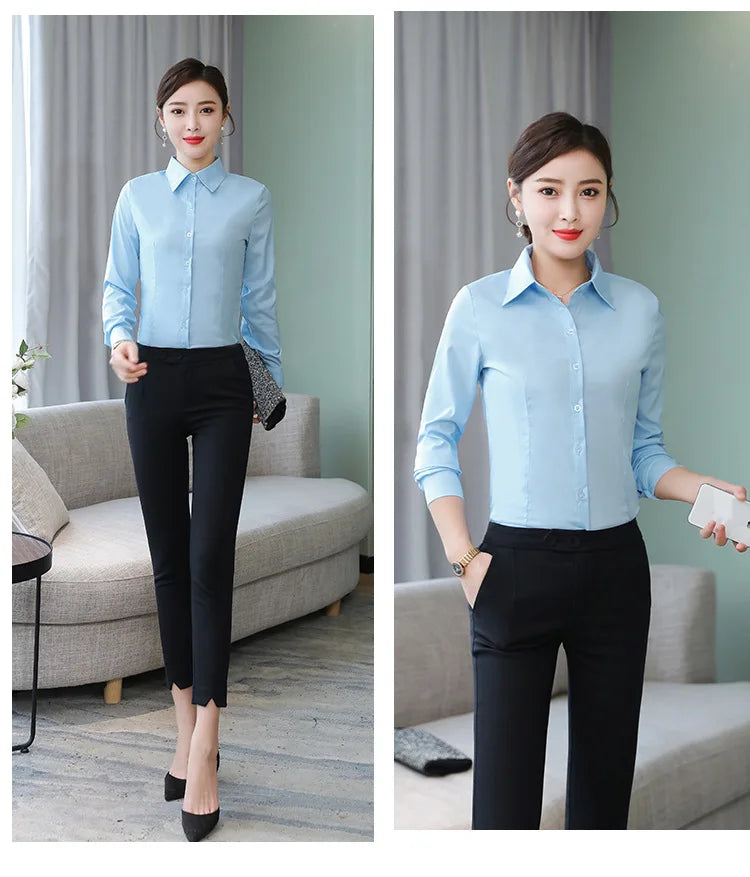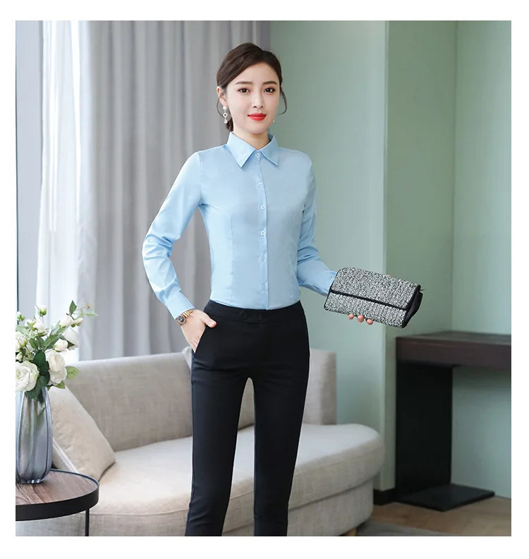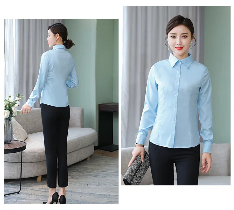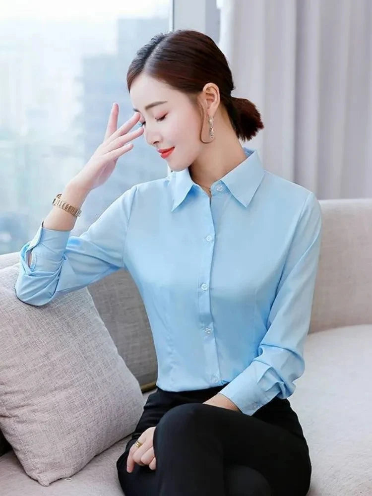 Polyester Cotton Shirts for Women Long Sleeve Blouse