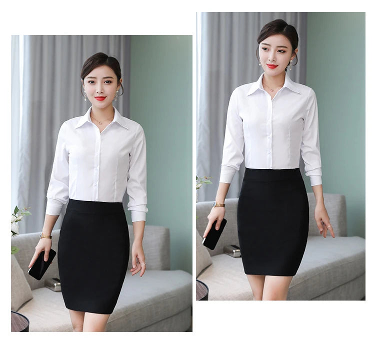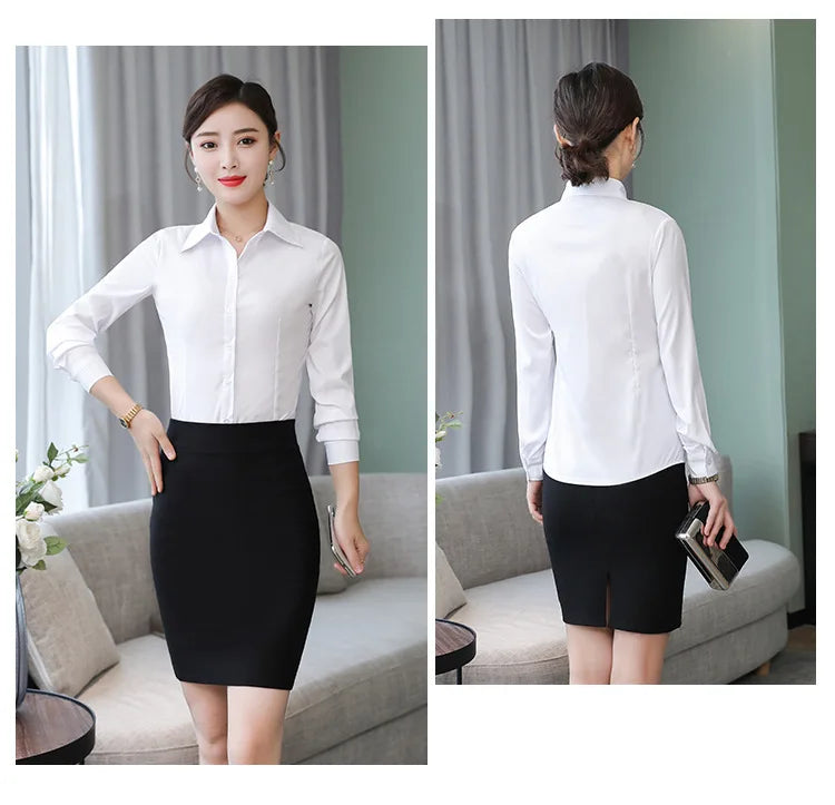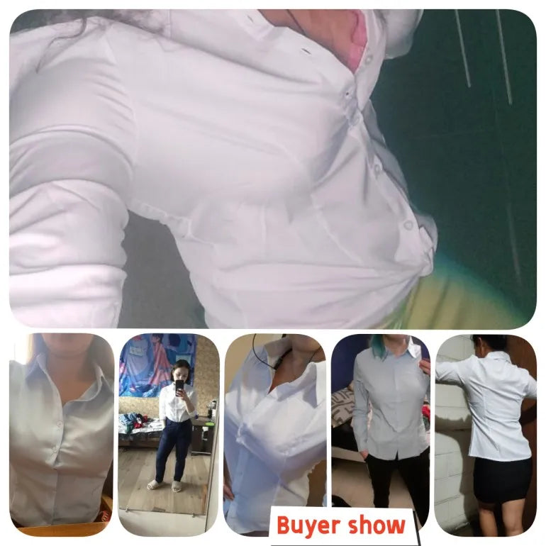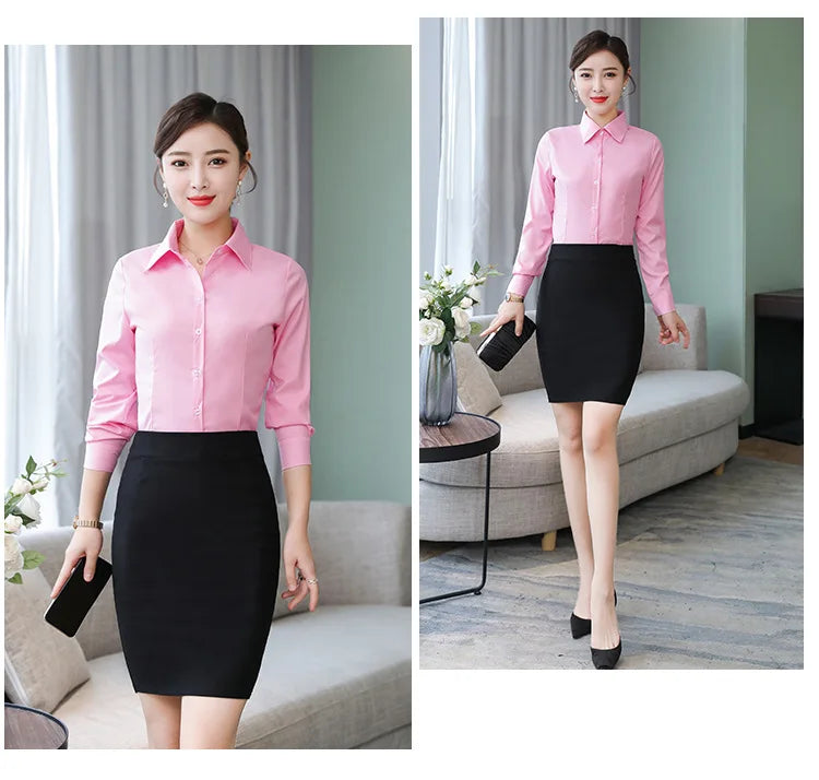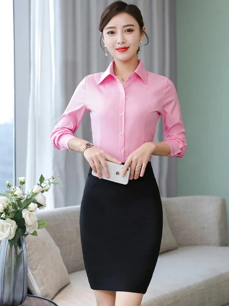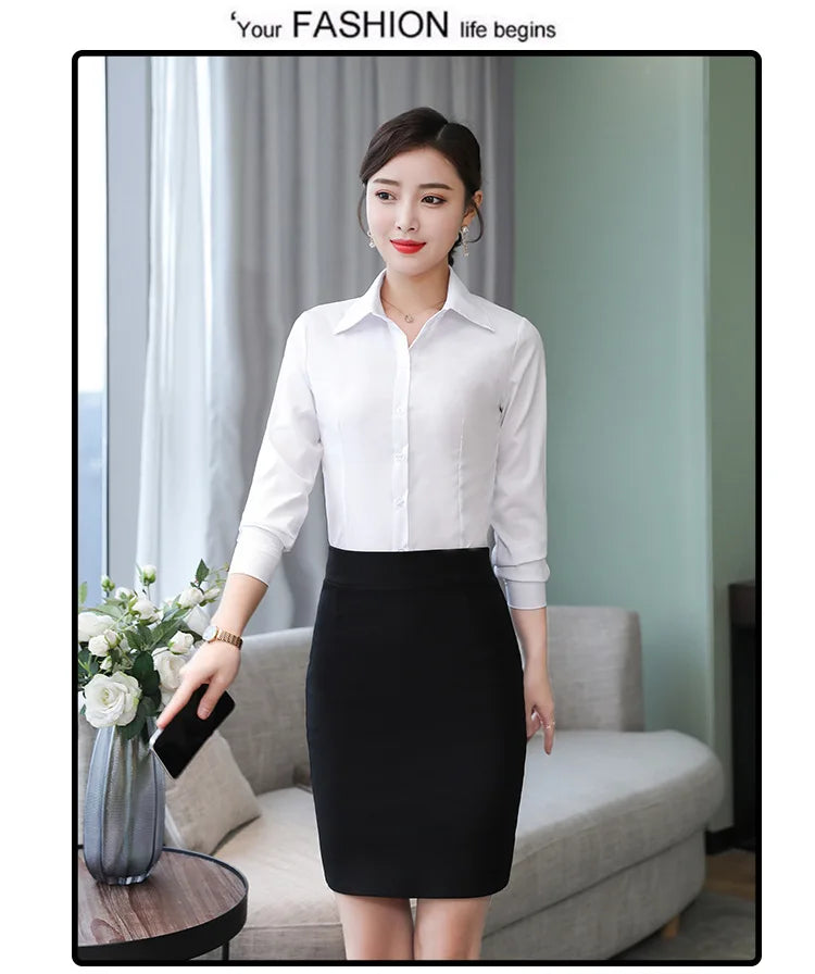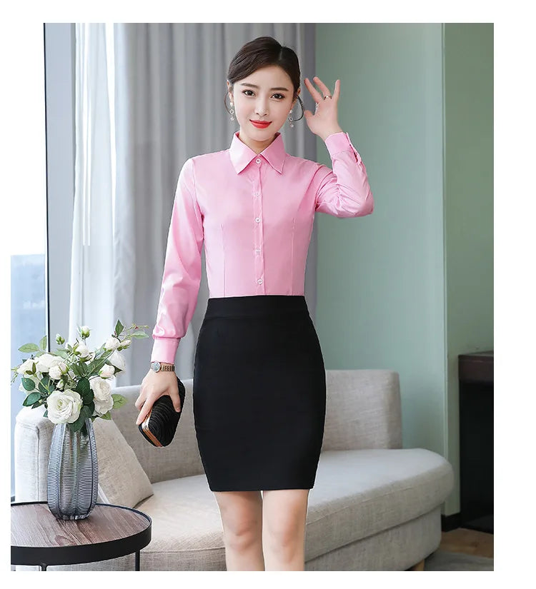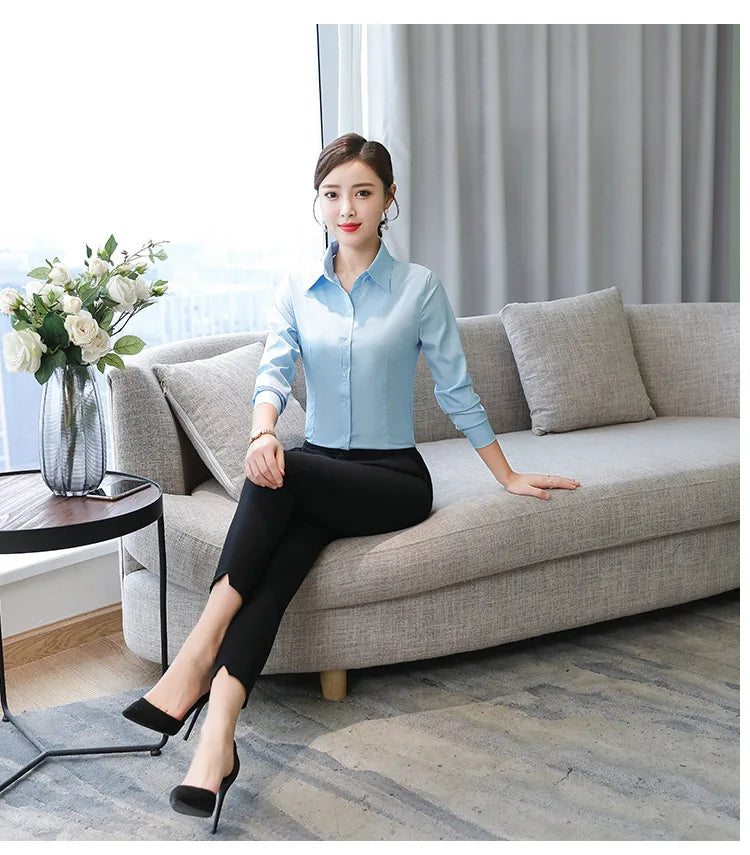 Polyester Cotton Shirts for Women Long Sleeve Blouse