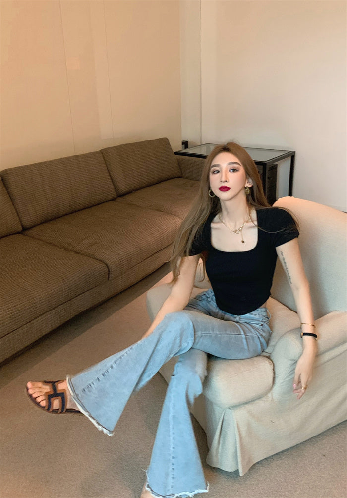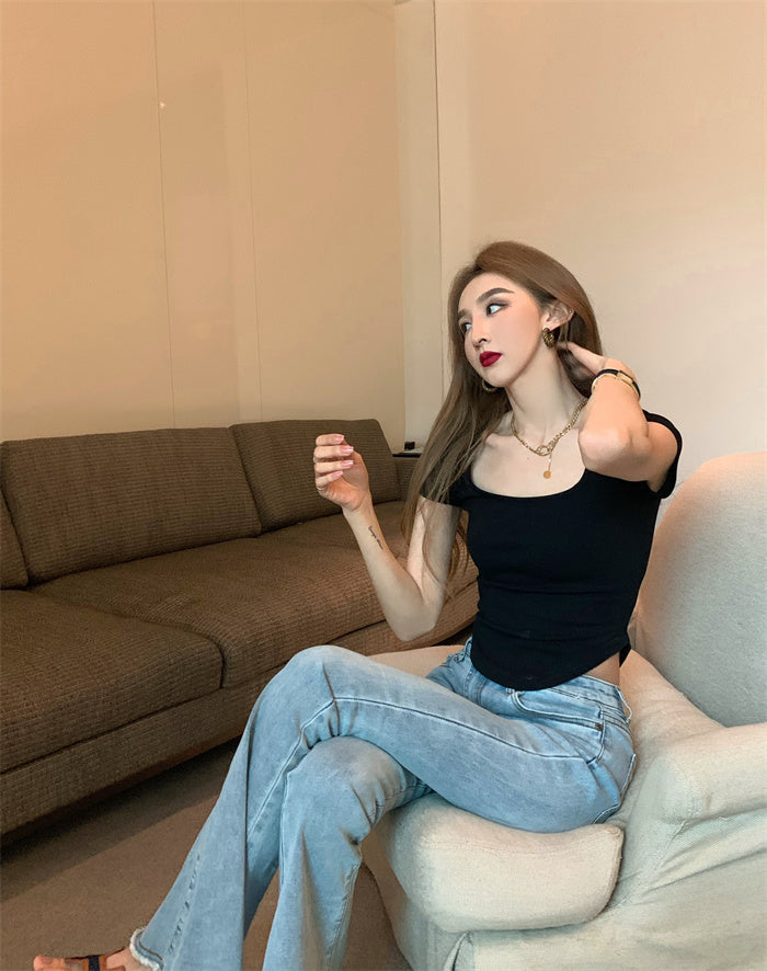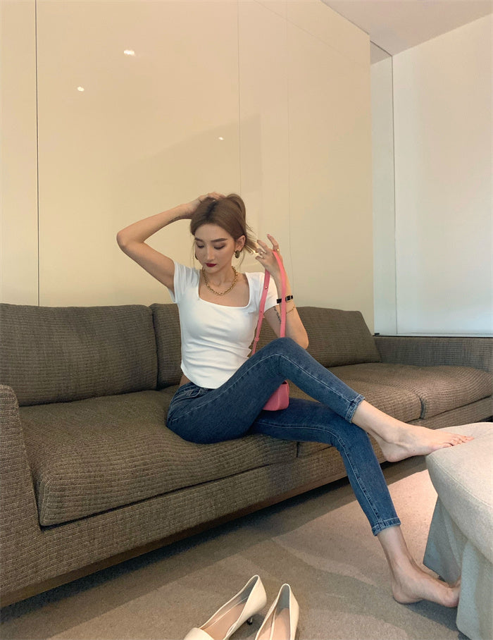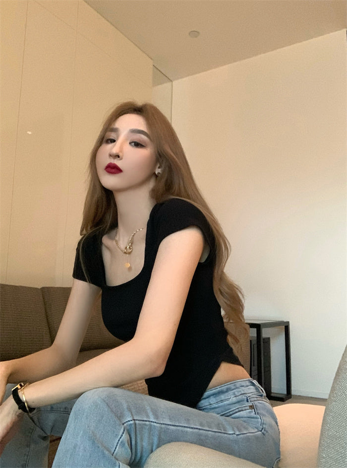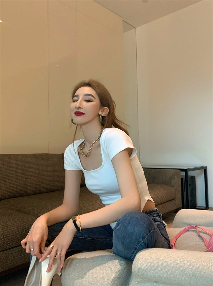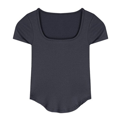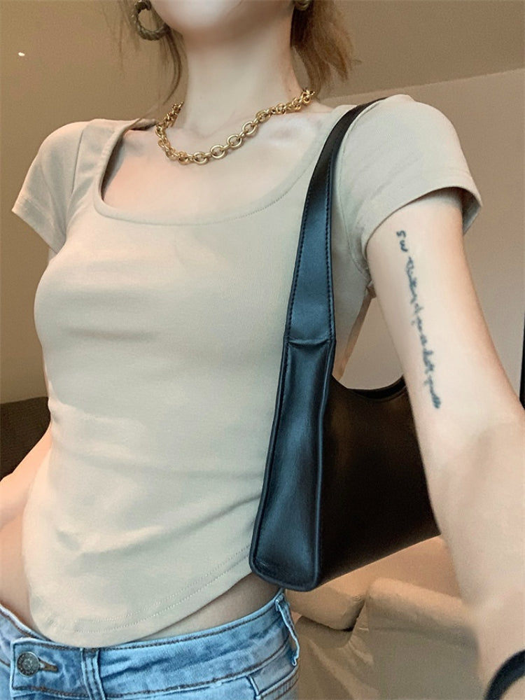 Pure Color Slim Short Sleeve Tees Women 2022 Summer Y2k Crop Fashion Sexy Blouse