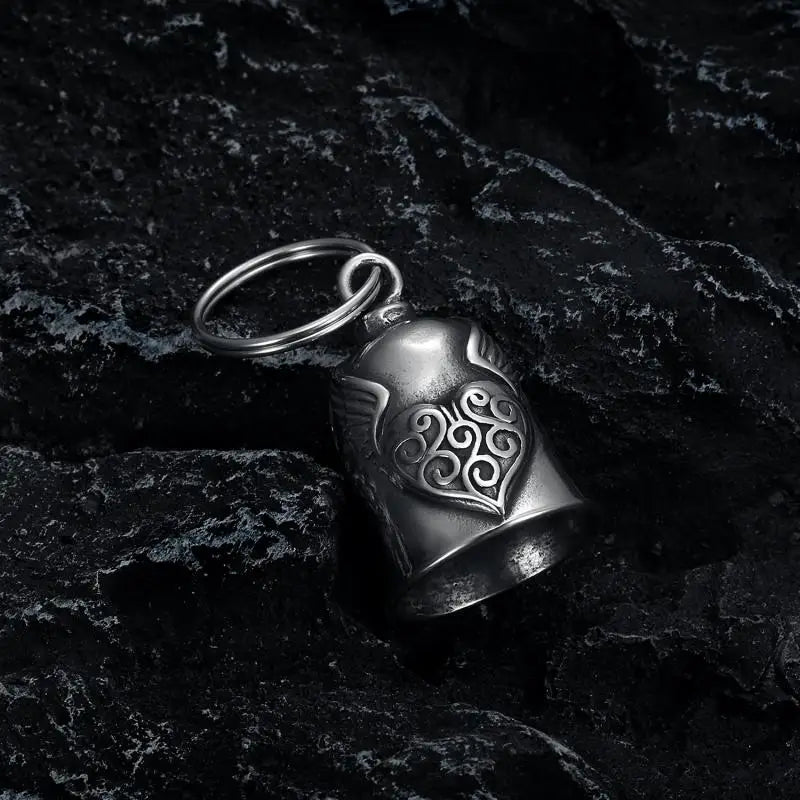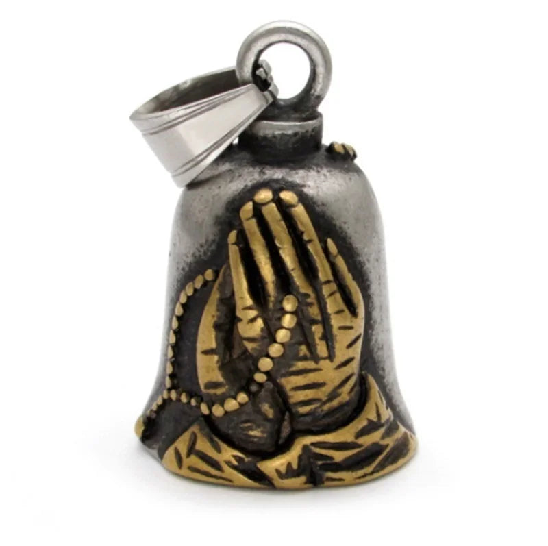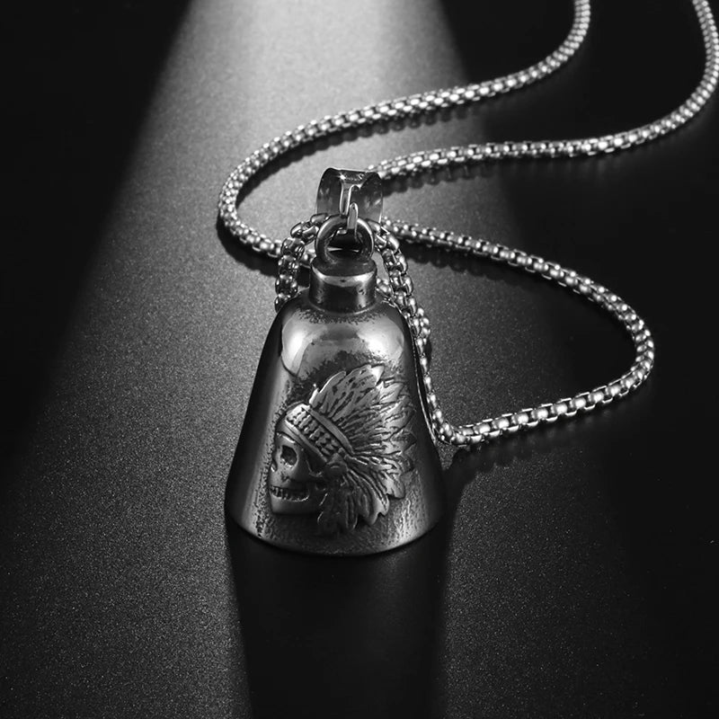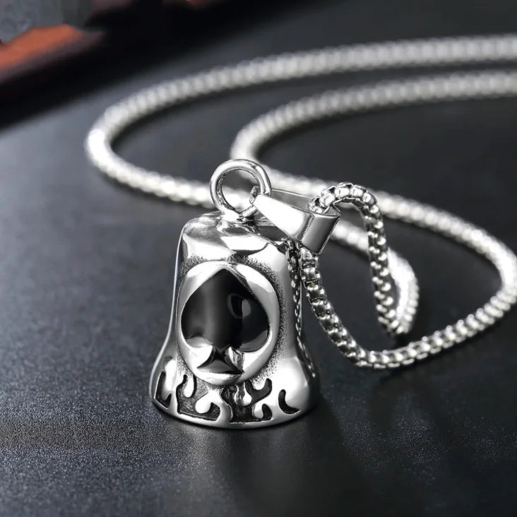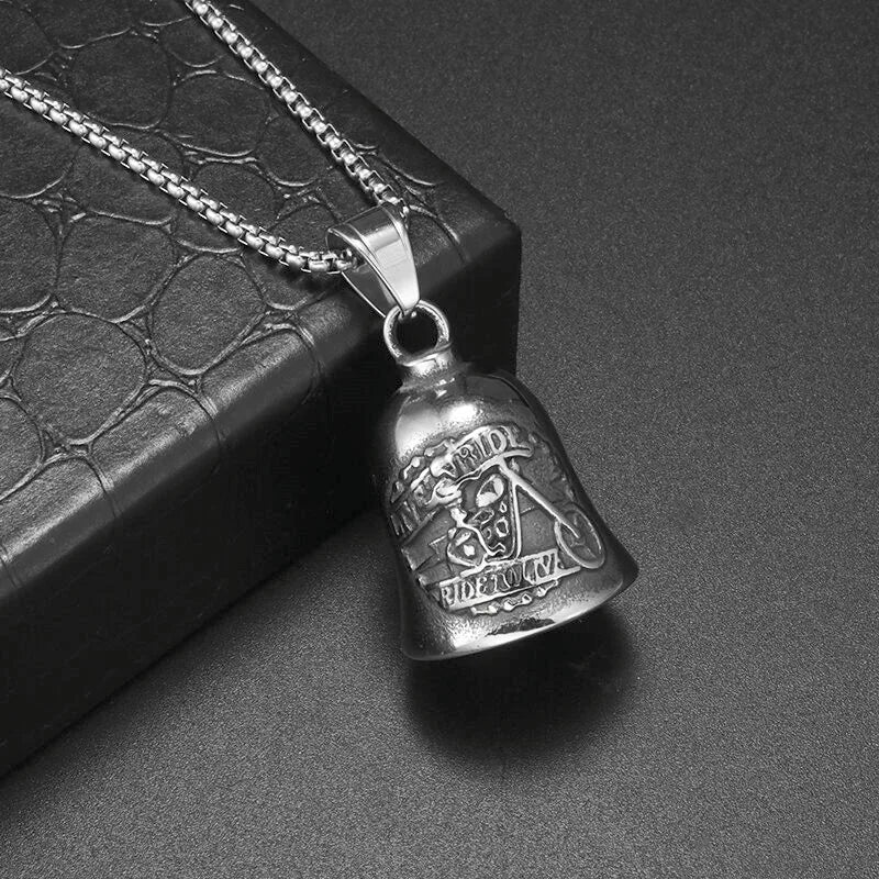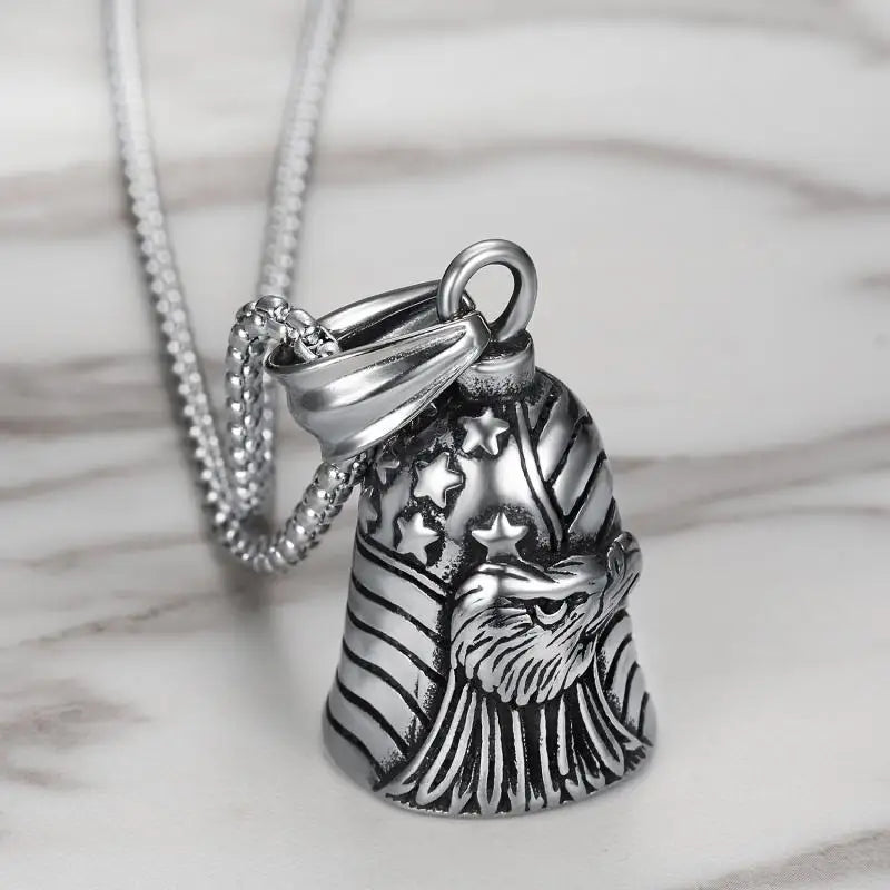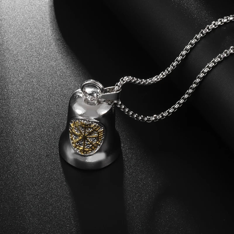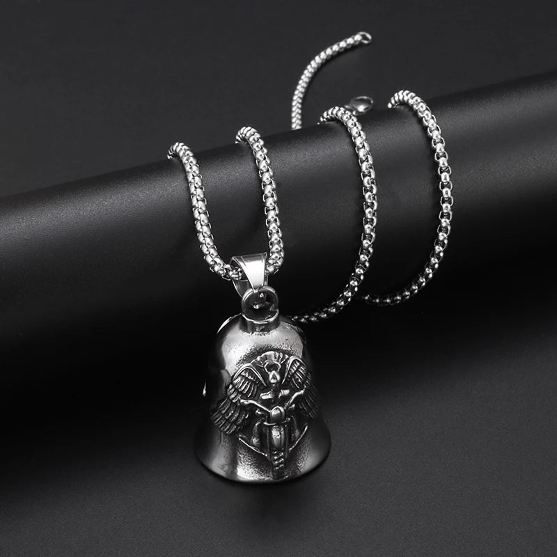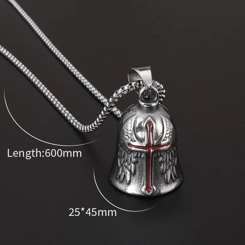 Red Cross Silver-Plated Wings Motorcycle Bell Pendant Necklace