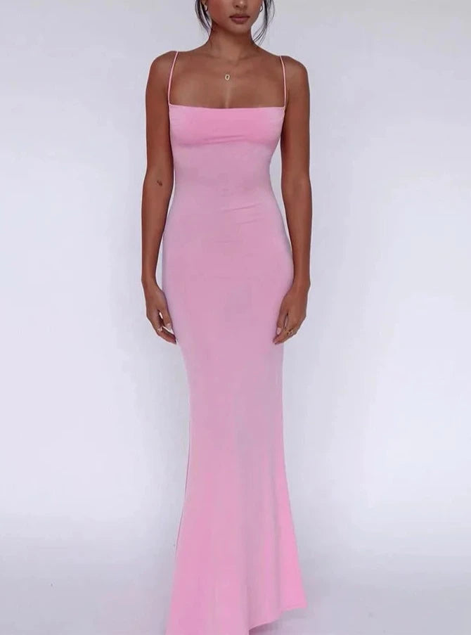Solid Sleeveless Backless Elegant Sexy Bodycon Y2K Maxi Prom Dress
