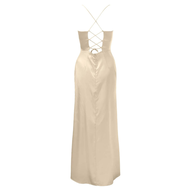 Spaghetti Strap Satin Corset Fishbone Push Up Bodycon Party Long Dress