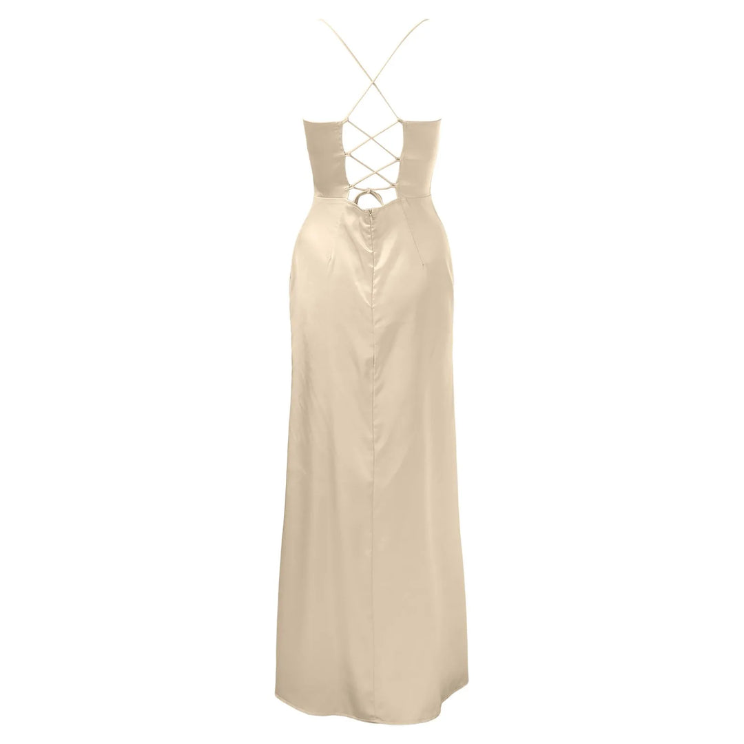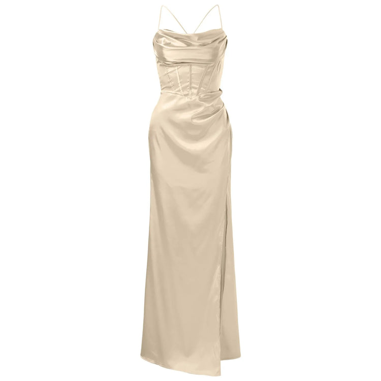 Women Sexy Satin Corset Maxi Dress Silky Strap Push Up Fishbone Ruched Evening Party Long Dresses
