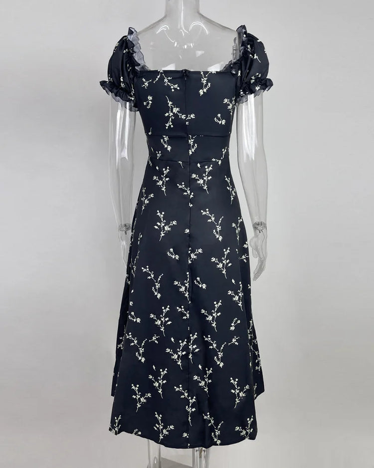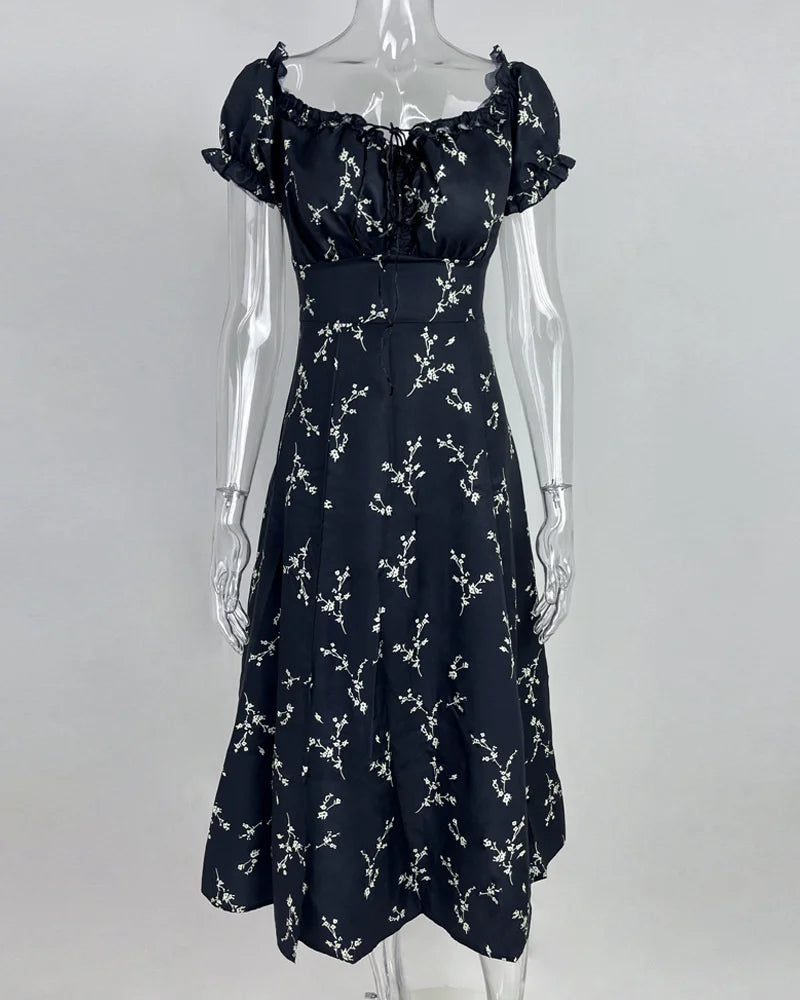 Summer Floral Off Shoulder Puff Sleeve Maxi Dress