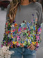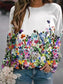 Women's Flower Print Top Loose Long-sleeved Round Neck Sweater All-match T-shirt
