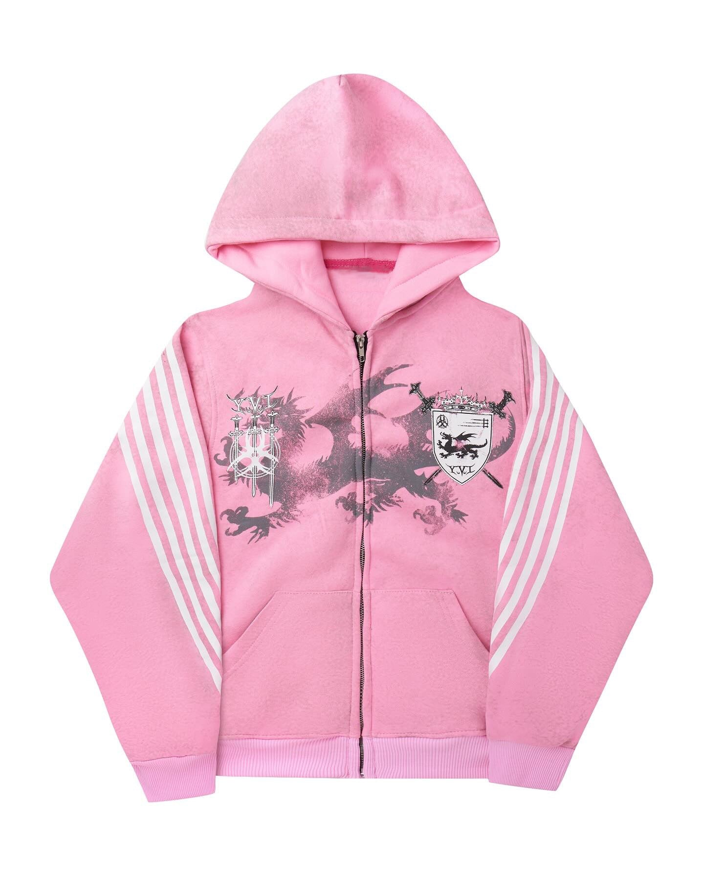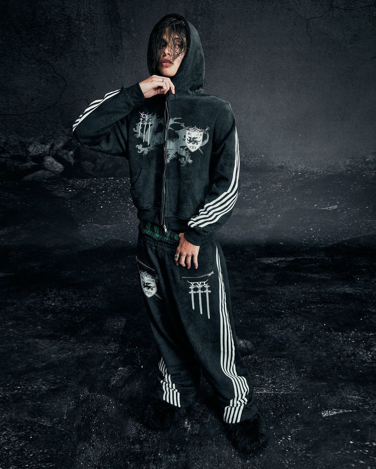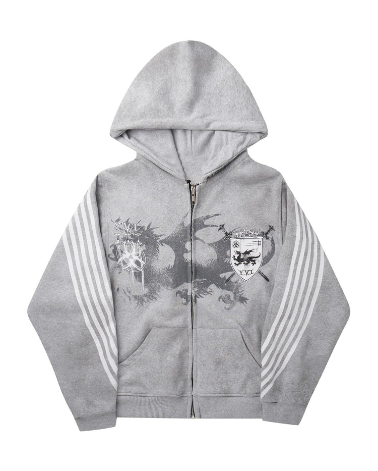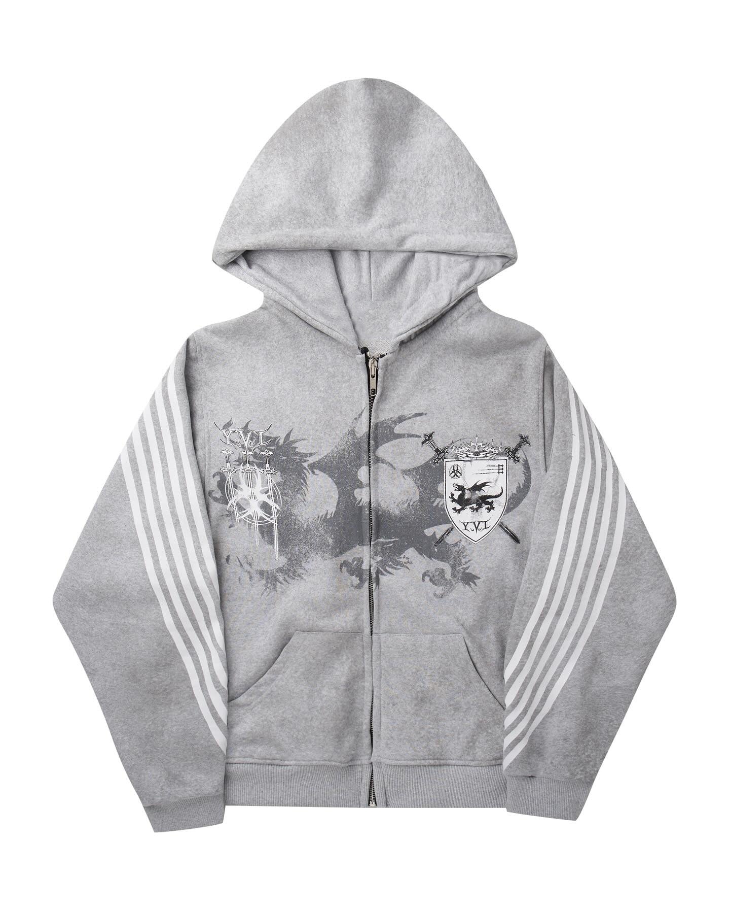 Five-stripe dragon and cross print hoodie.